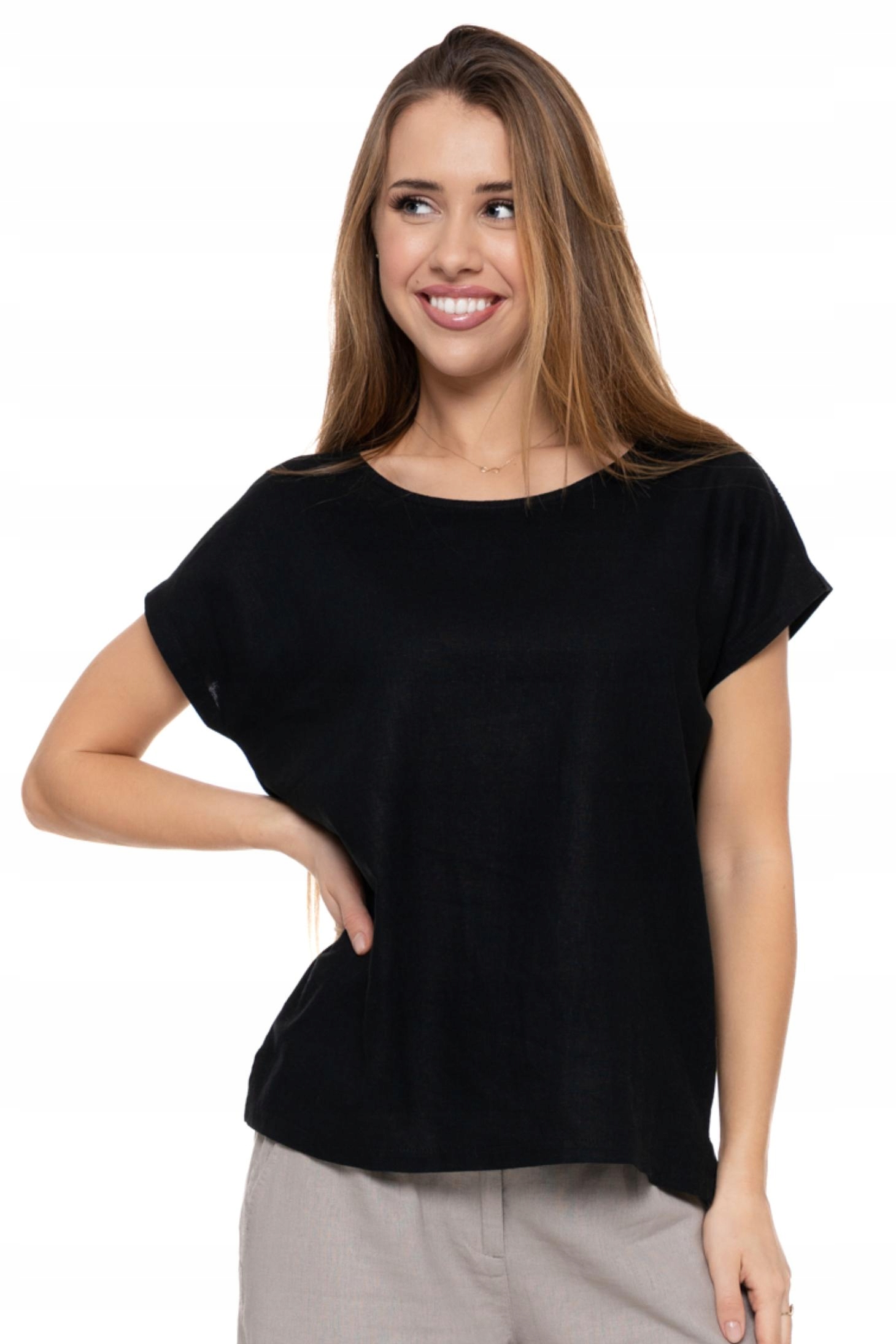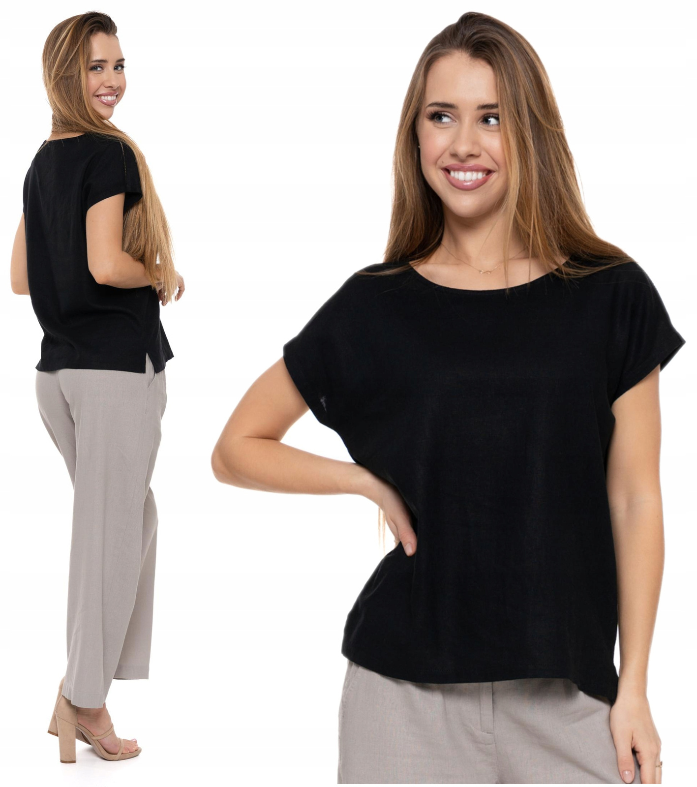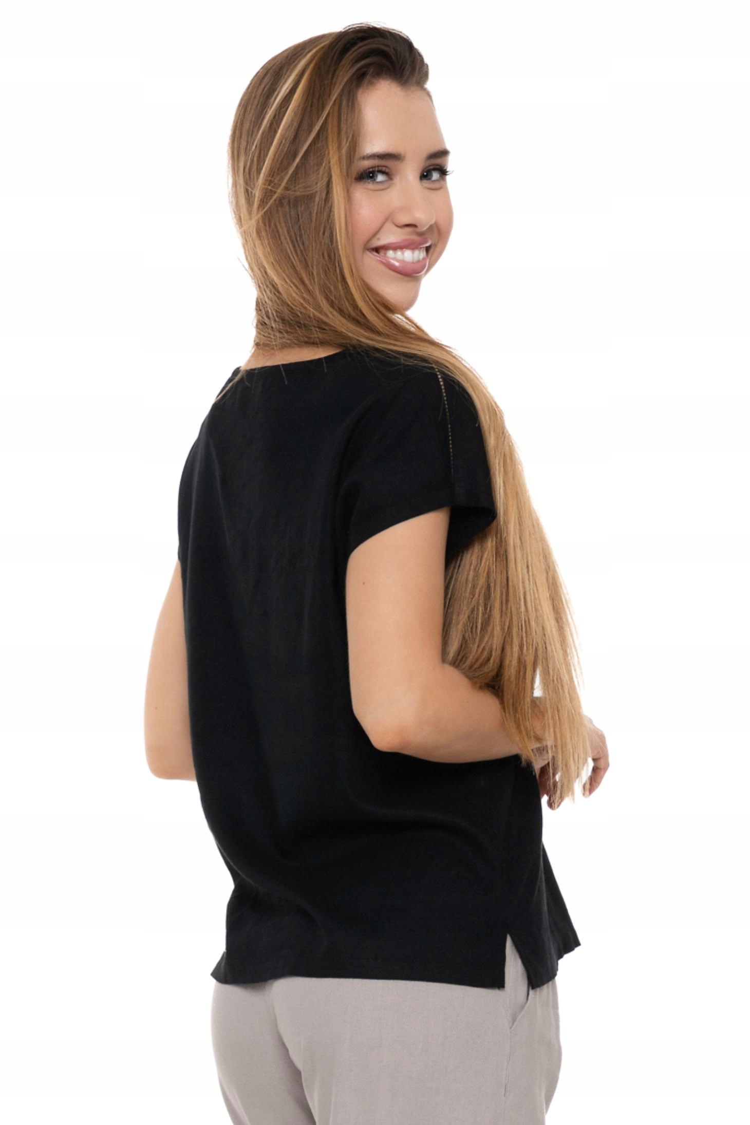 LUŹNA BLUZKA Damska Lniana Czarna Koszulka T-Shirt Przewiewna MORAJ
