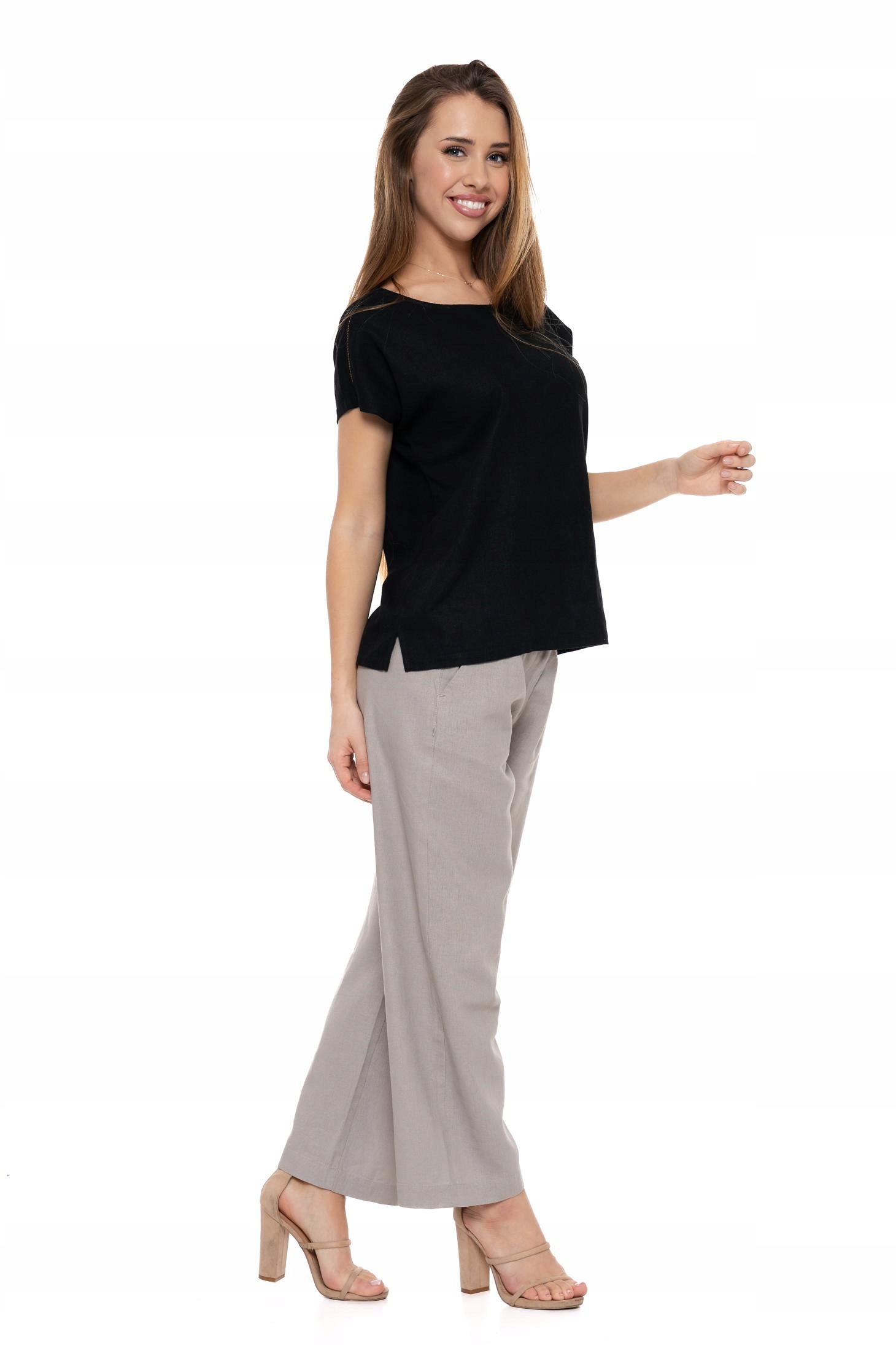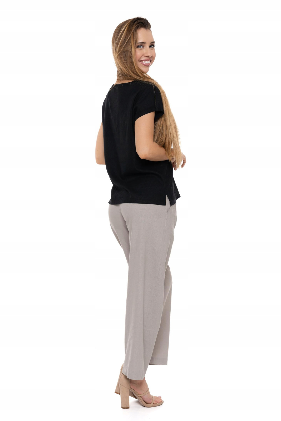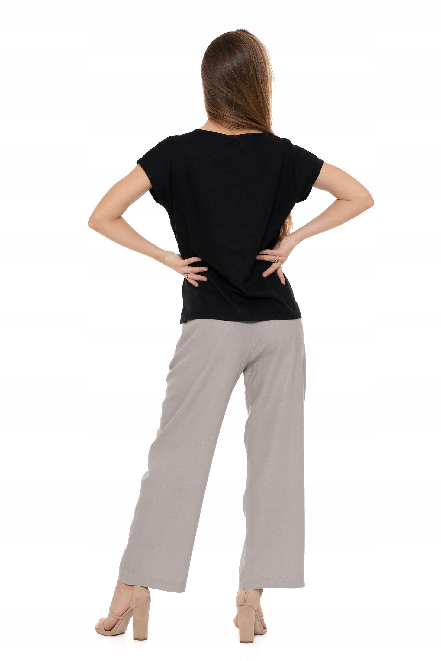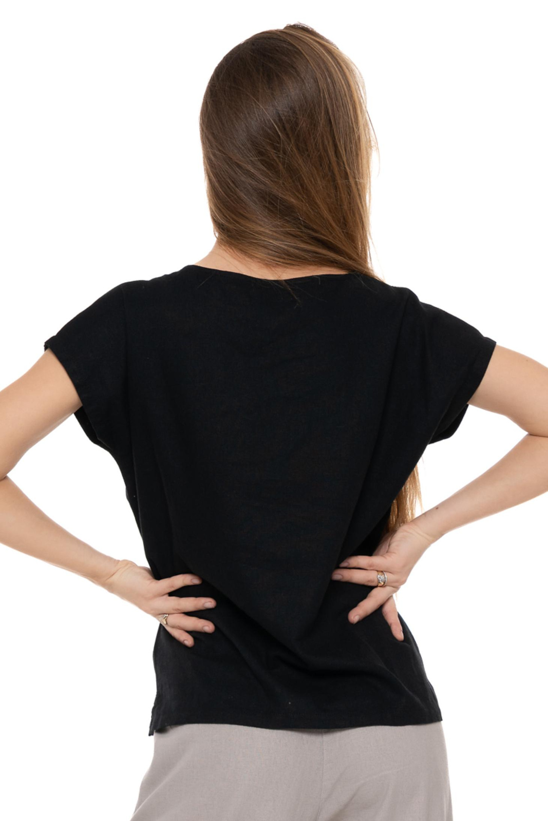 LUŹNA BLUZKA Damska Lniana Czarna Koszulka T-Shirt Przewiewna MORAJ