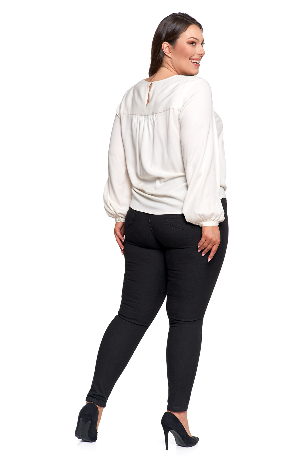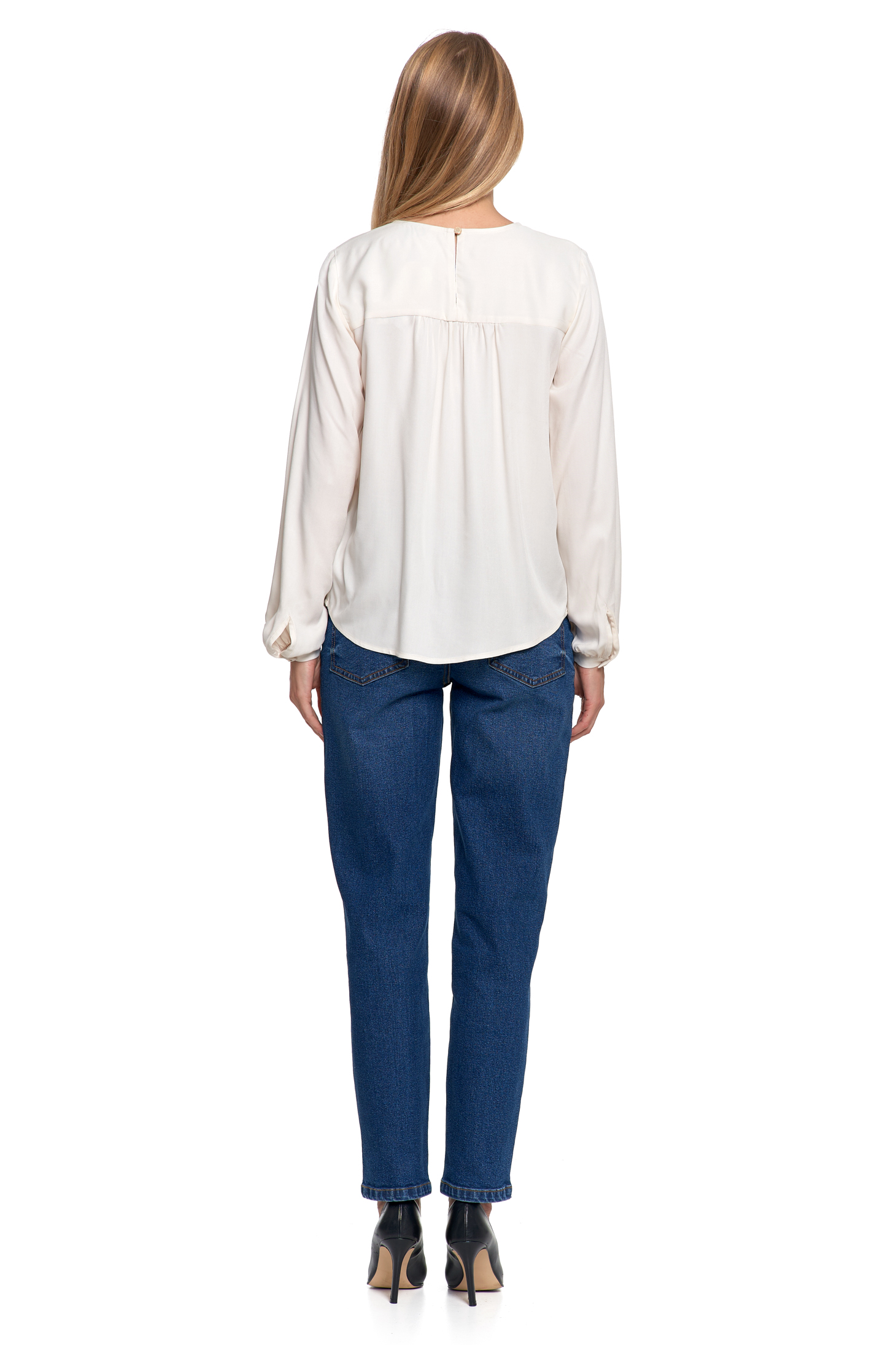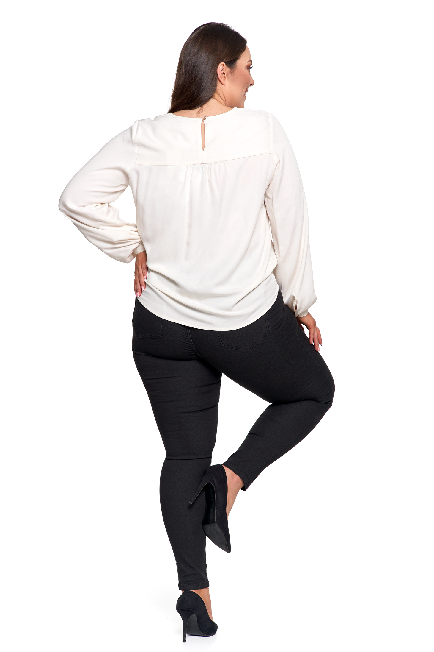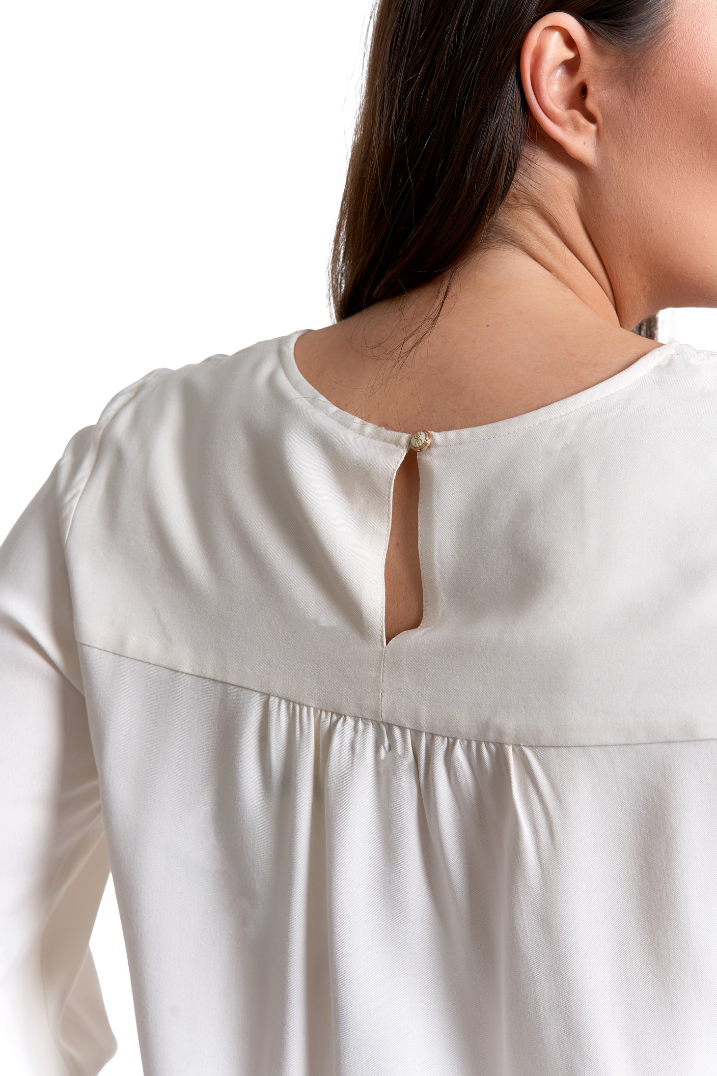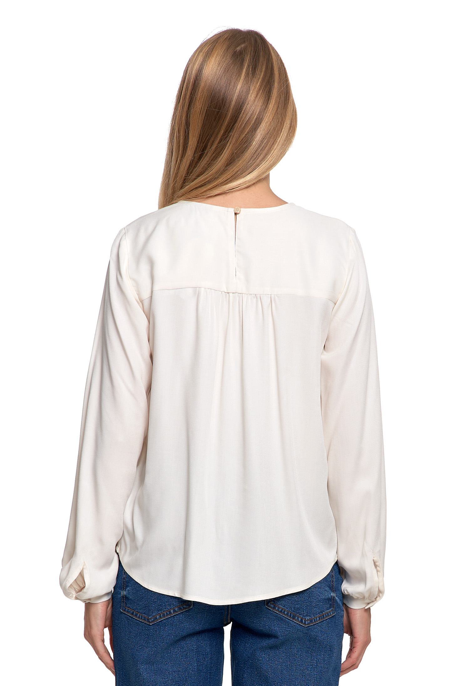 - Długie rękawy – zakończone mankietami z lekkim marszczeniem i zapięciem na guziczek.