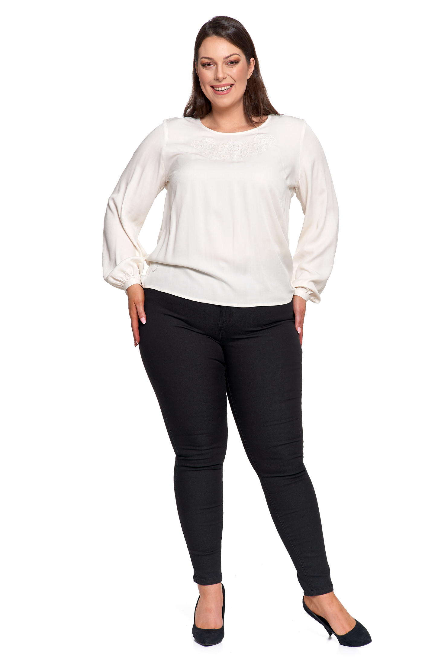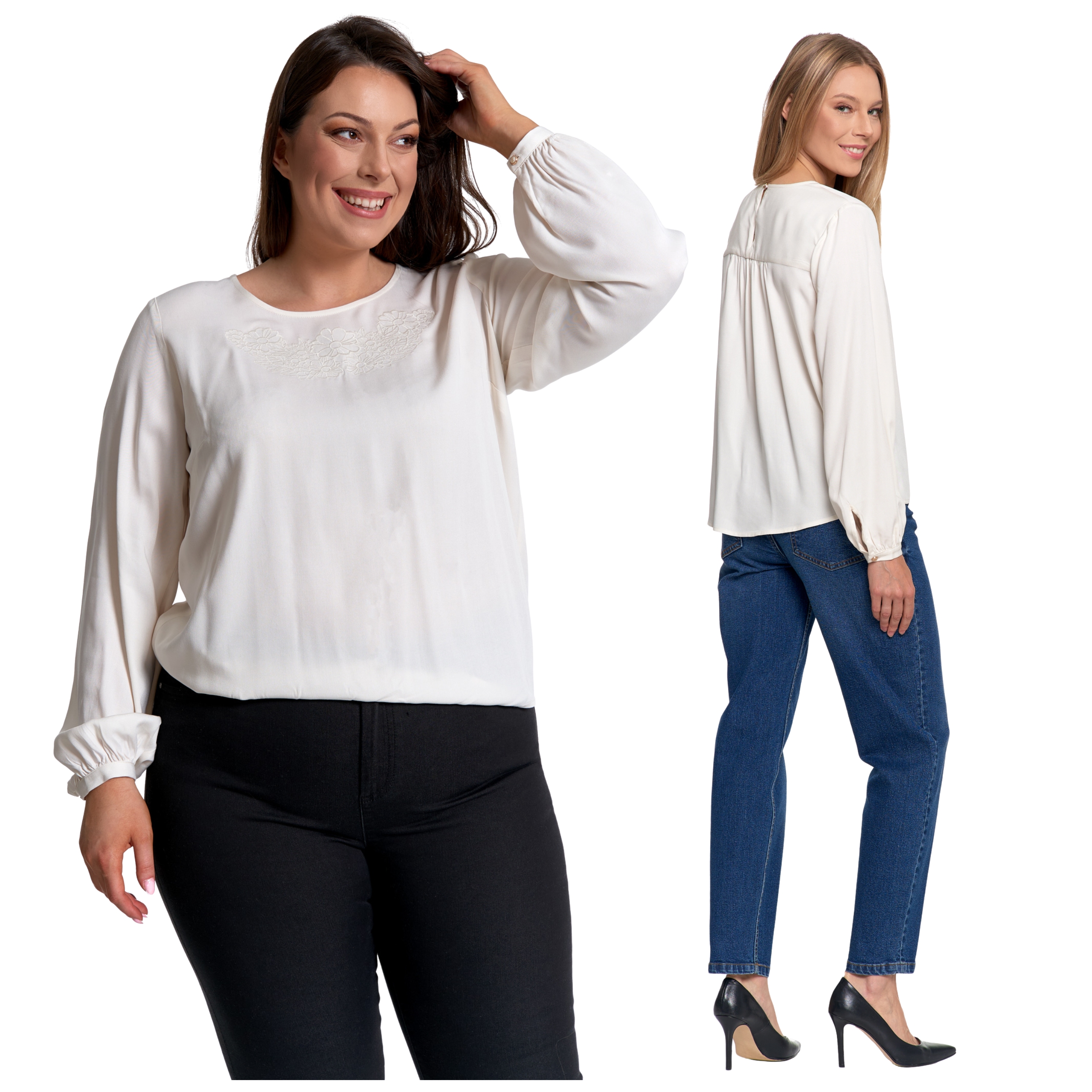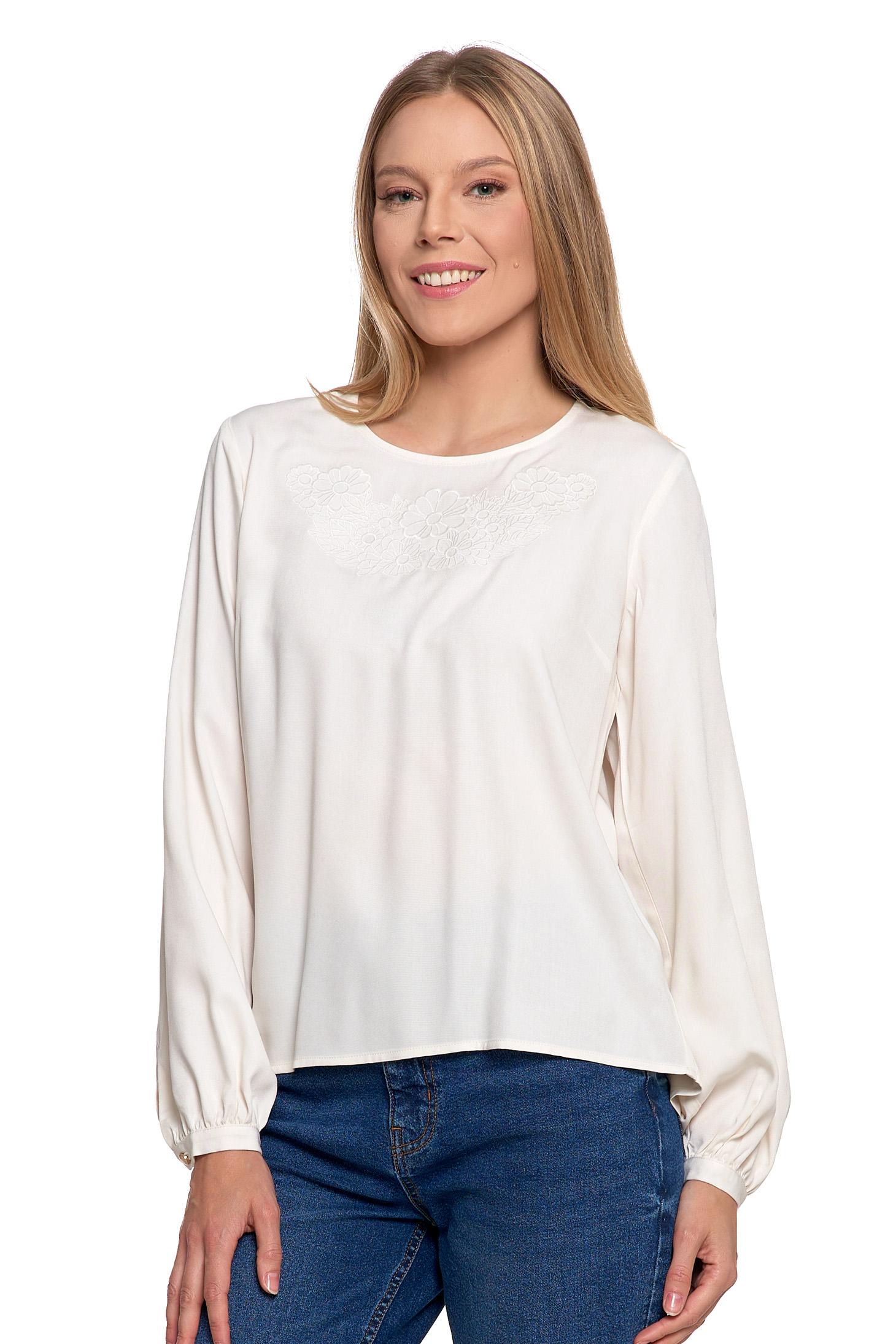LUŹNA KOSZULA DAMSKA BIAŁA ELEGANCKA BLUZKA Z HAFTEM MODNA MORAJ