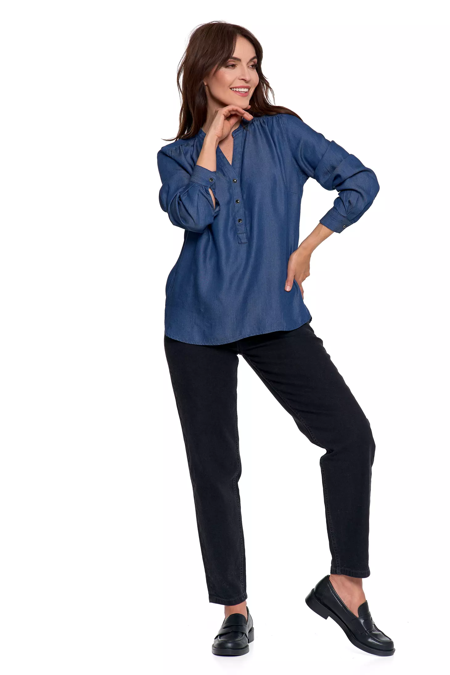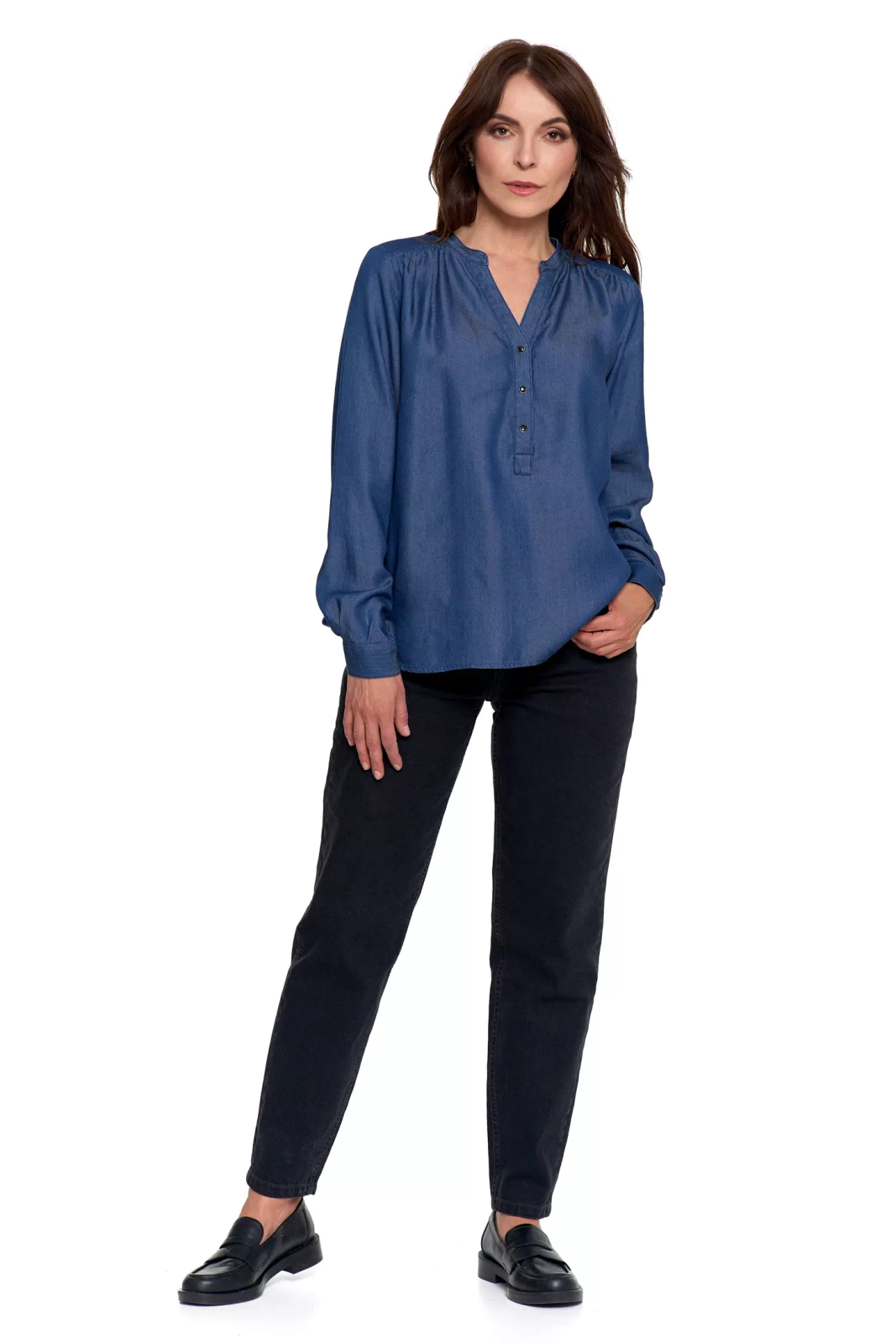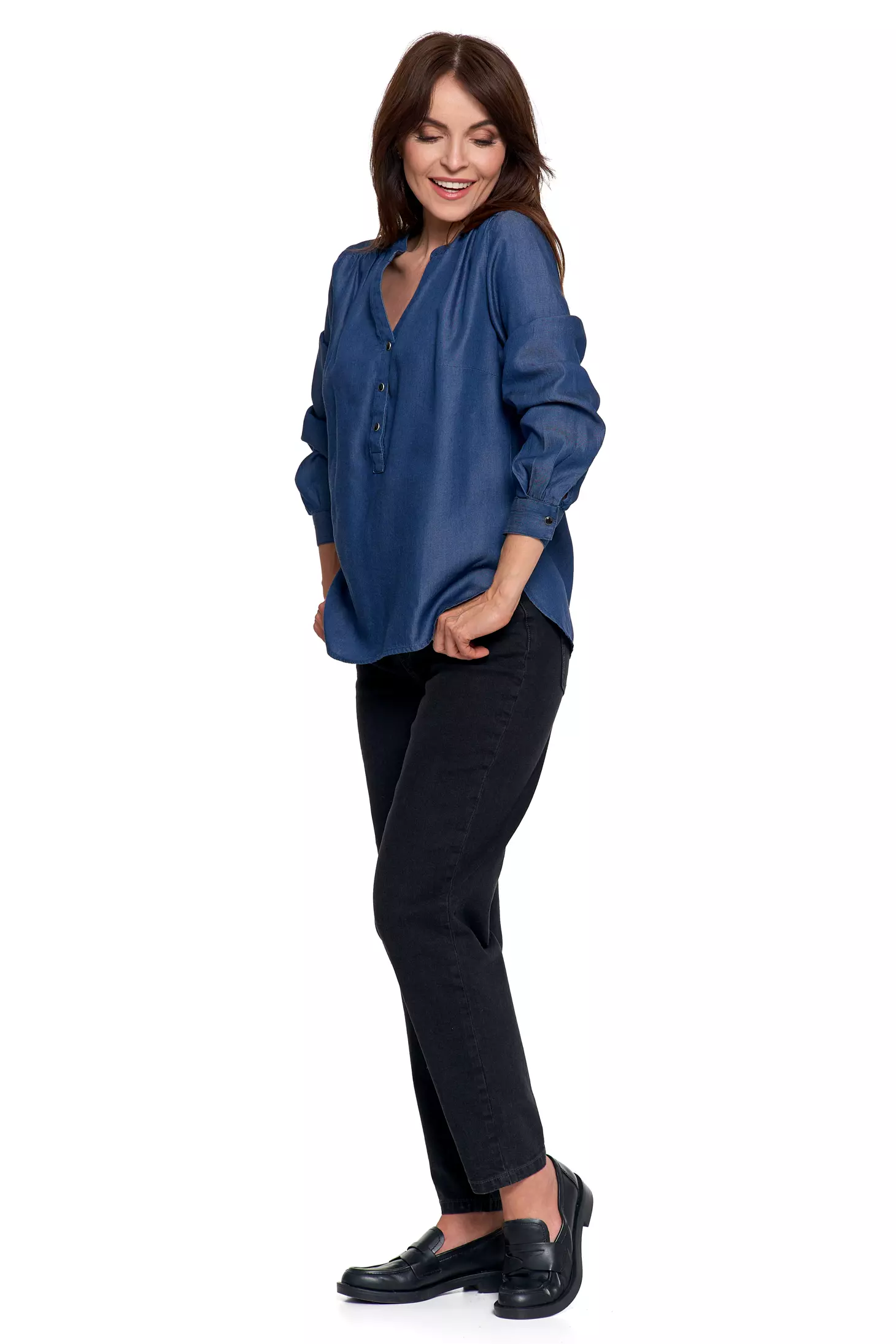 LUŹNA KOSZULA DAMSKA MODNA BLUZKA KOSZULKA Z DŁUGIM RĘKAWEM MORAJ