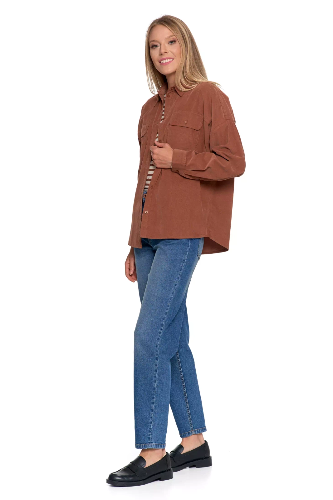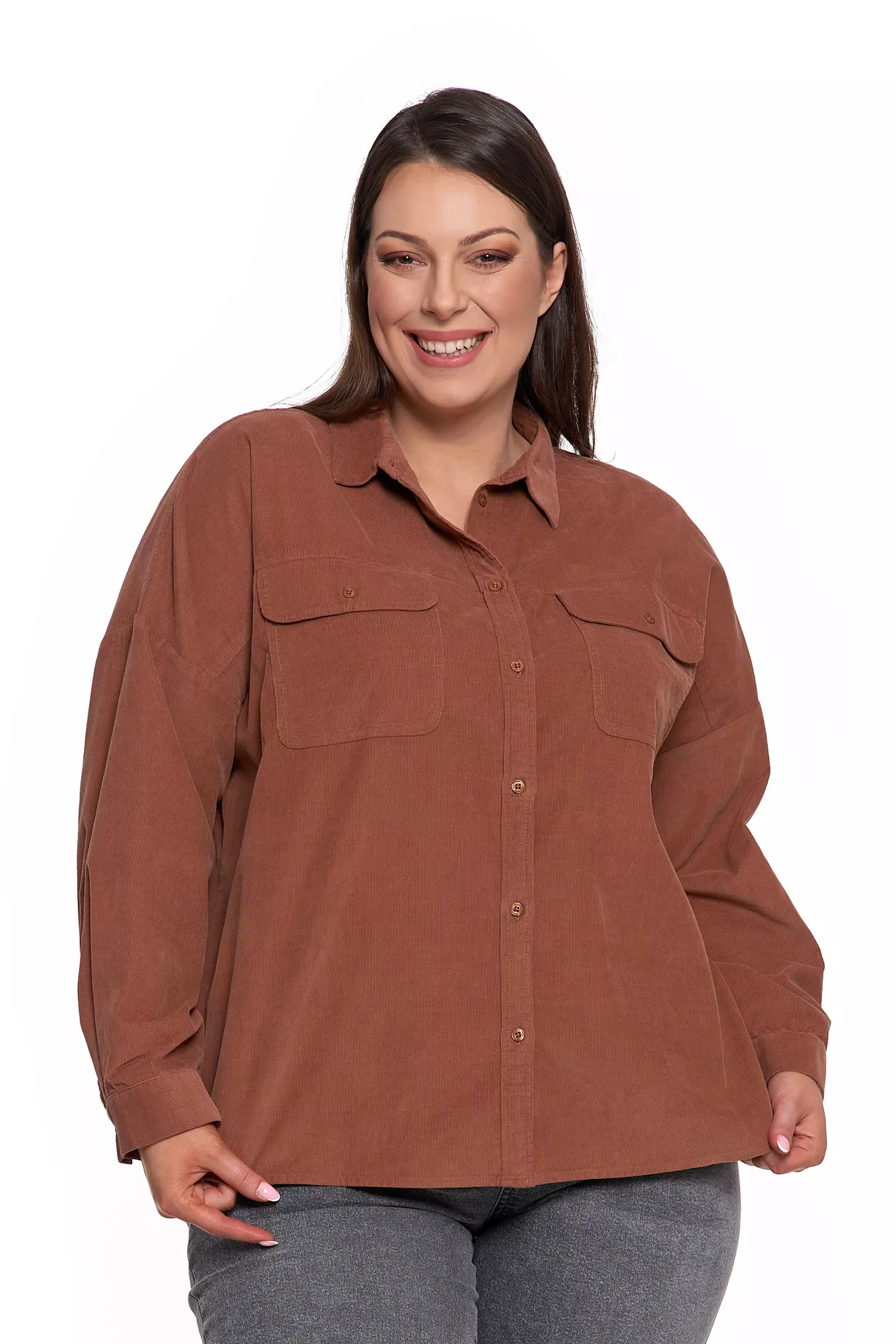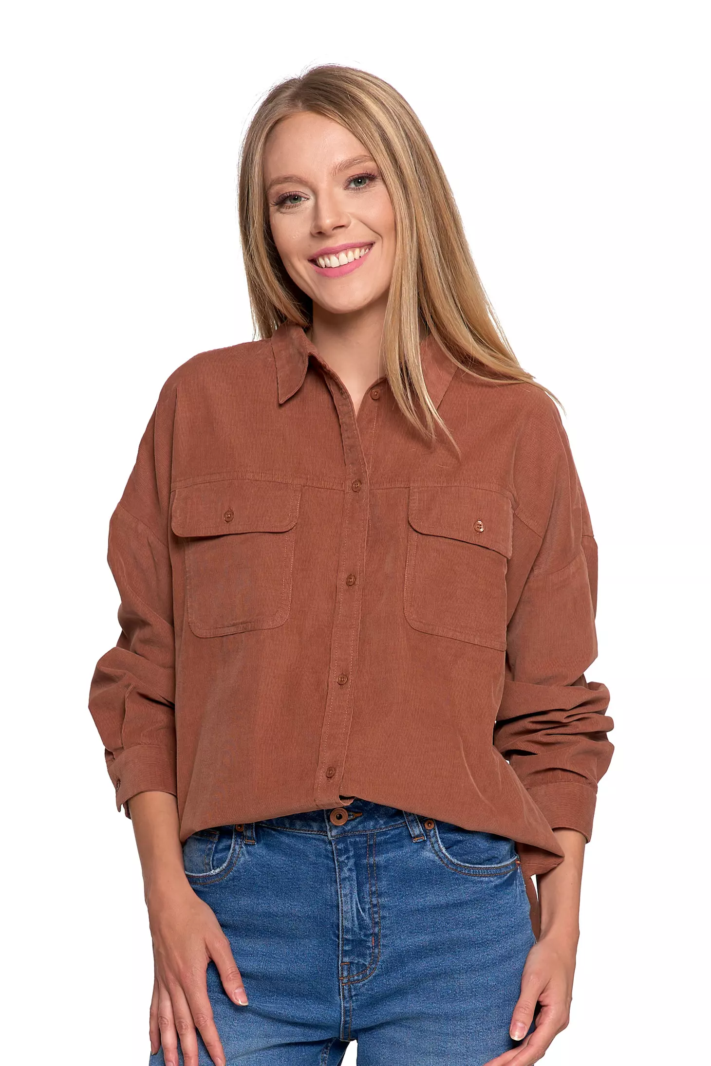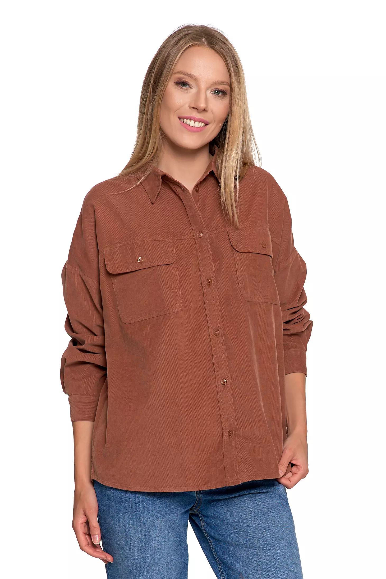 LUŹNA KOSZULA DAMSKA SZTRUKSOWA BAWEŁNIANA MODNA Z KIESZENIAMI MORAJ