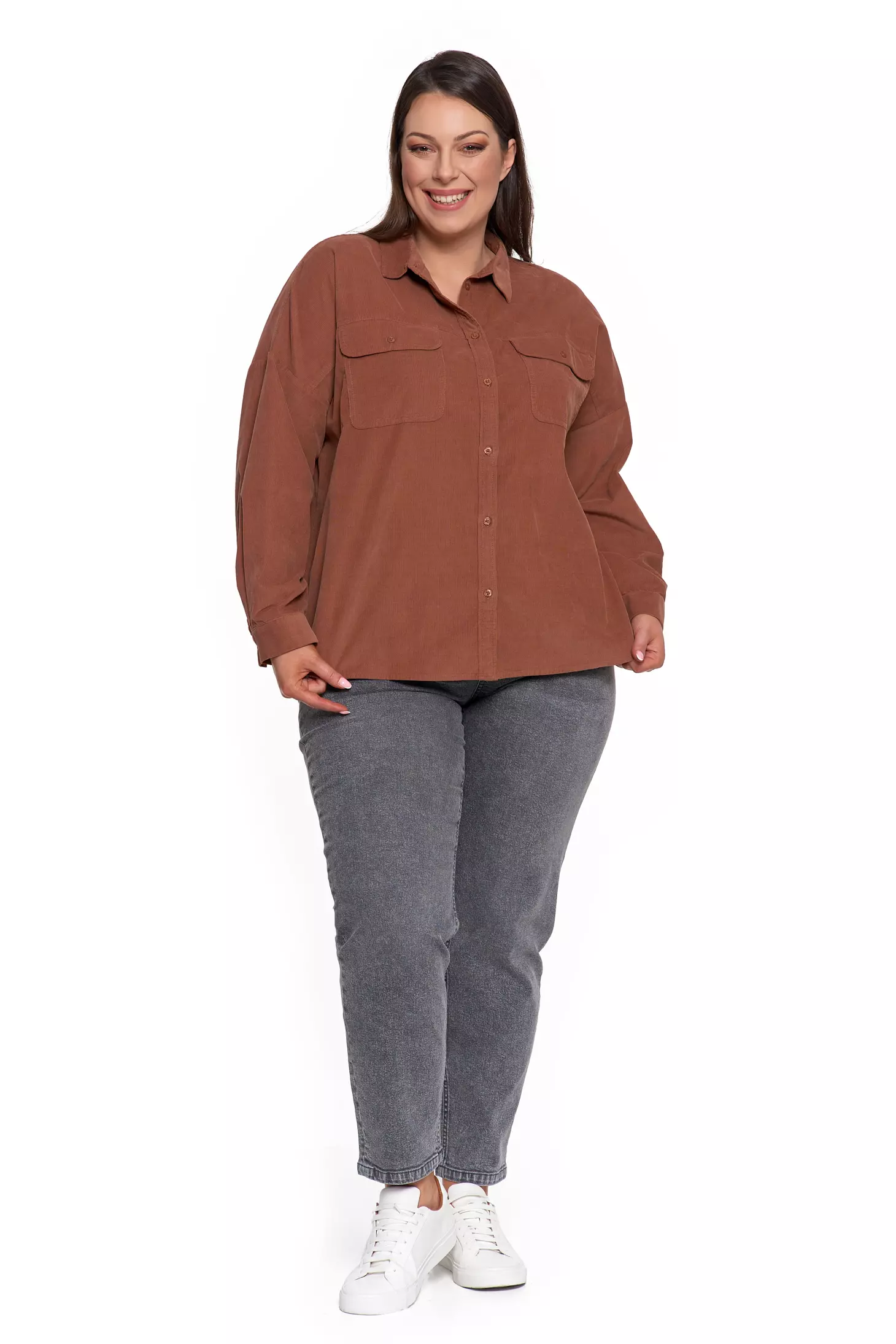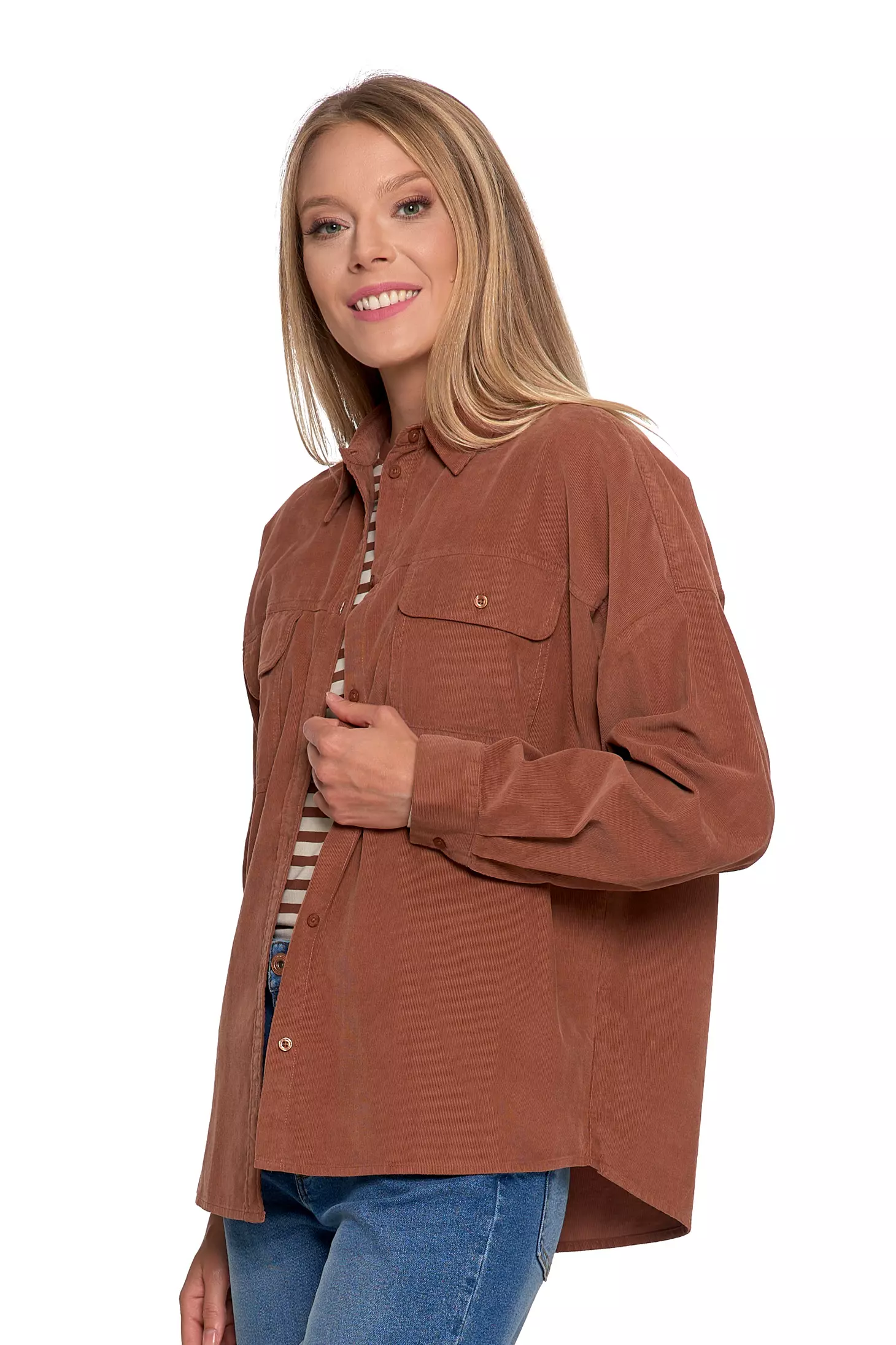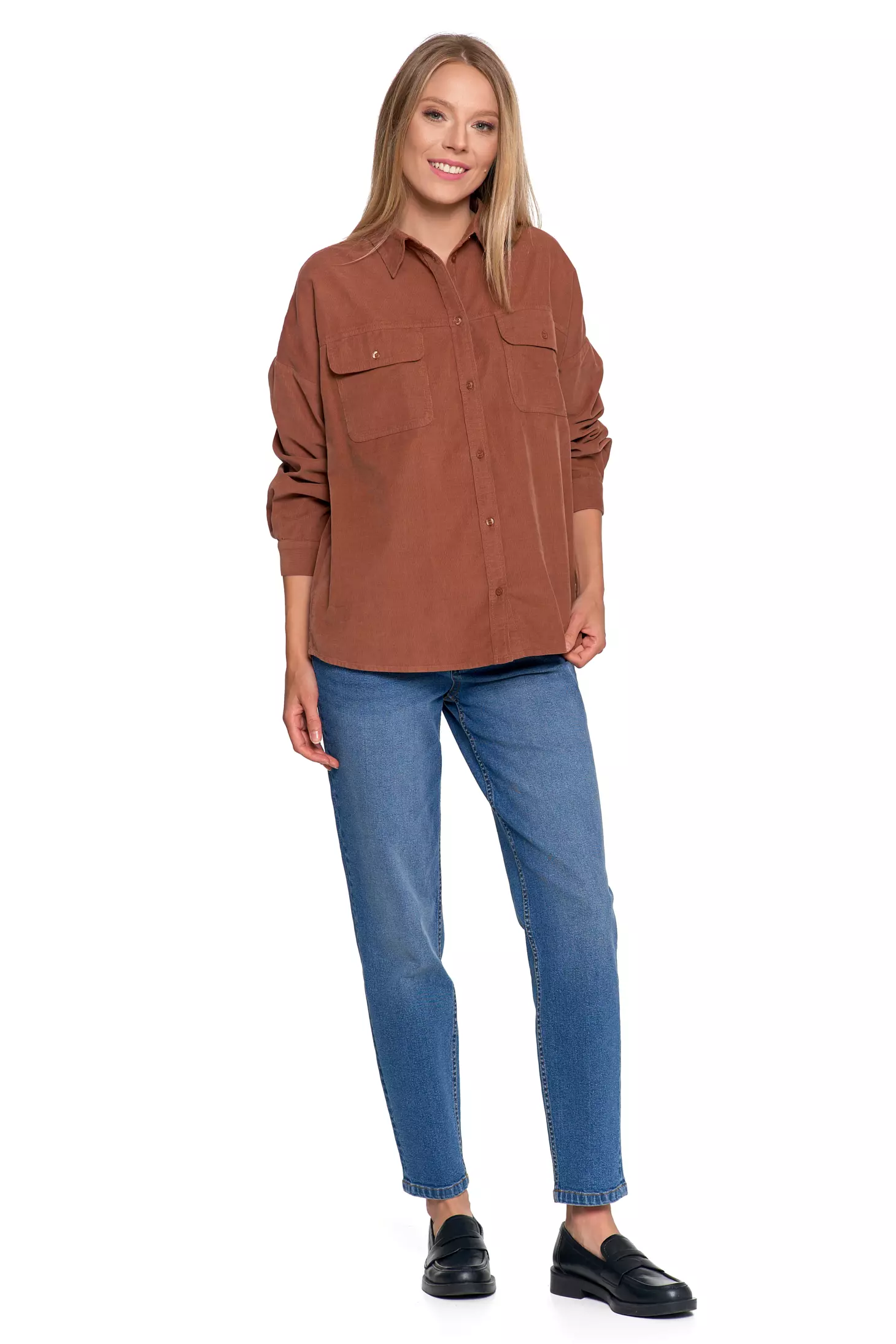 LUŹNA KOSZULA DAMSKA SZTRUKSOWA BAWEŁNIANA MODNA Z KIESZENIAMI MORAJ