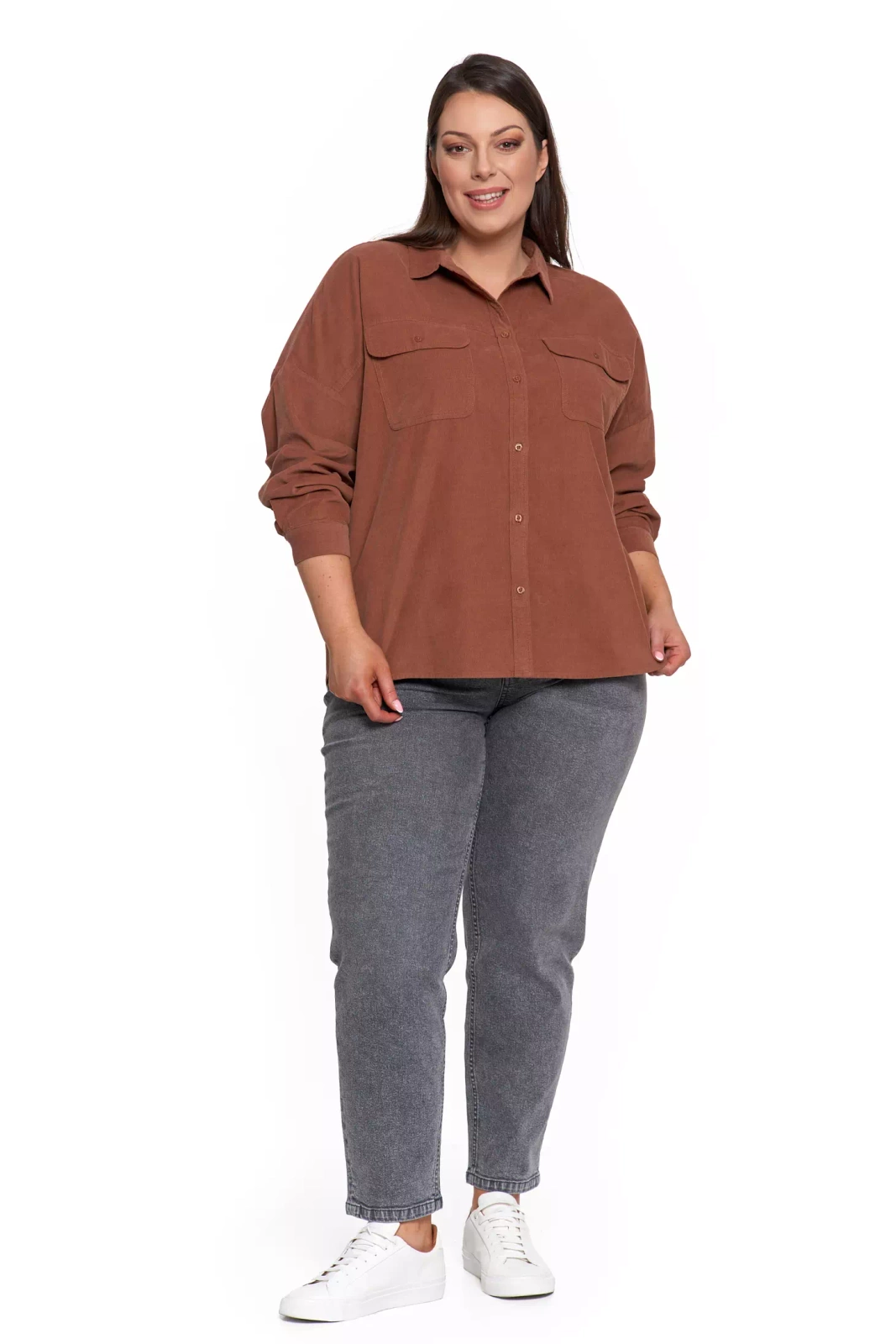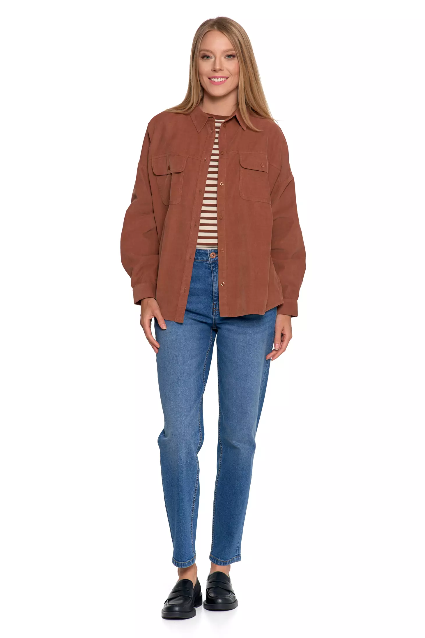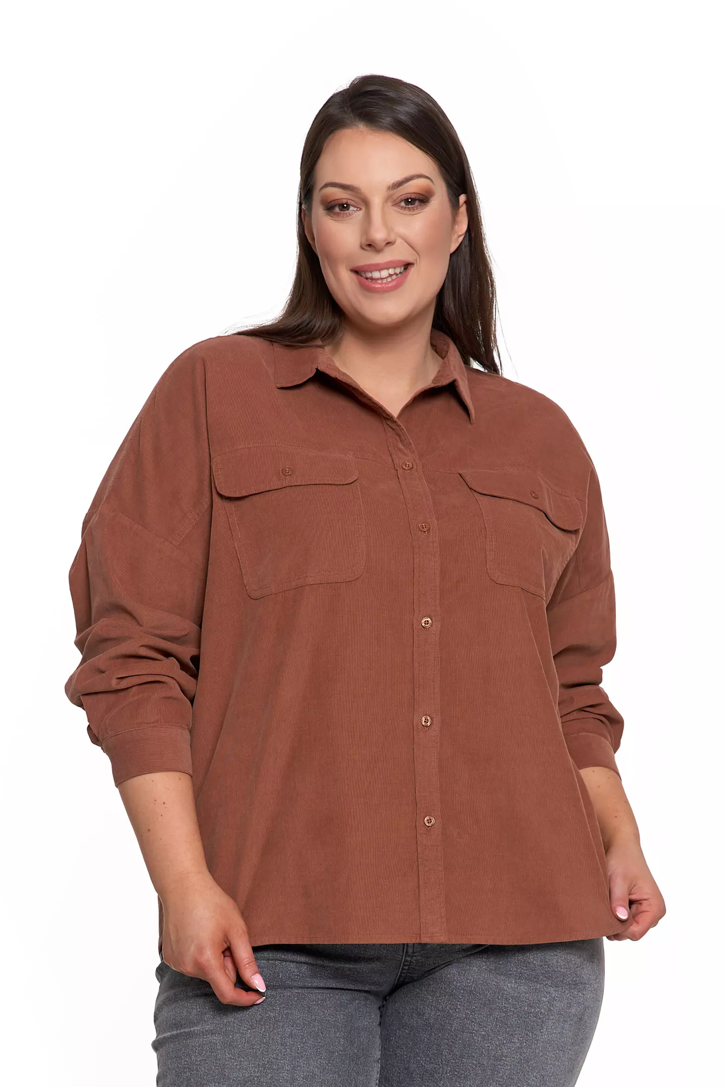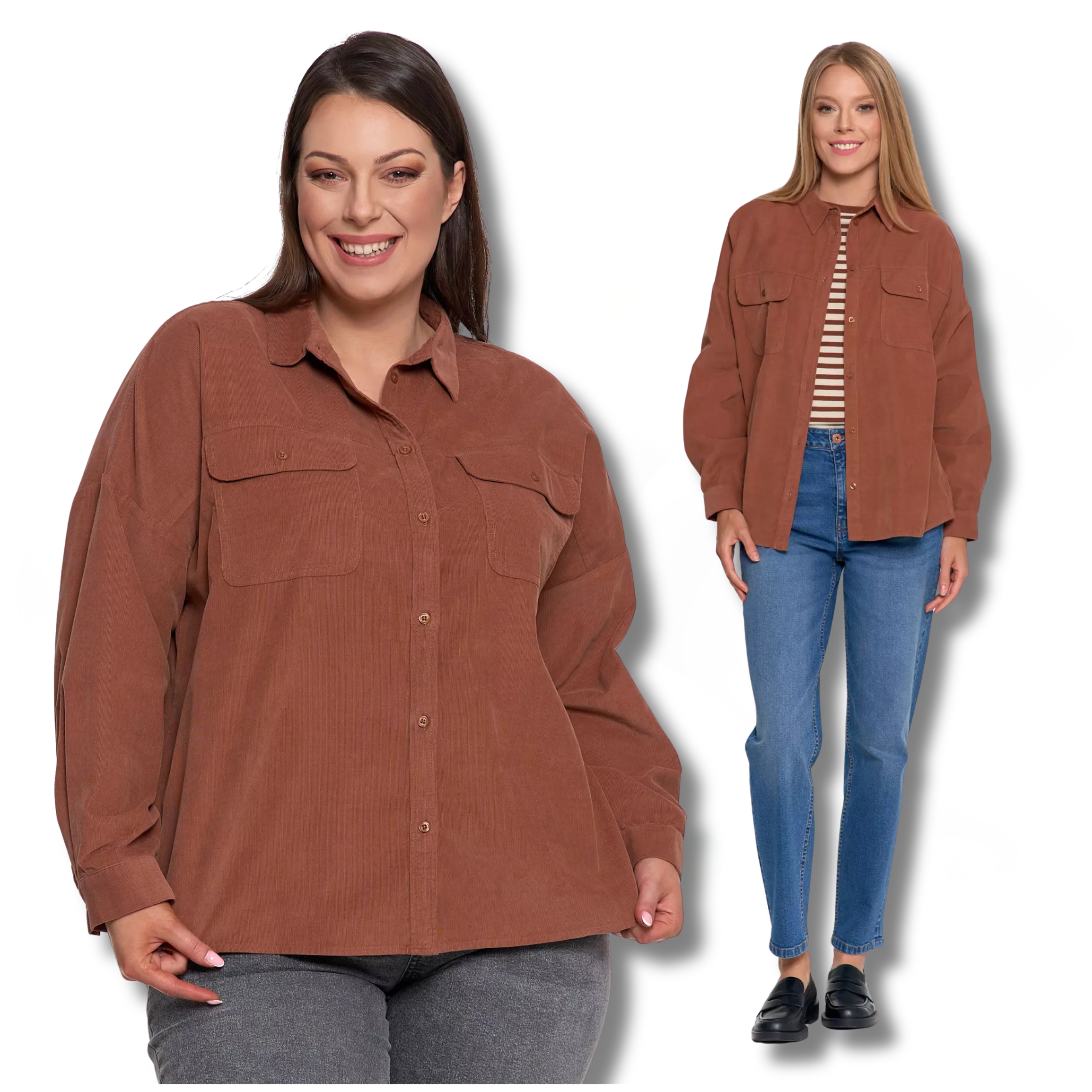 LUŹNA KOSZULA DAMSKA SZTRUKSOWA BAWEŁNIANA MODNA Z KIESZENIAMI MORAJ