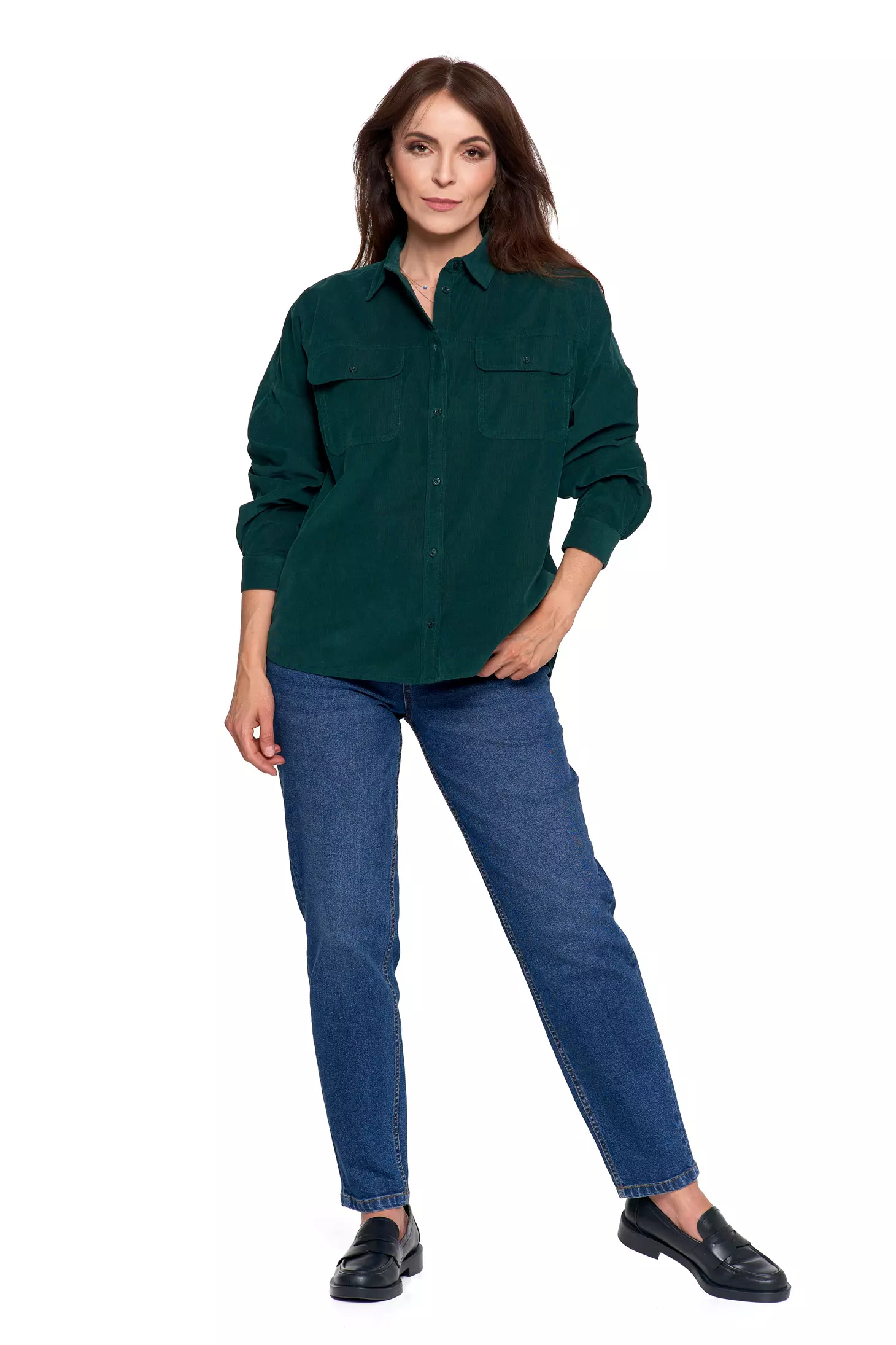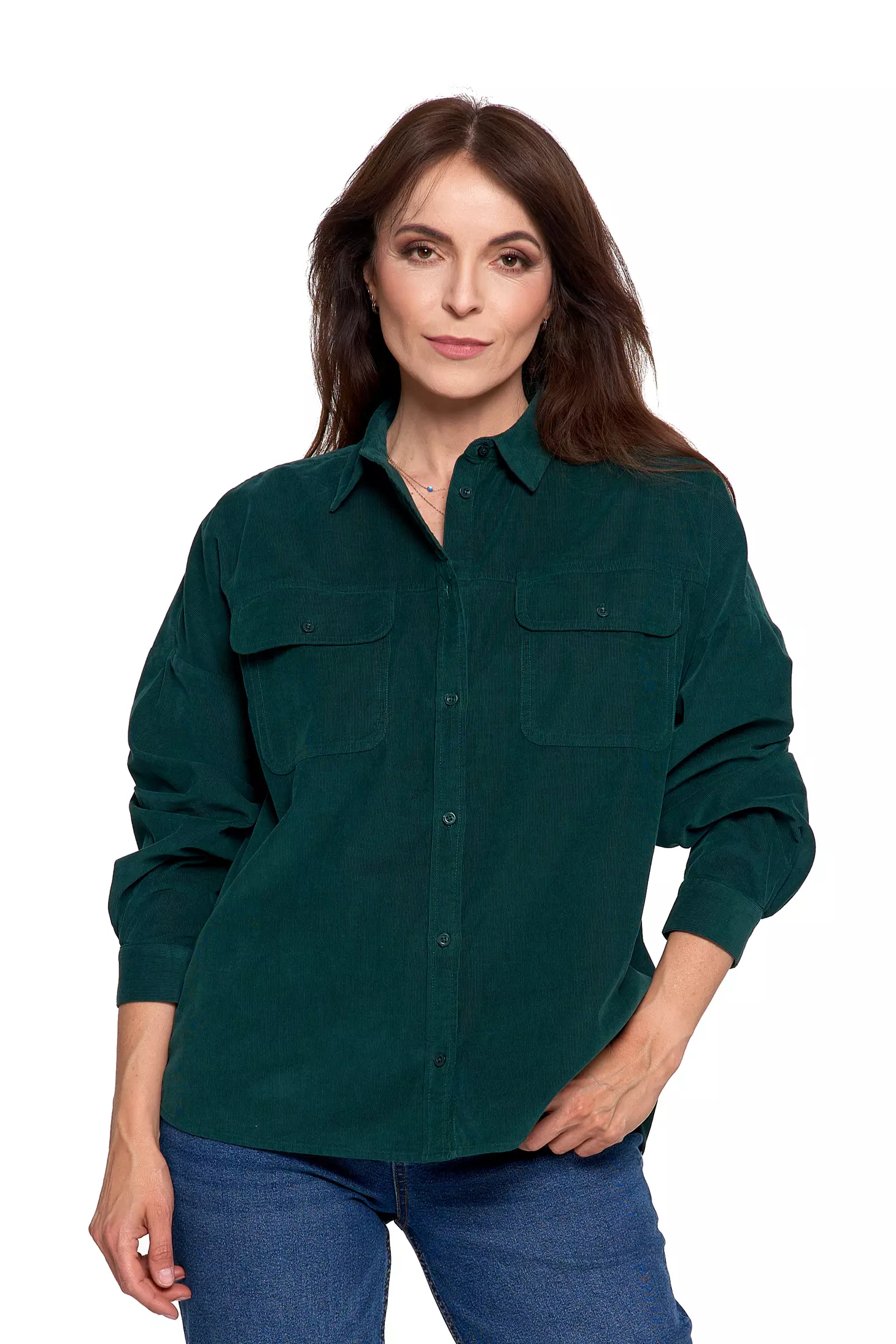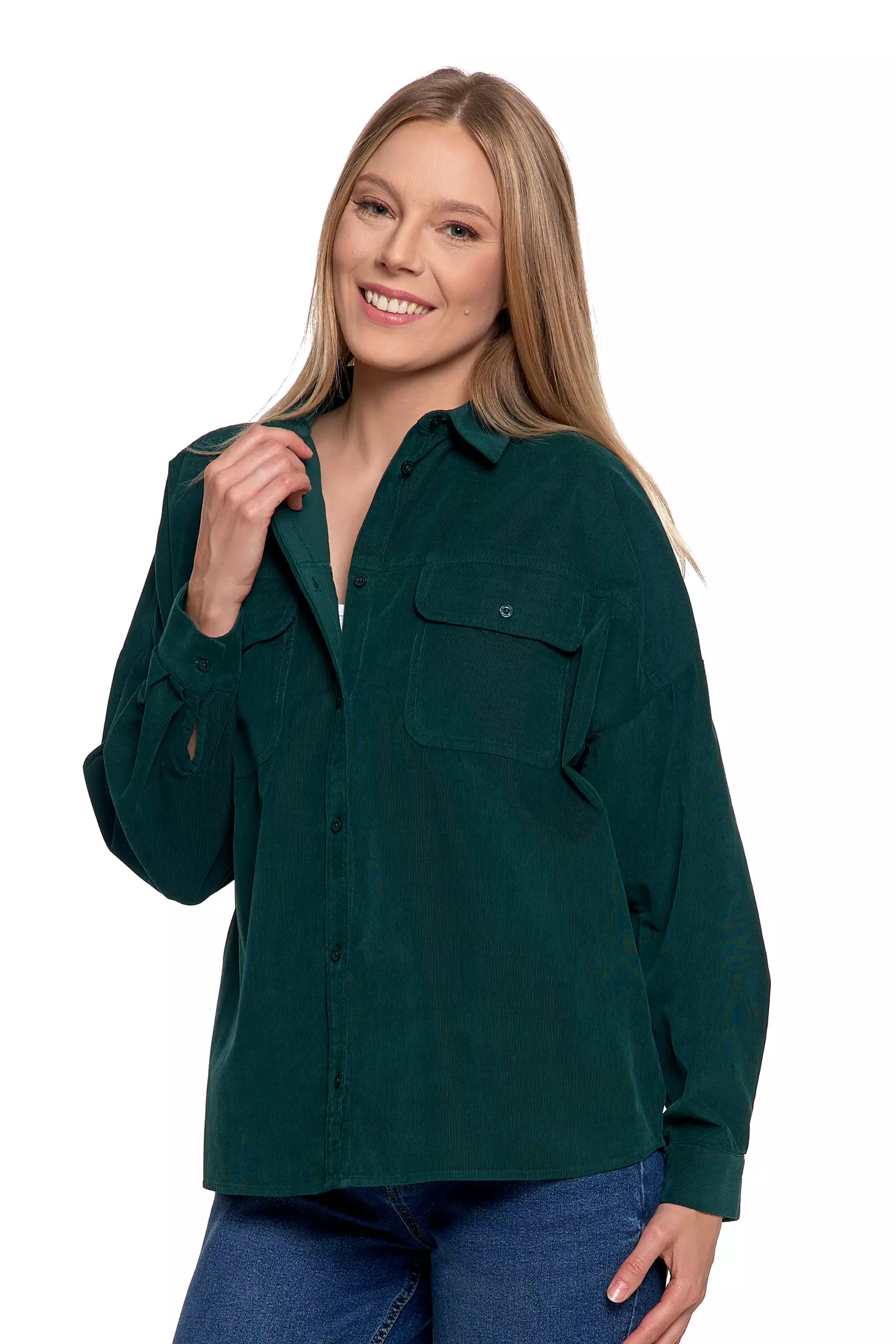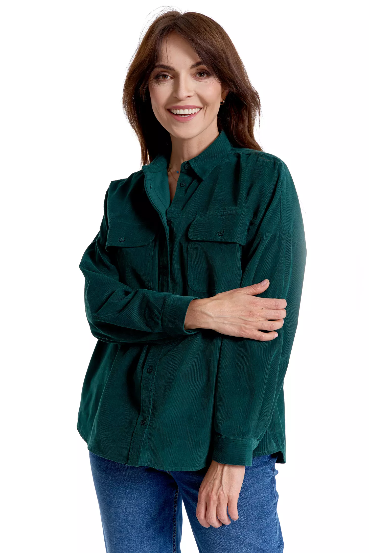 LUŹNA KOSZULA DAMSKA SZTRUKSOWA BAWEŁNIANA MODNA Z KIESZENIAMI MORAJ