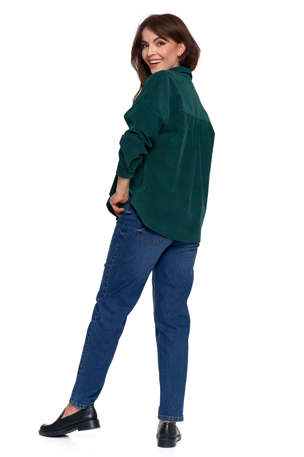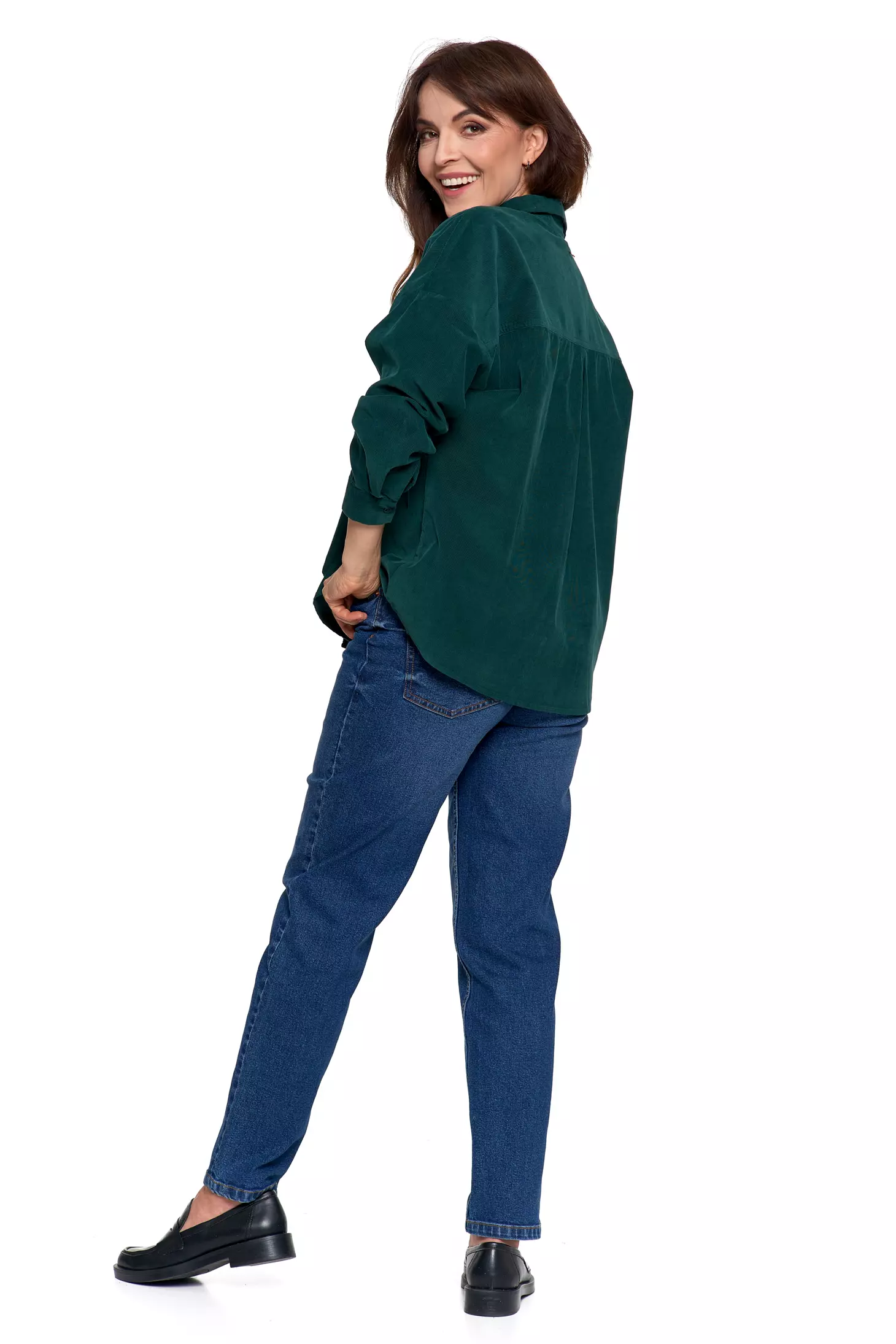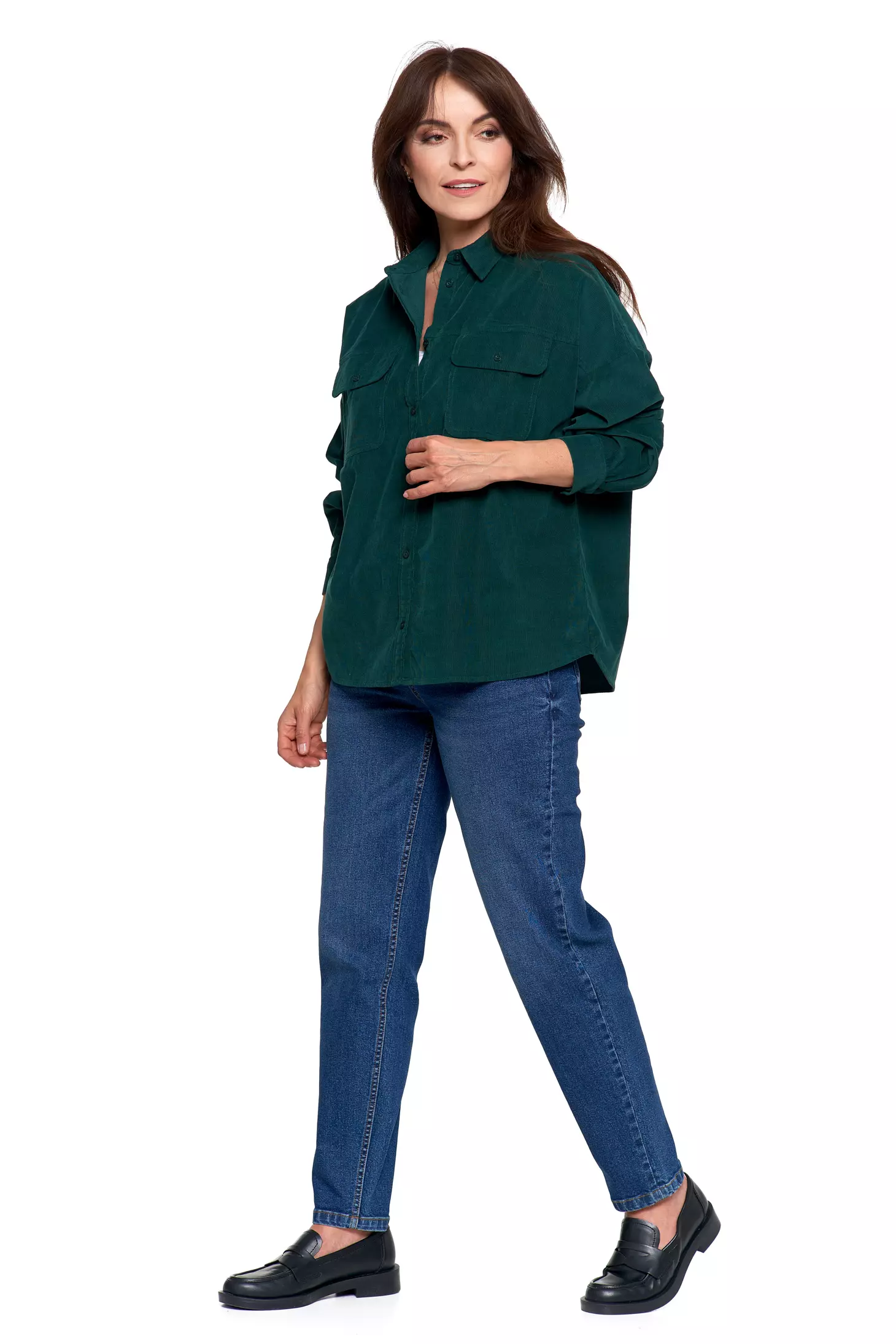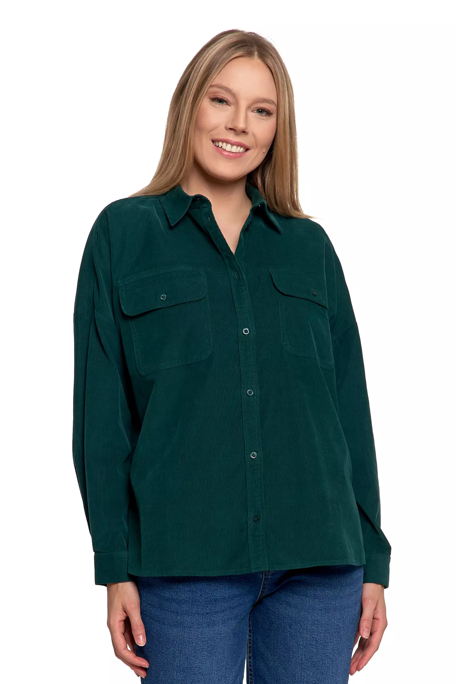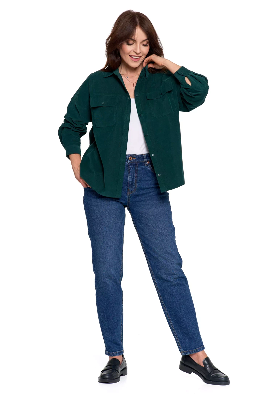 LUŹNA KOSZULA DAMSKA SZTRUKSOWA BAWEŁNIANA MODNA Z KIESZENIAMI MORAJ