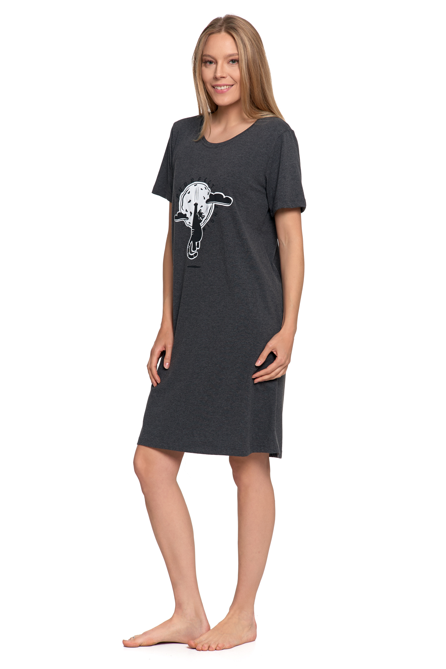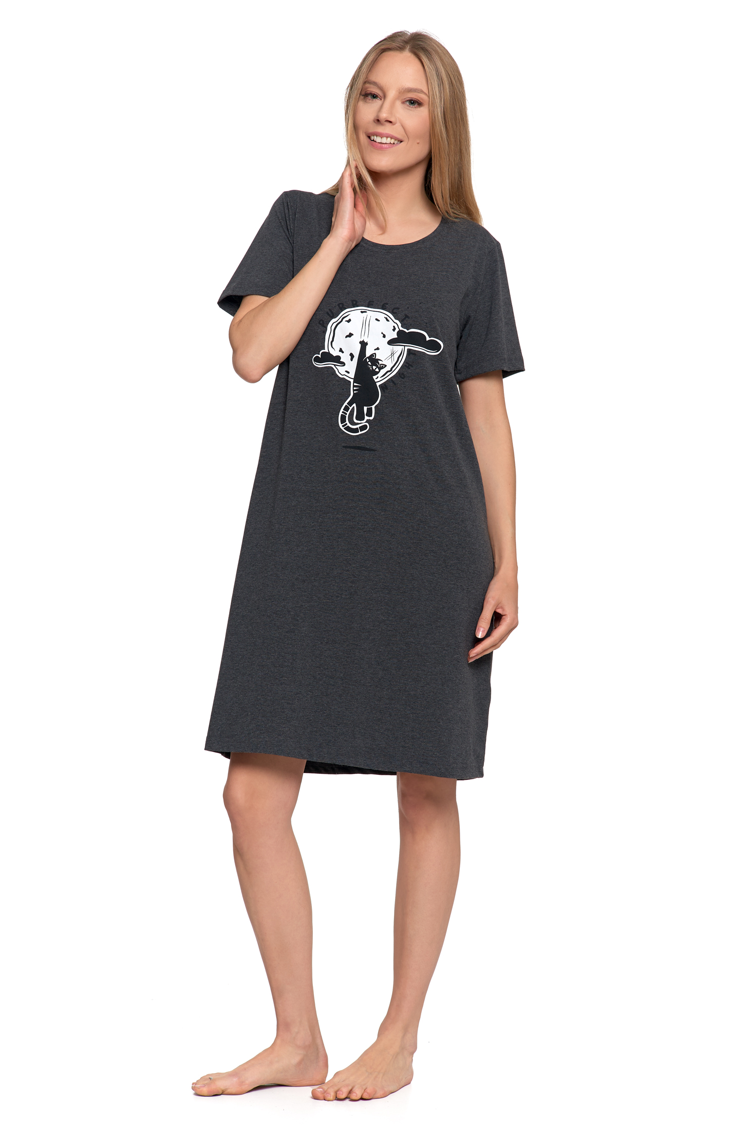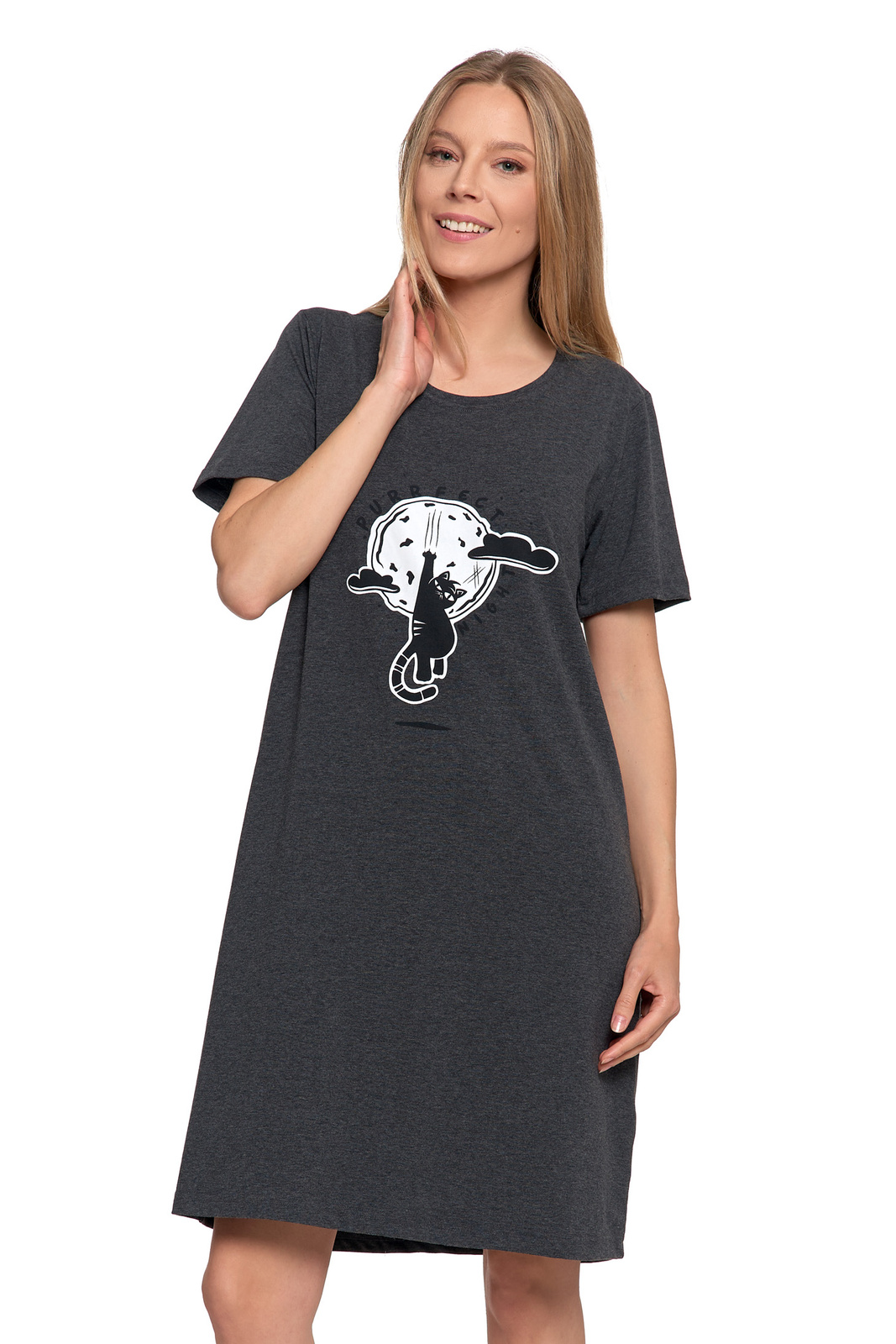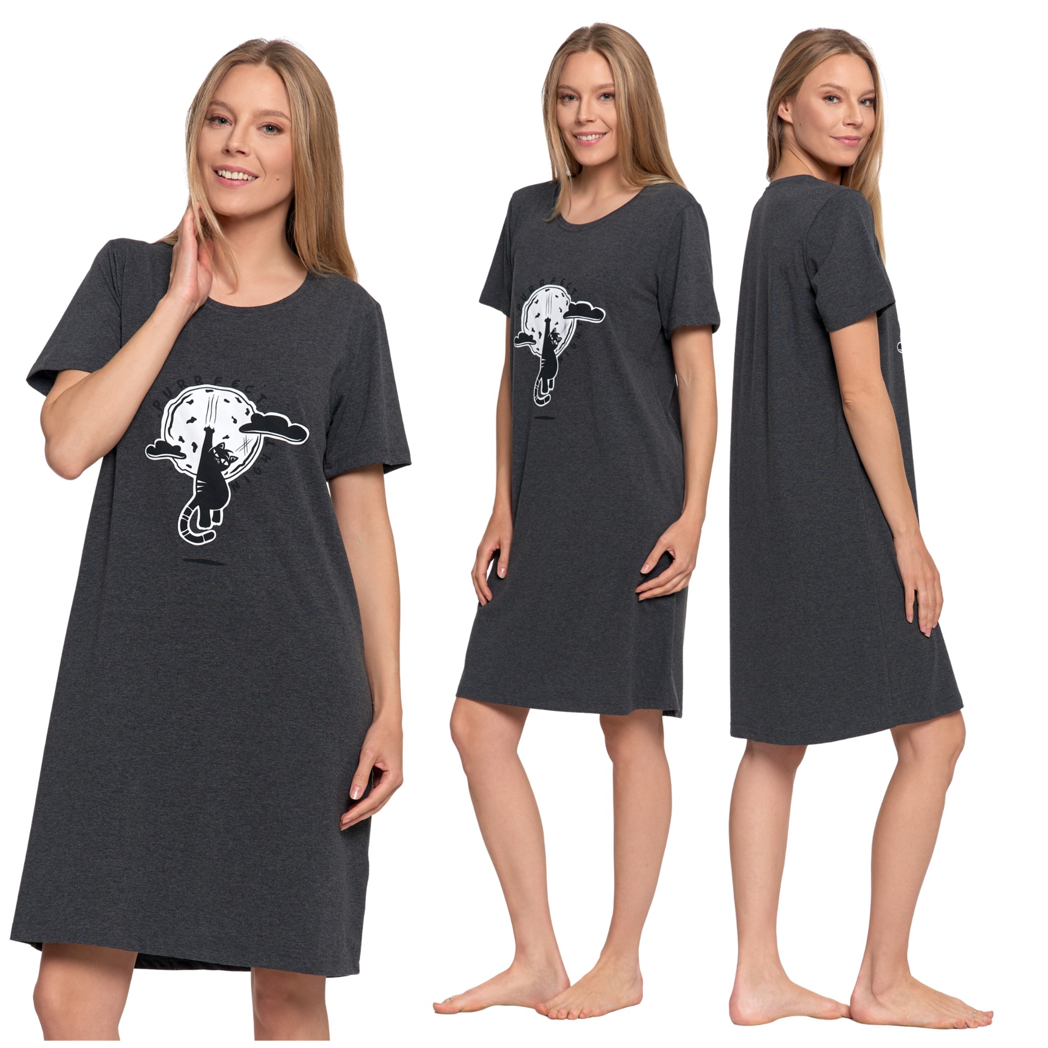 LUŹNA KOSZULA NOCNA UROCZA PIŻAMA DAMSKA Z KOTEM WYGODNA MODNA MORAJ