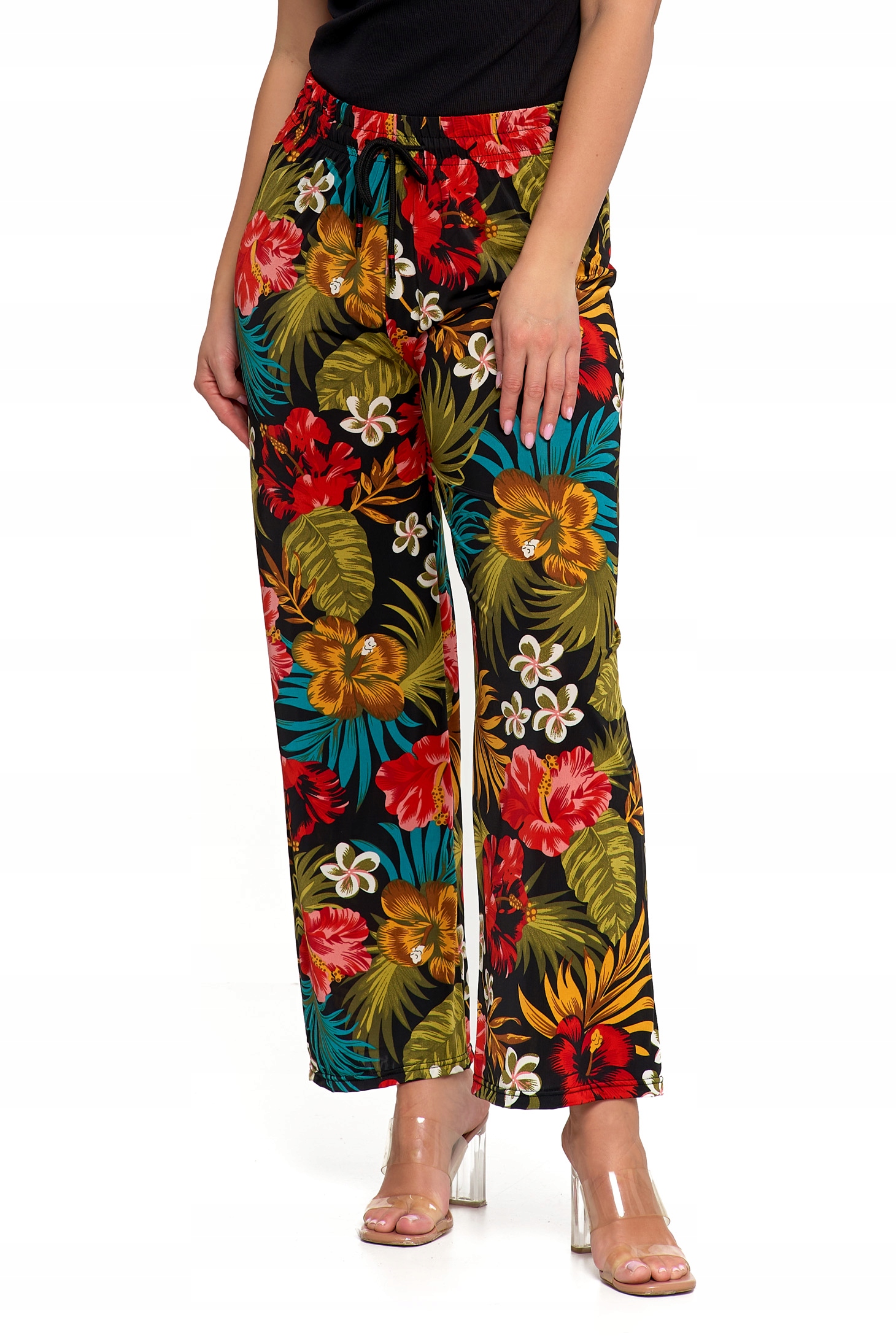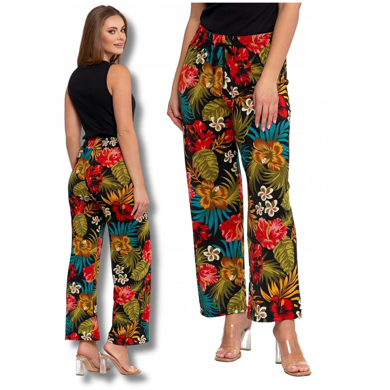 Luźne Spodnie Damskie Szeroka Nogawka Zwiewne Kwiaty Na Lato MORAJ
