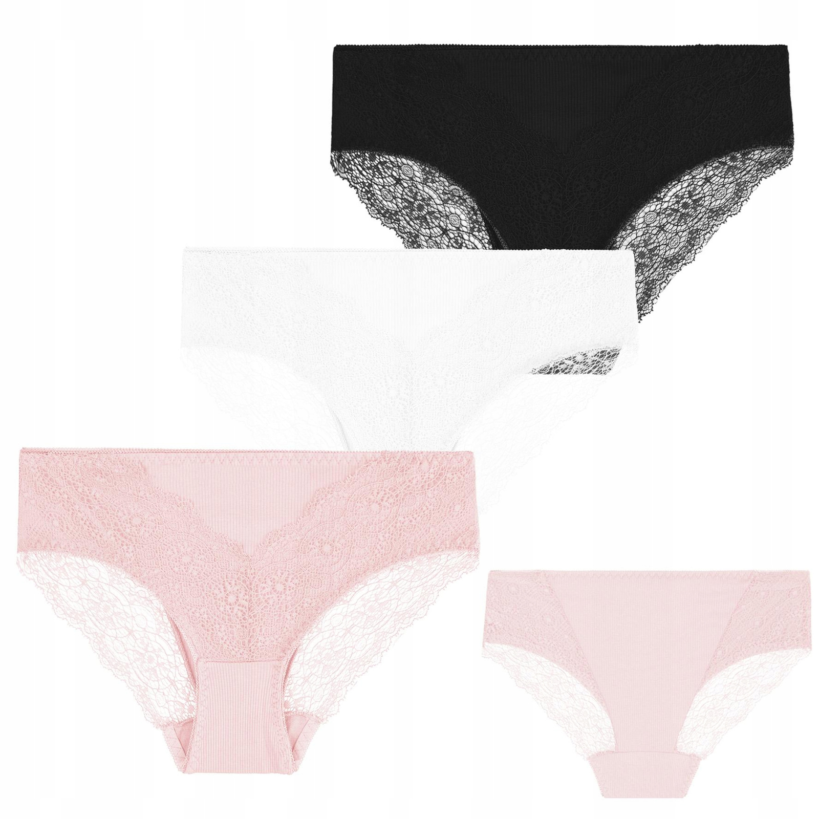 Majtki Damskie Figi Koronkowe Prążkowane Eleganckie Delikatne 3-PAK MORAJ