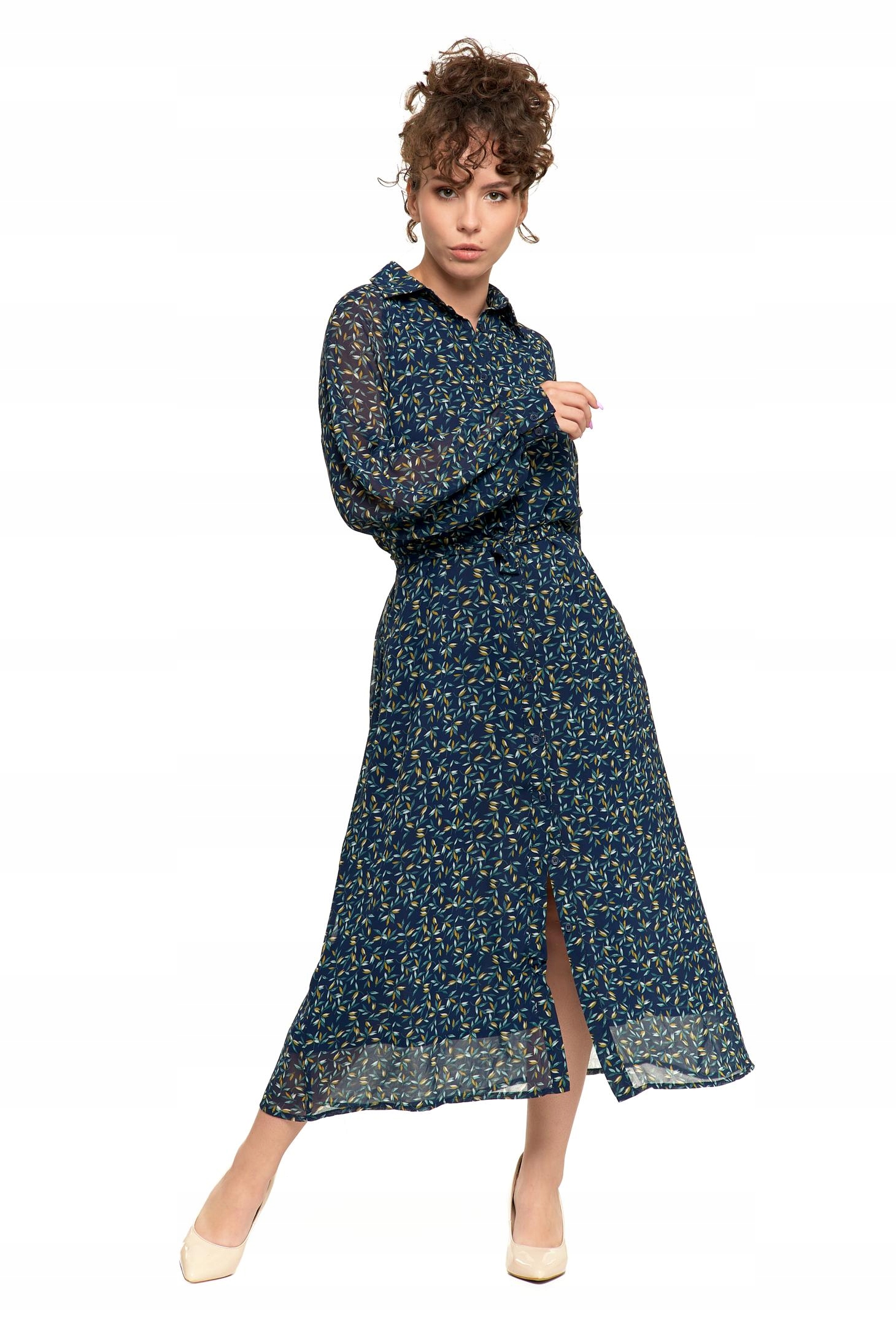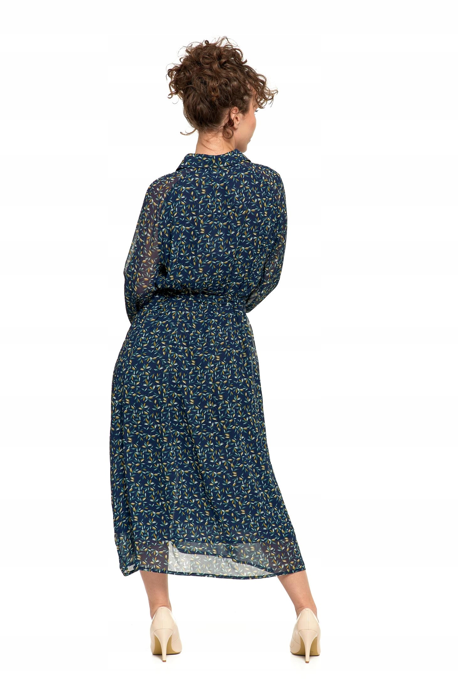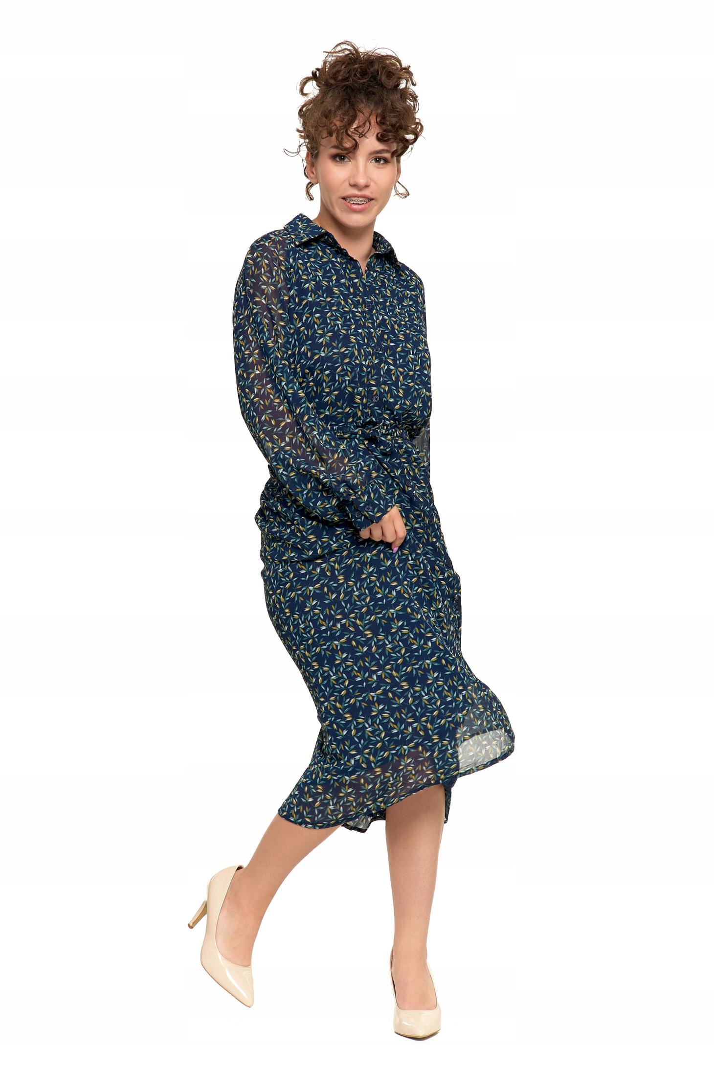 Ozdobiona jest efektownym wiązaniem w okolicy dekoltu. To nie tylko dodaje jej uroku, ale także umożliwia dostosowanie sukienki do swojej sylwetki. Wyposażona w praktyczne kieszenie, umożliwia przechowywanie niezbędnych drobiazgów, takich jak klucze czy telefon, bez konieczności noszenia dodatkowej torebki. Posiada transparentne rękawy z możliwością regulacji mankietu. Sukienka posiada podszewkę, co zapewnia nie tylko wygodę, ale również zapobiega prześwitom.