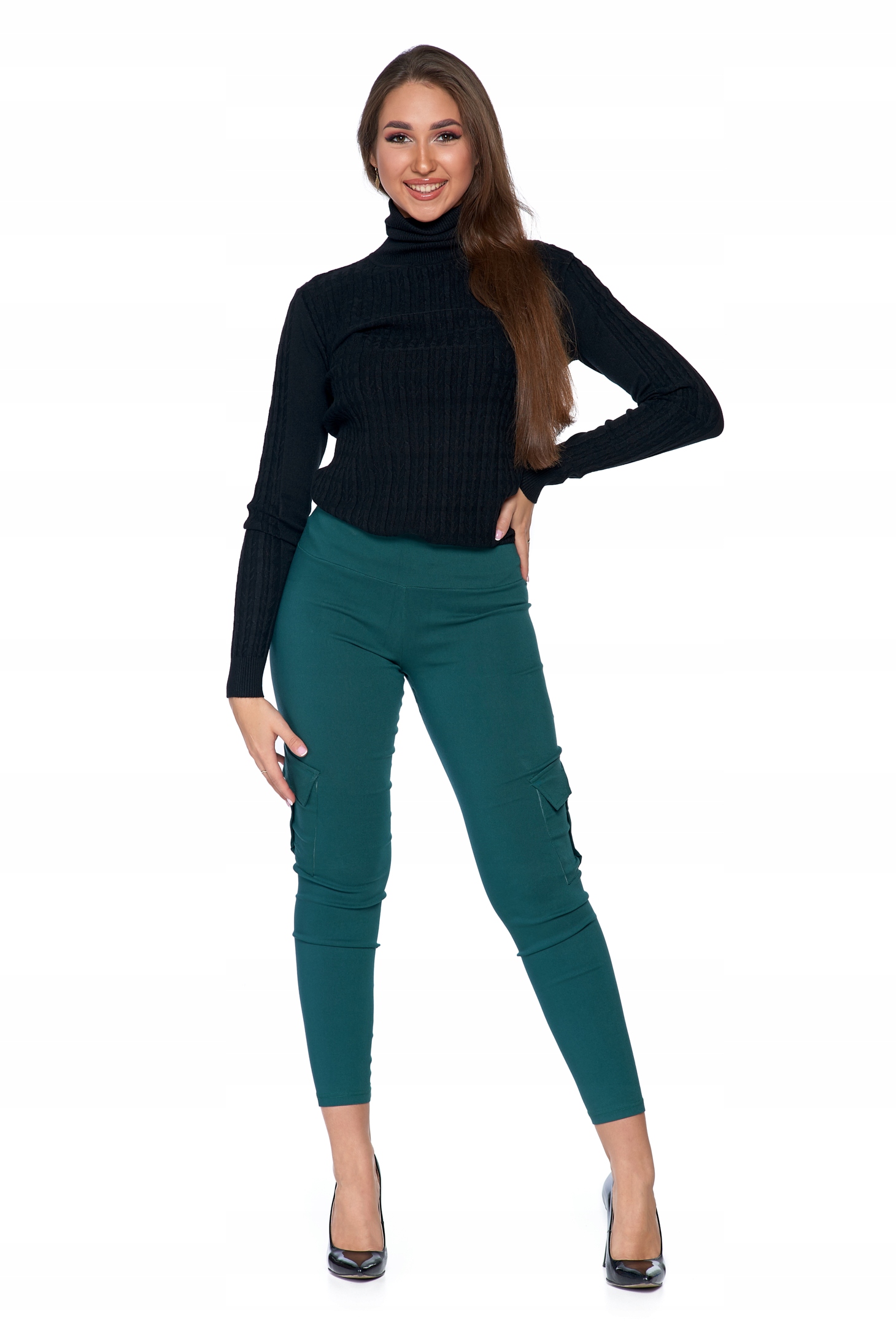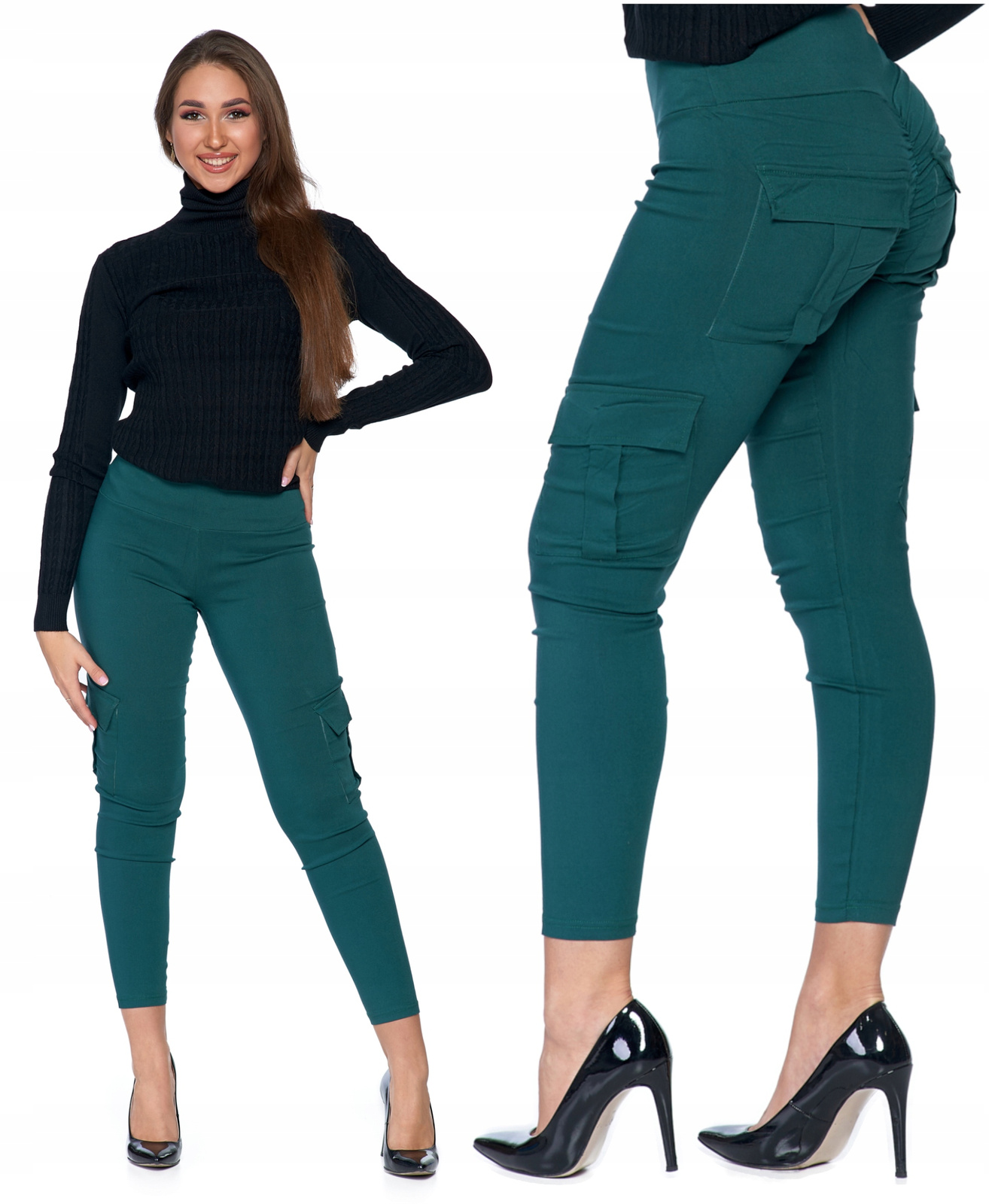 Uszyte z wysokiej jakości, miękkiego materiału, są bardzo elastyczne. Pięknie podkreślają sylwetkę. Dodatkowo spodnie zostały ozdobione kieszeniami, nadając im charakteru bojówek.