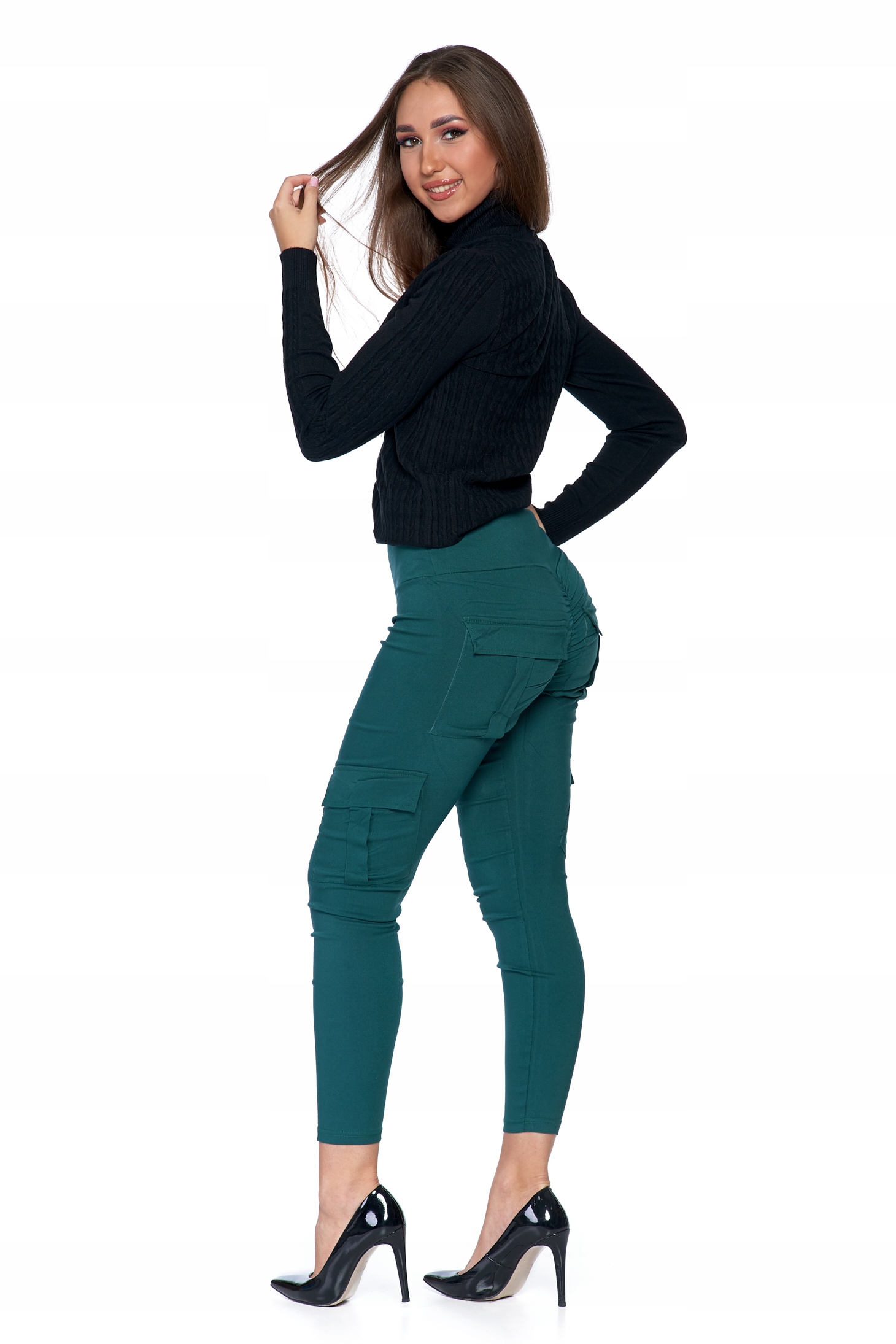 Modelujące SPODNIE PUSH-UP DAMSKIE Pośladki Zielone z Kieszeniami MORAJ