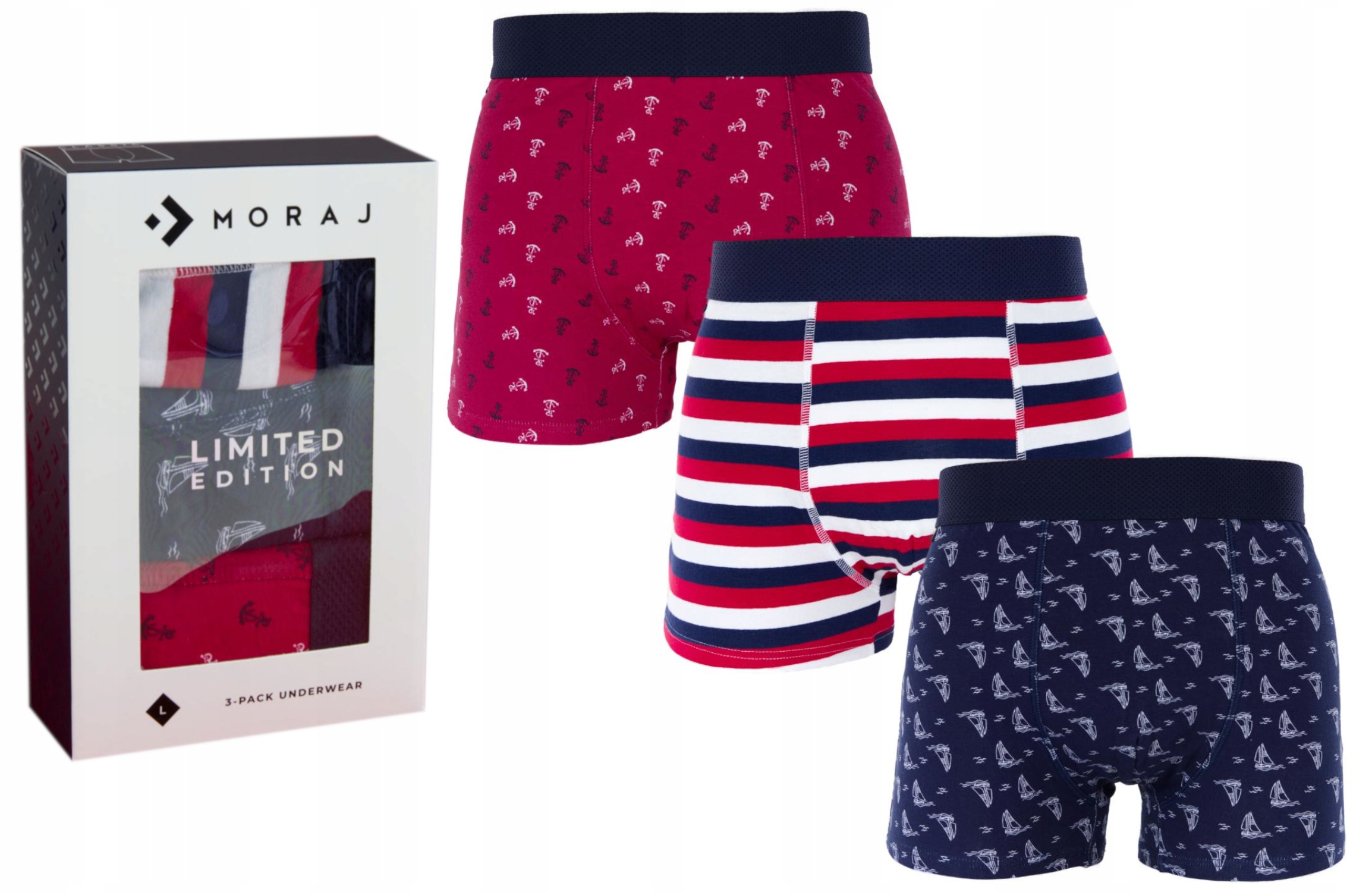 MORAJ Bokserki Męskie Bawełniane Żaglówka 3-pak