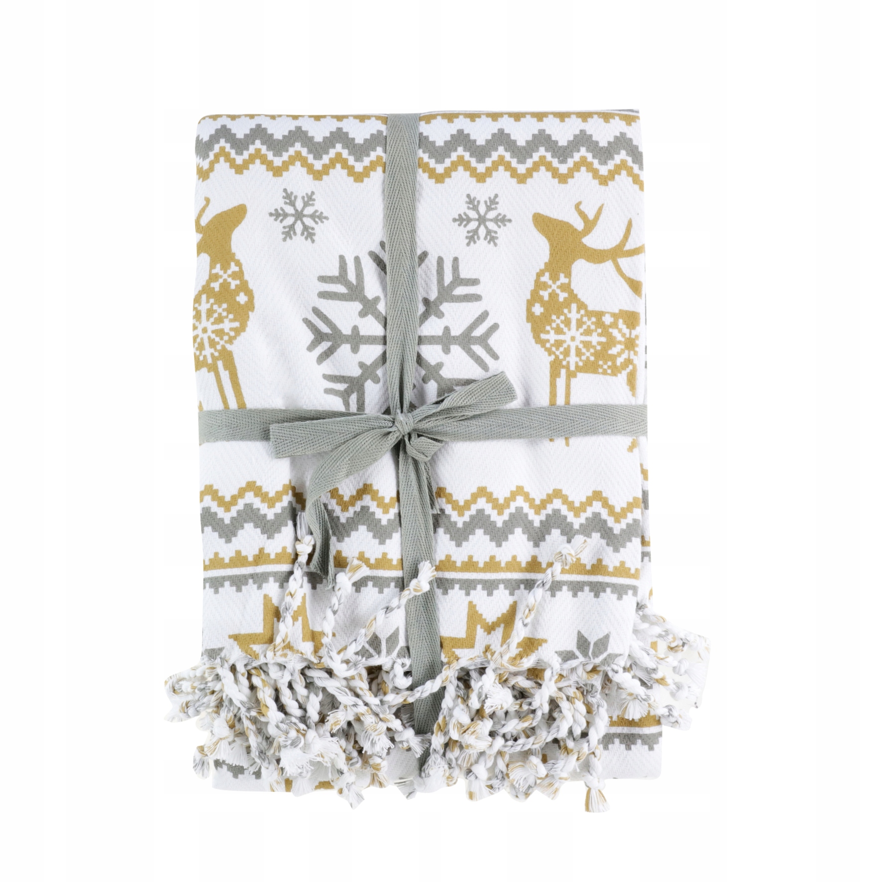 Koc wykonany ze stuprocentowej, wysokogatunkowej bawełny. Jest w świątecznym wzorze. Wykończony stylowymi frędzlami. Ozdobi łóżko, nada niepowtarzalnego klimatu każdemu wnętrzu, a przede wszystkim skutecznie ogrzeje w chłodne wieczory. Zapewnij sobie dawkę relaksu otulając się ciepłym, miłym w dotyku kocem. Model jest doskonałą propozycją na prezent.