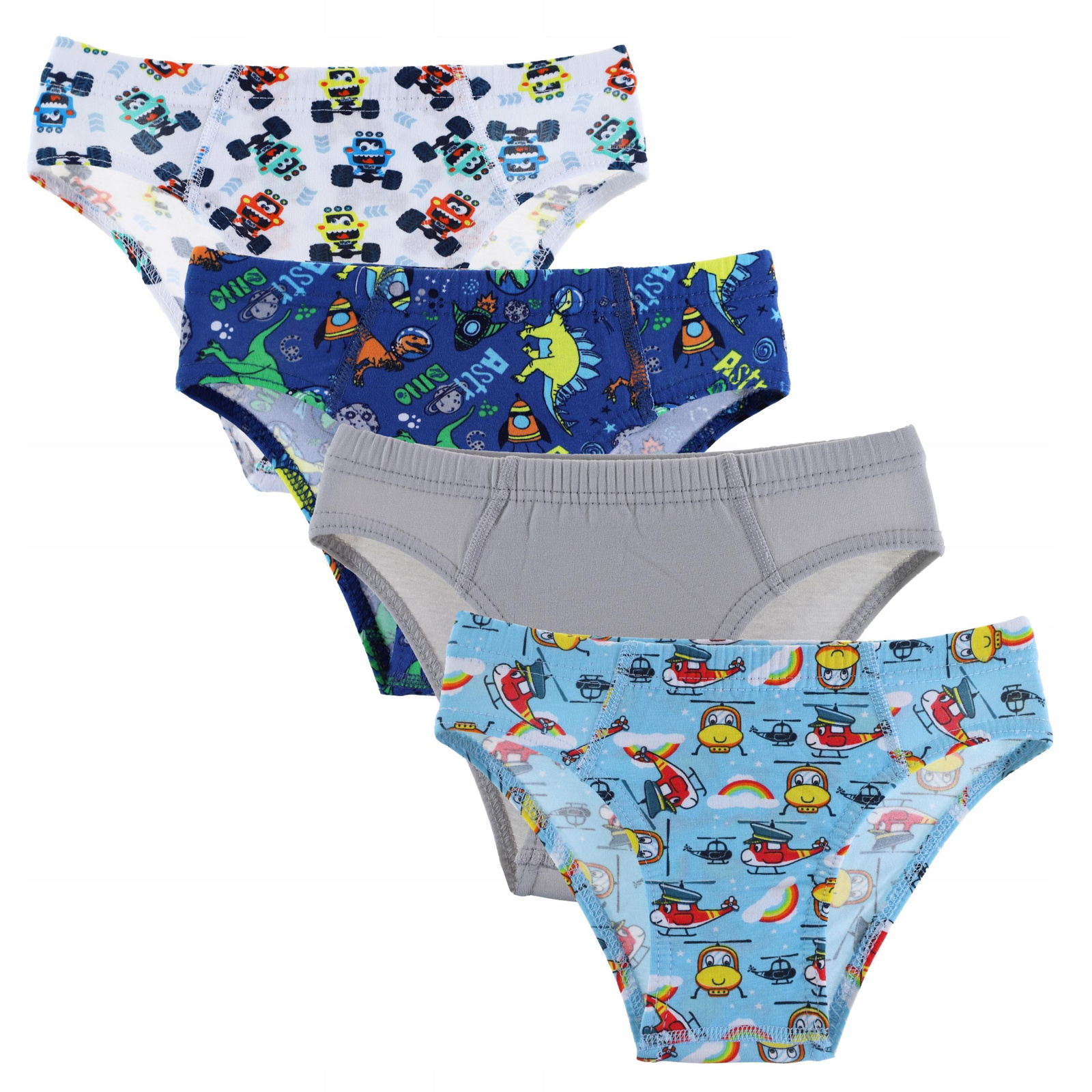 Cena dotyczy 4 szt. Slipów chłopięcych w wybranym rozmiarze, w miksie kolorystycznym przedstawionym na zdjęciu poniżej bez możliwości wyboru koloru.