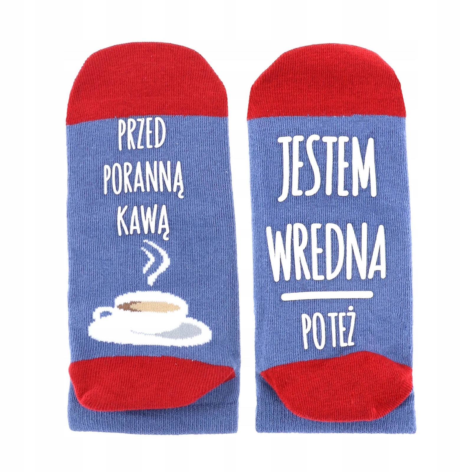 Skarpetki damskie z humorystycznym napisem, który napewno wywoła uśmiech na twojej twarzy. Napis wykonany jest z trwałej, miękkiej gumy, dzięki czemu stopki mają właściwości antypoślizgowe. Skarpetki uszyte są z wysokogatunkowej bawełny i zakończone elastycznym ściągaczem co wpływa na komfort użytkowania. Dzięki dodatku elastanu świetnie dopasowuję się do stopy, jednocześnie nie powodując ucisku. Kolory są wyraziste a napis nie ściera się nawet po wielokrotnym praniu. Idealny pomysł na prezent.
