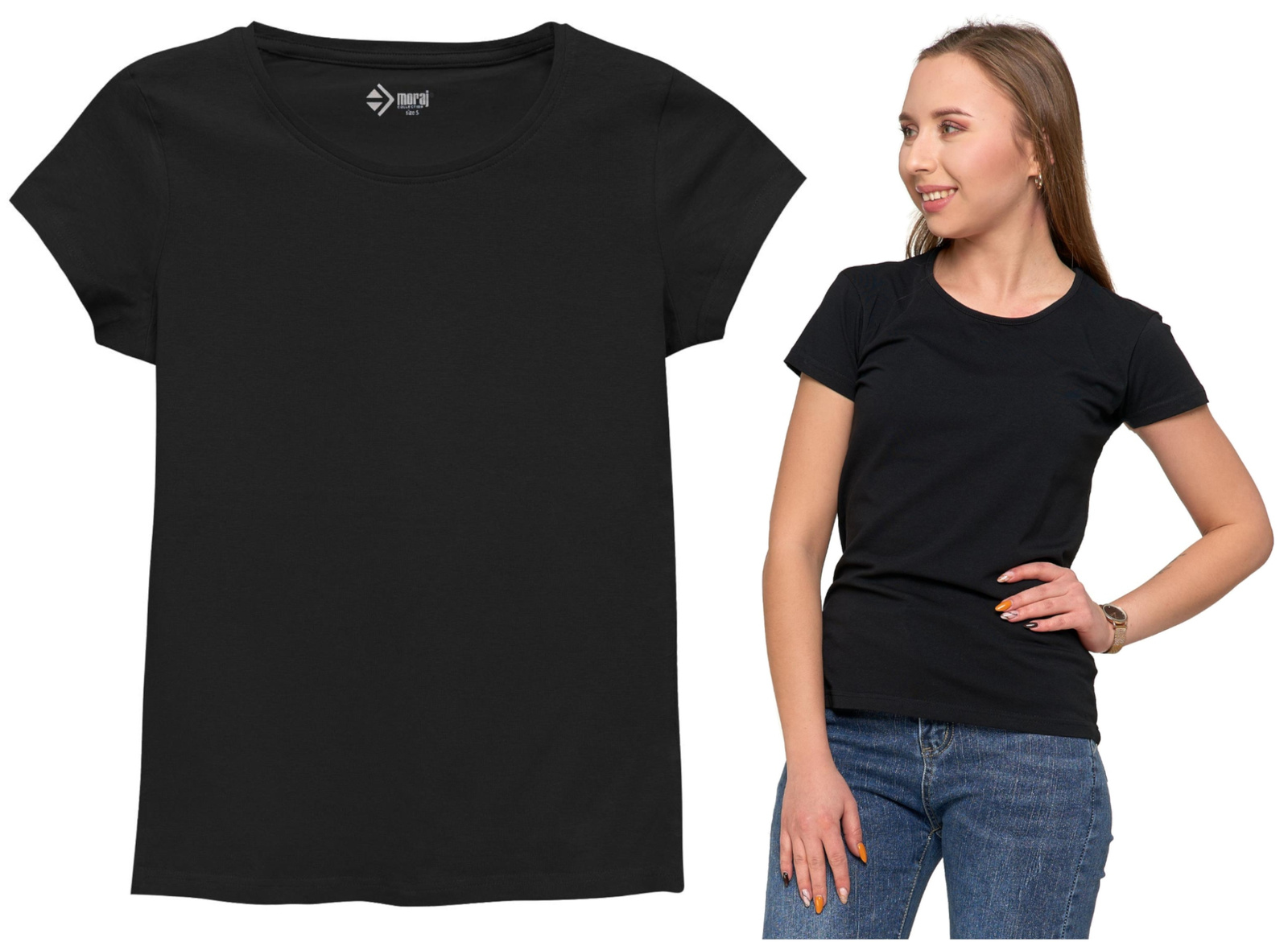 Czarny T-Shirt Klasyczny Damski Koszulka Bawełniana Krótki Rękaw MORAJ S