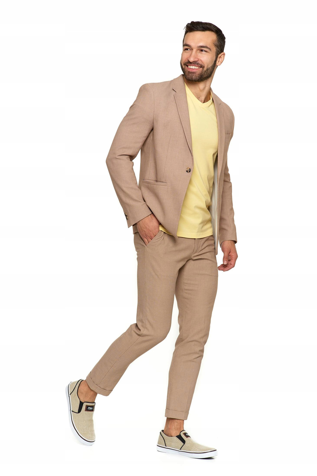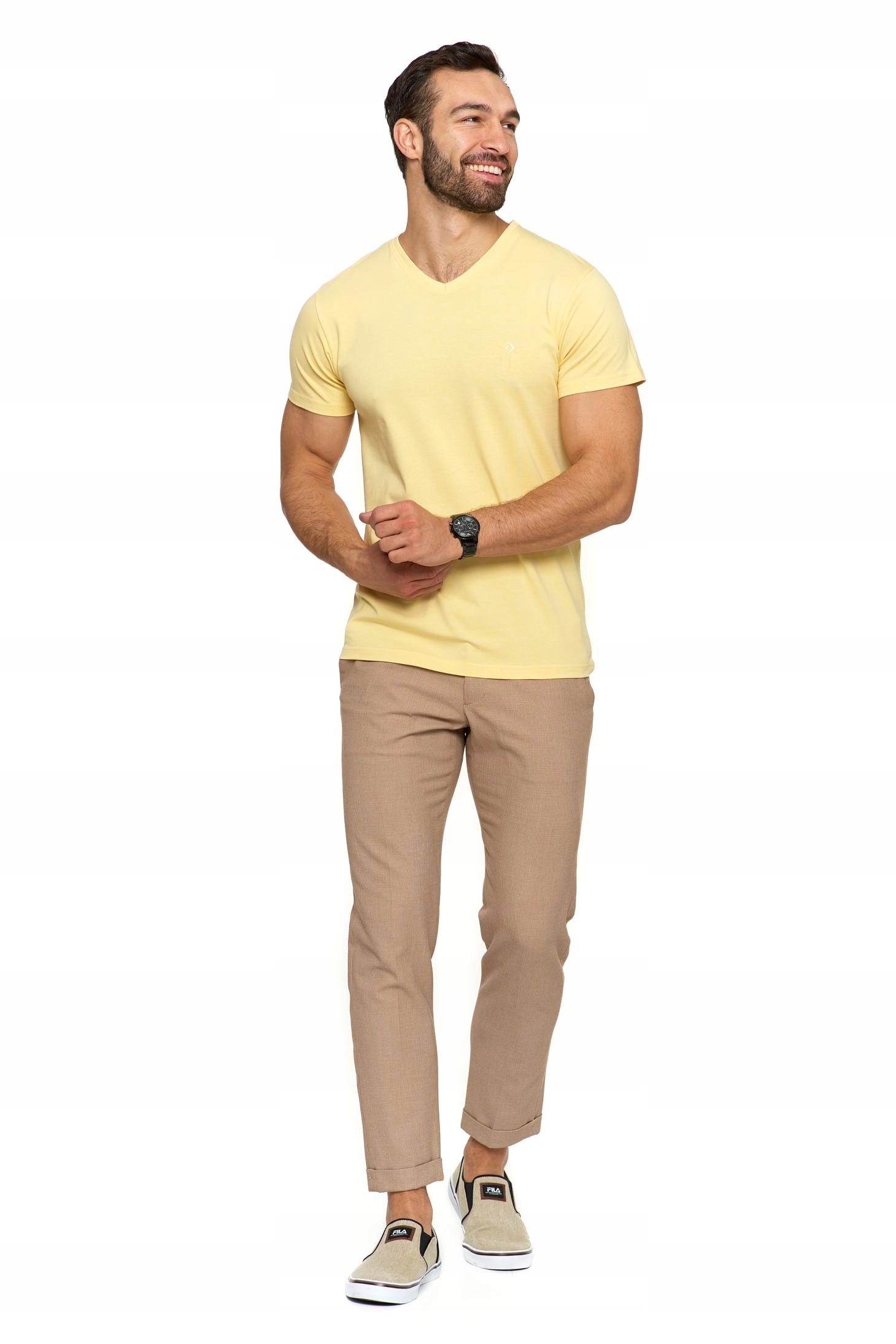 Przy szyi wszyte zostały taśmy mocujące, które są jednocześnie ozdobą i zwiększają żywotność T-shirtu. Model posiada dekolt w kształcie litery ,,V''.