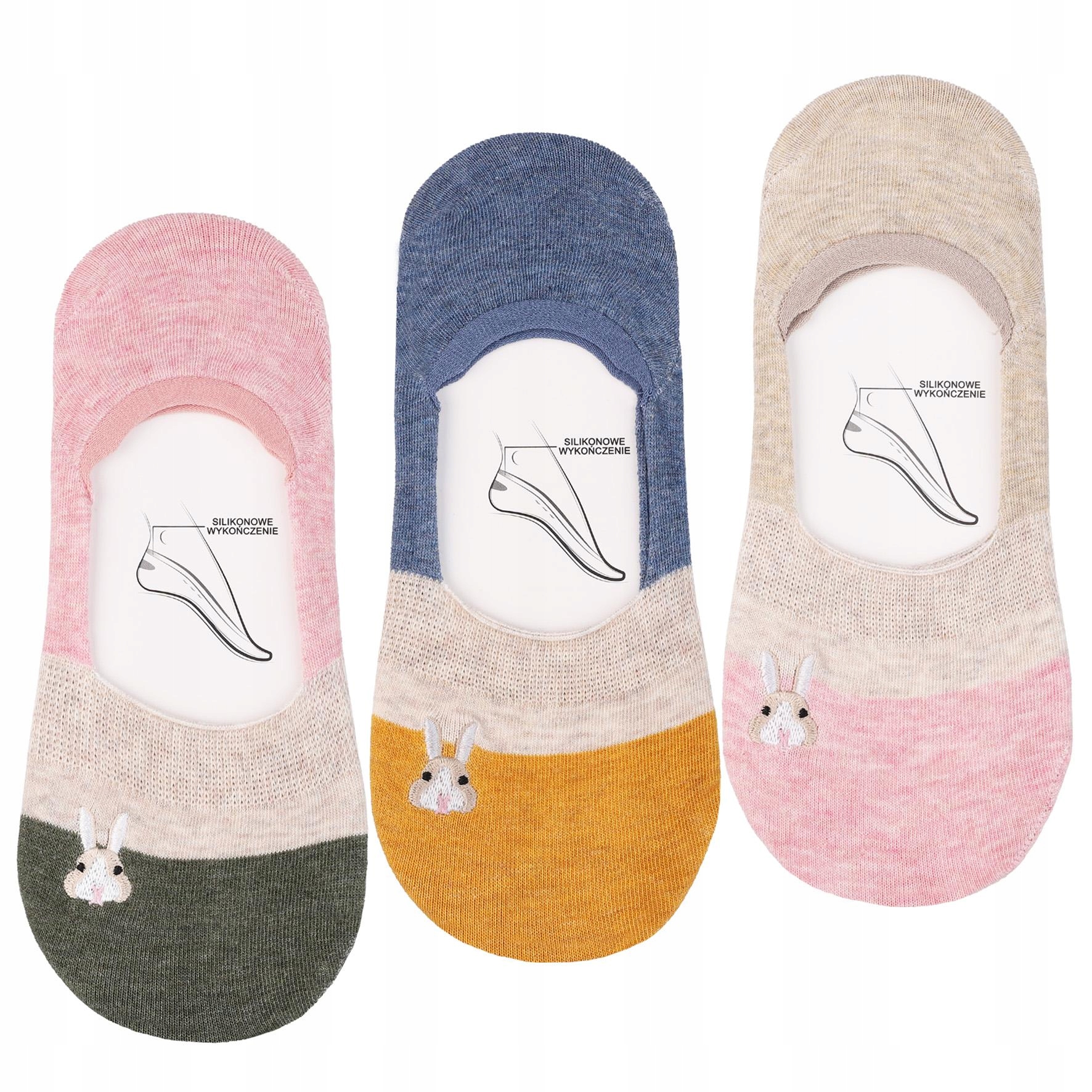 NISKIE STOPKI Damskie Skarpetki Balerinki HAFT Króliczki MORAJ 3-PAK