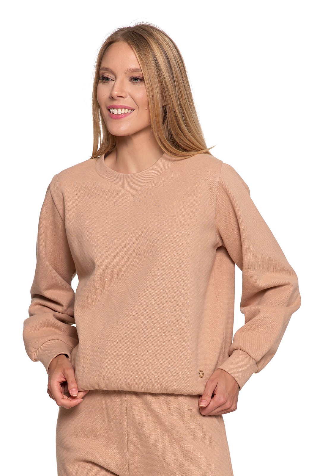 Ta damska bluza to propozycja dla kobiet, które cenią prostotę, wygodę i naturalne materiały. Uszyta w 100% z miękkiej bawełny, zapewnia komfort noszenia i przewiewność, a dzięki ocieplającemu meszkowi od wewnątrz sprawdzi się również w chłodniejsze dni.