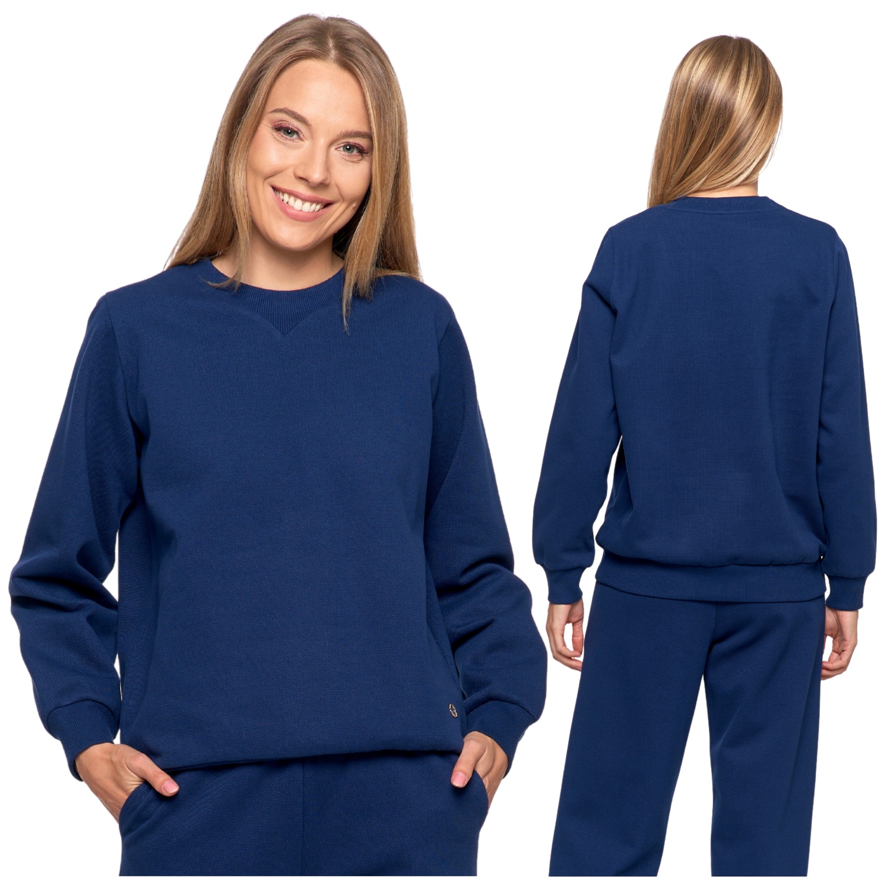Ta damska bluza to propozycja dla kobiet, które cenią prostotę, wygodę i naturalne materiały. Uszyta w 100% z miękkiej bawełny, zapewnia komfort noszenia i przewiewność, a dzięki ocieplającemu meszkowi od wewnątrz sprawdzi się również w chłodniejsze dni.