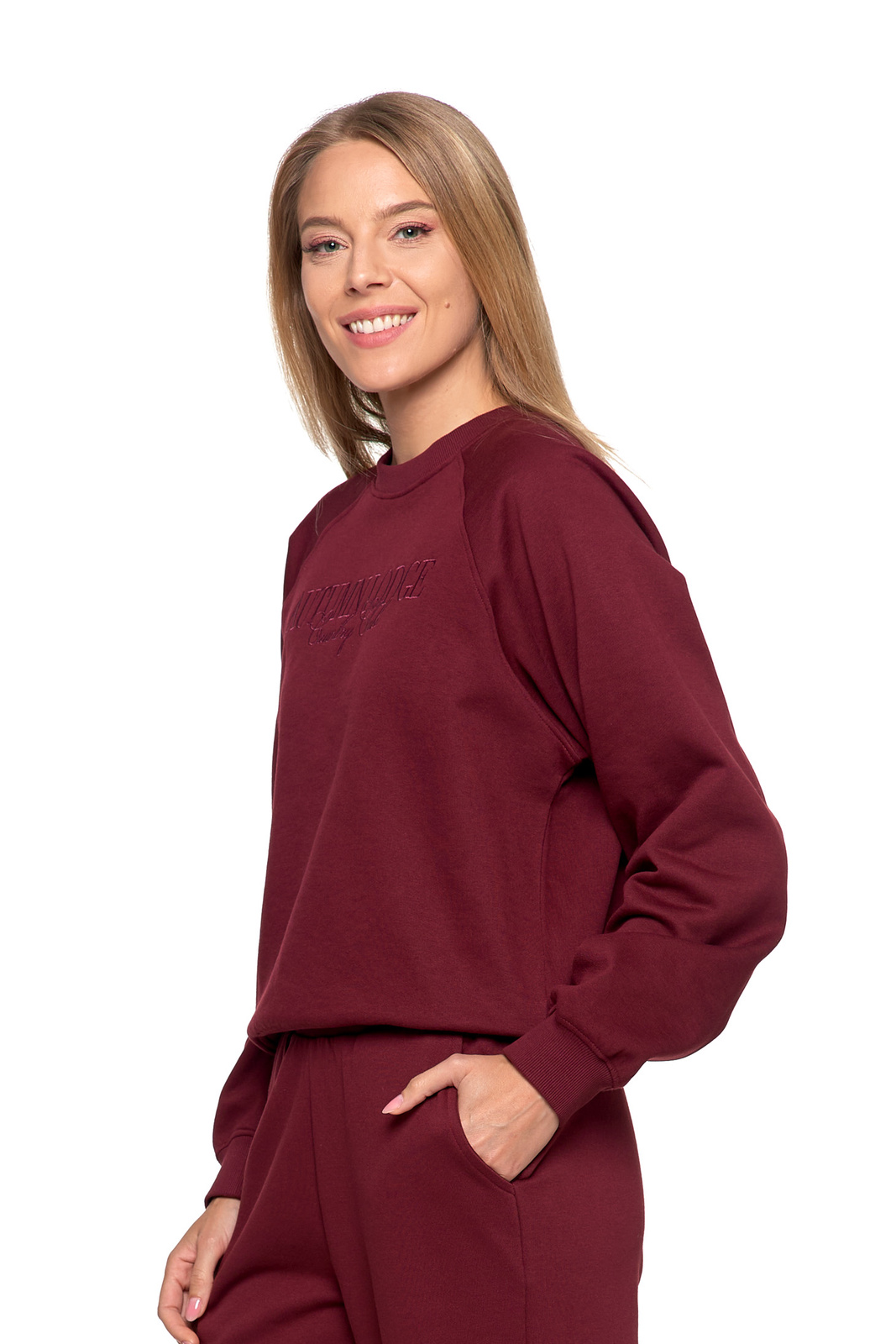 Detale: Subtelny haftowany napis w kolorze bluzy nadaje jej elegancji i charakteru. Elastyczne ściągacze przy długich rękawach i u dołu dbają o idealne układanie się na sylwetce.