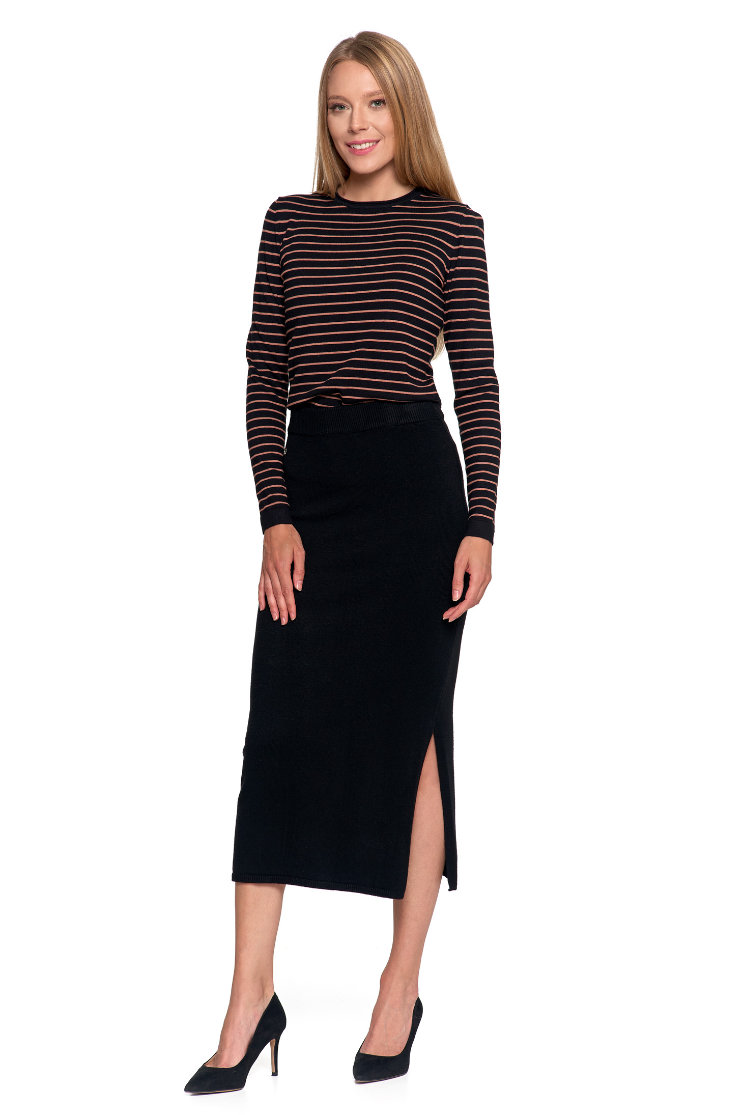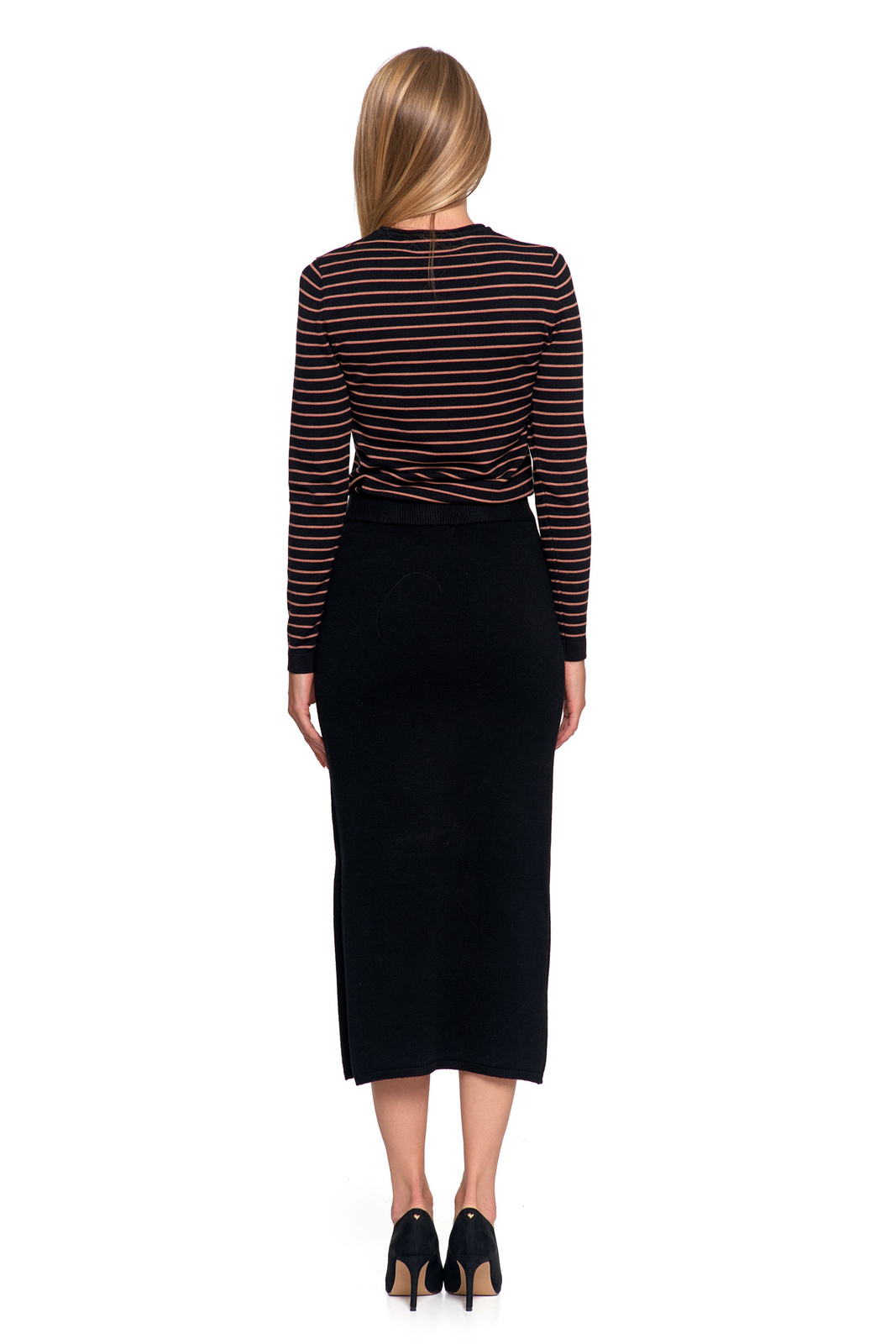 OŁÓWKOWA SPÓDNICA DAMSKA MIDI Z ROZCIĘCIEM PRĄŻKOWANA DRESOWA MORAJ