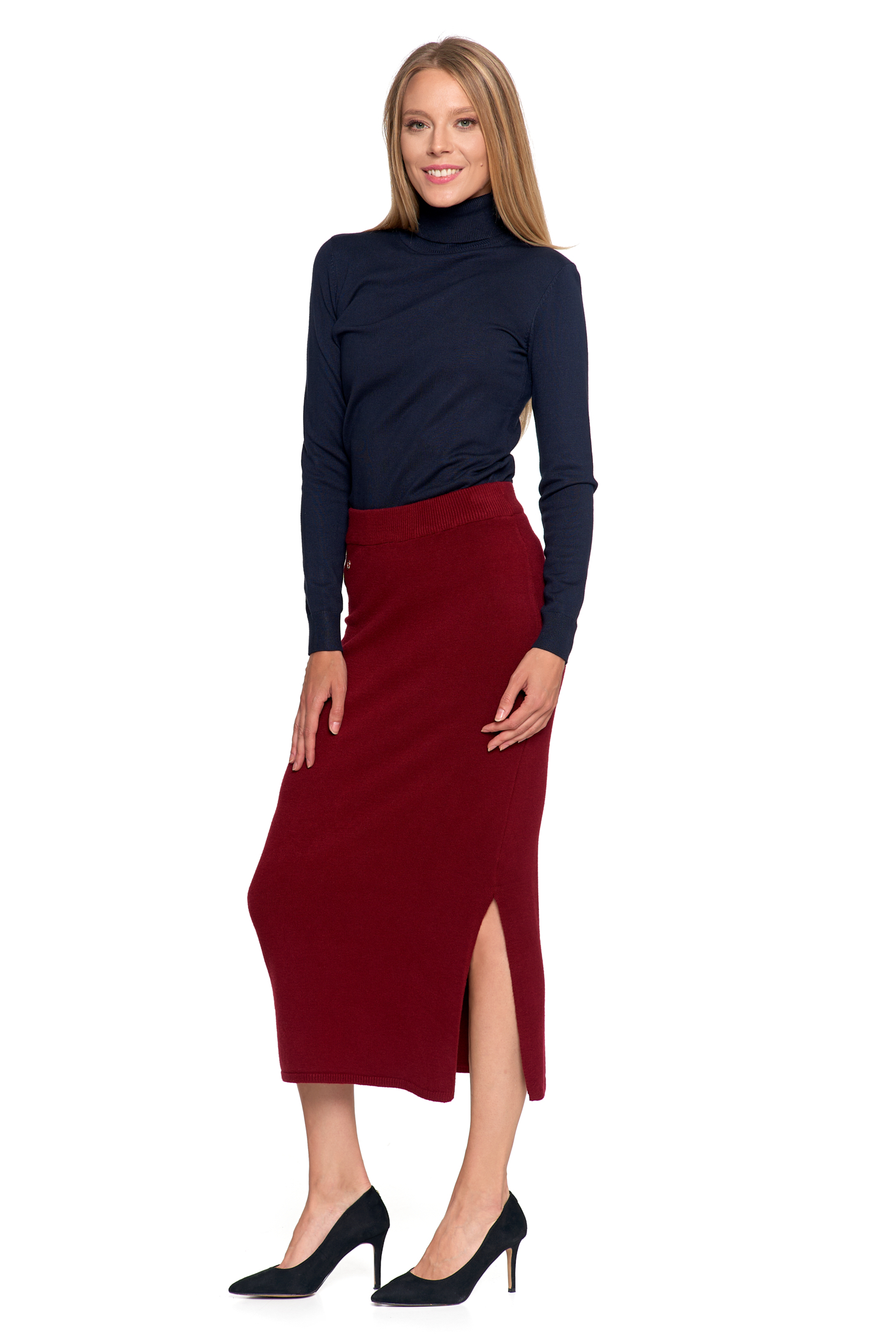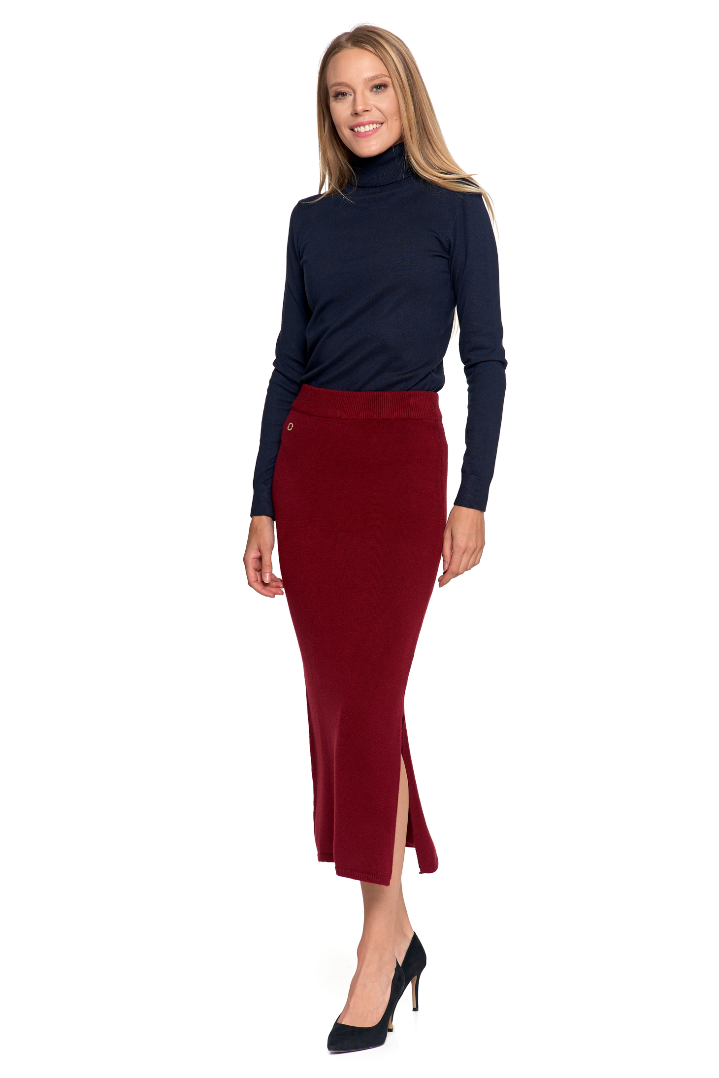 • Elegancki krój: Klasyczna długość midi z subtelnym rozcięciem po boku dodaje kobiecego charakteru.