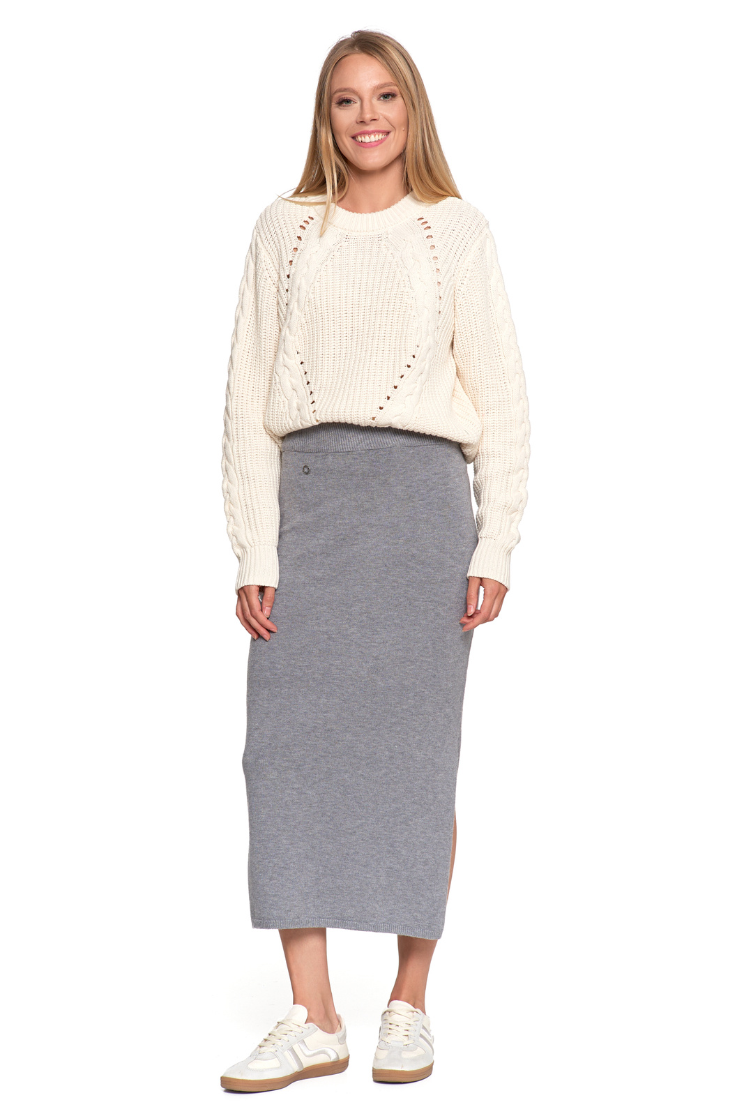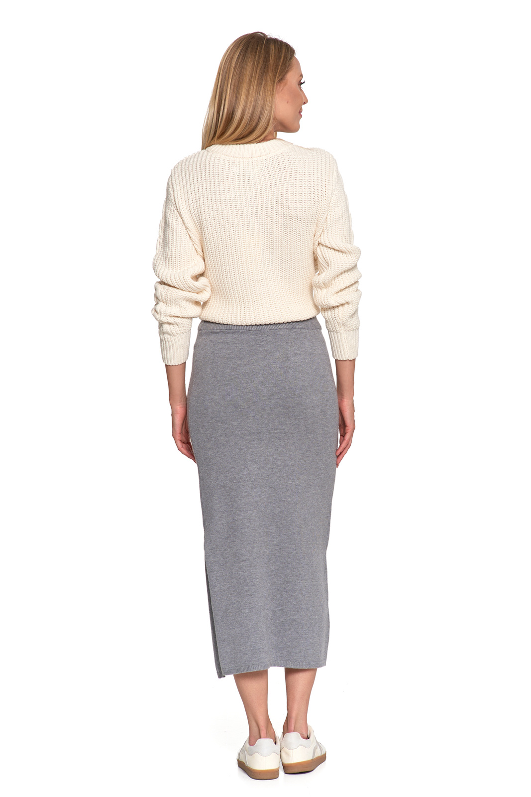 Ta spódnica swetrowa to idealne połączenie klasycznego stylu i codziennej wygody. Wykonana z miękkiej i elastycznej wiskozy, doskonale dopasowuje się do sylwetki, zapewniając komfort przez cały dzień.