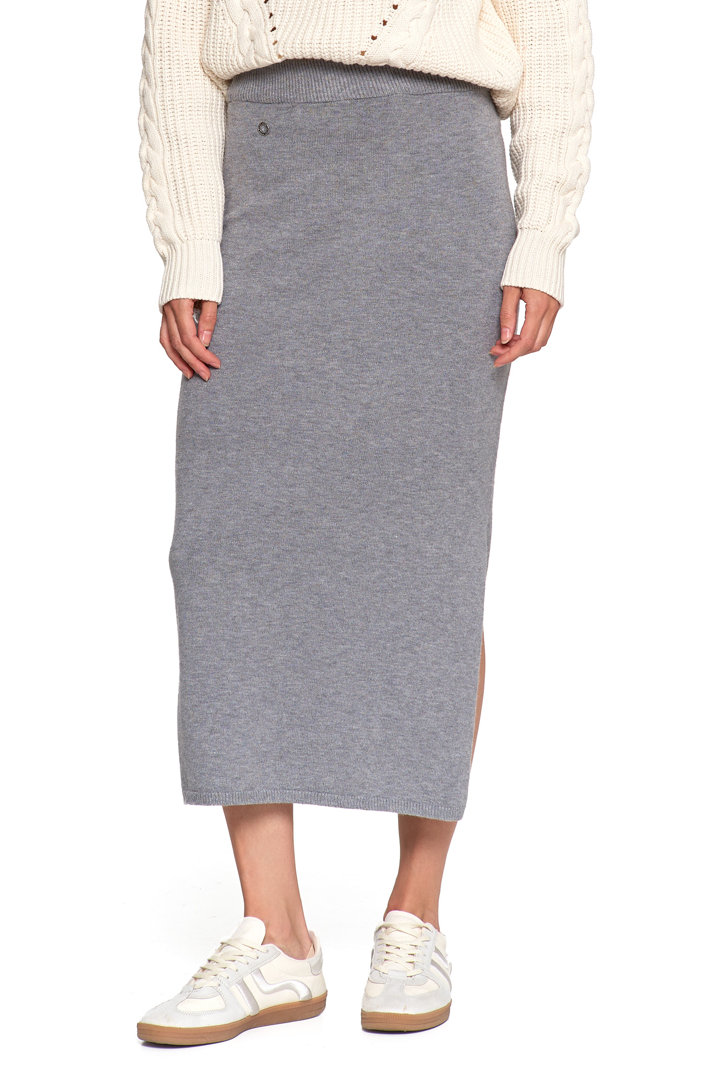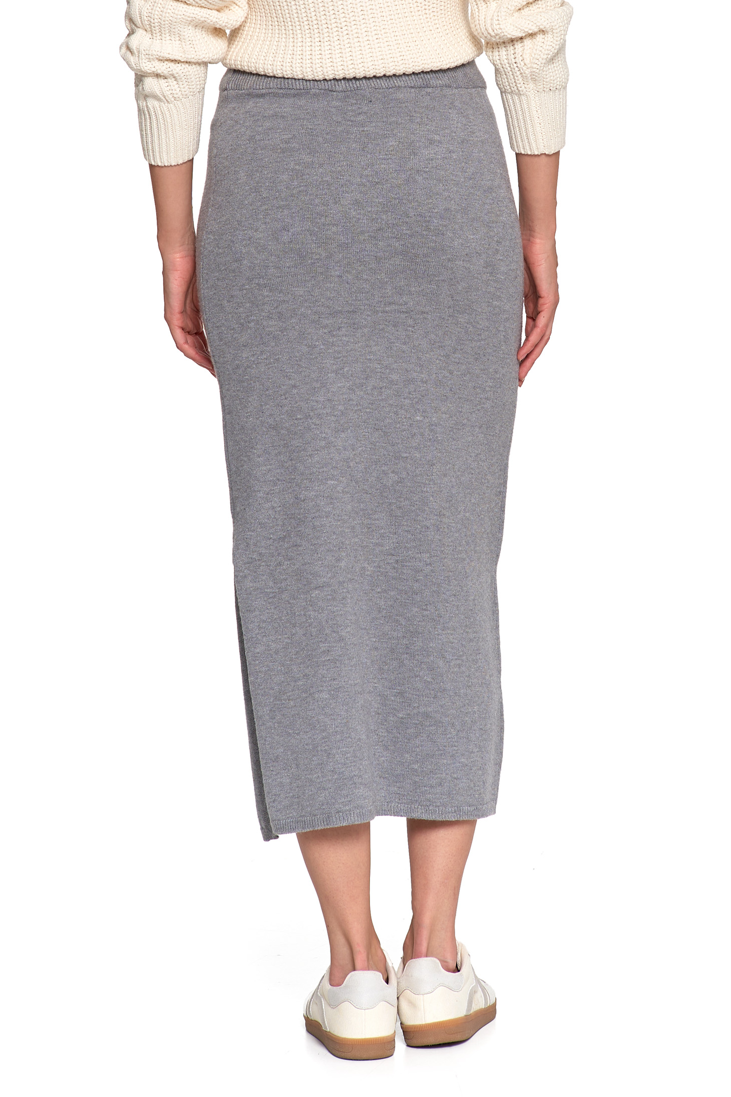 OŁÓWKOWA SPÓDNICA DAMSKA MIDI Z ROZCIĘCIEM PRĄŻKOWANA MORAJ