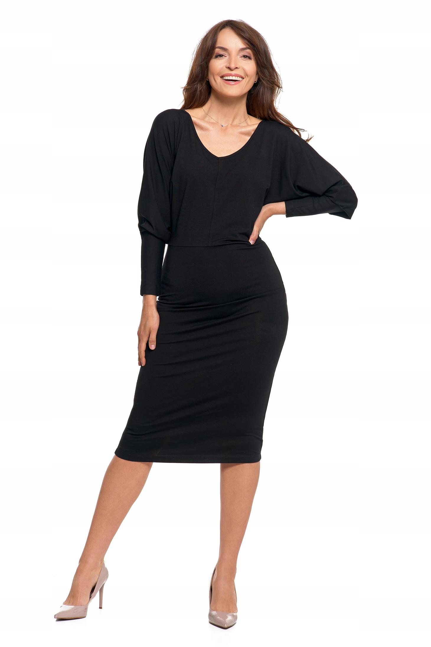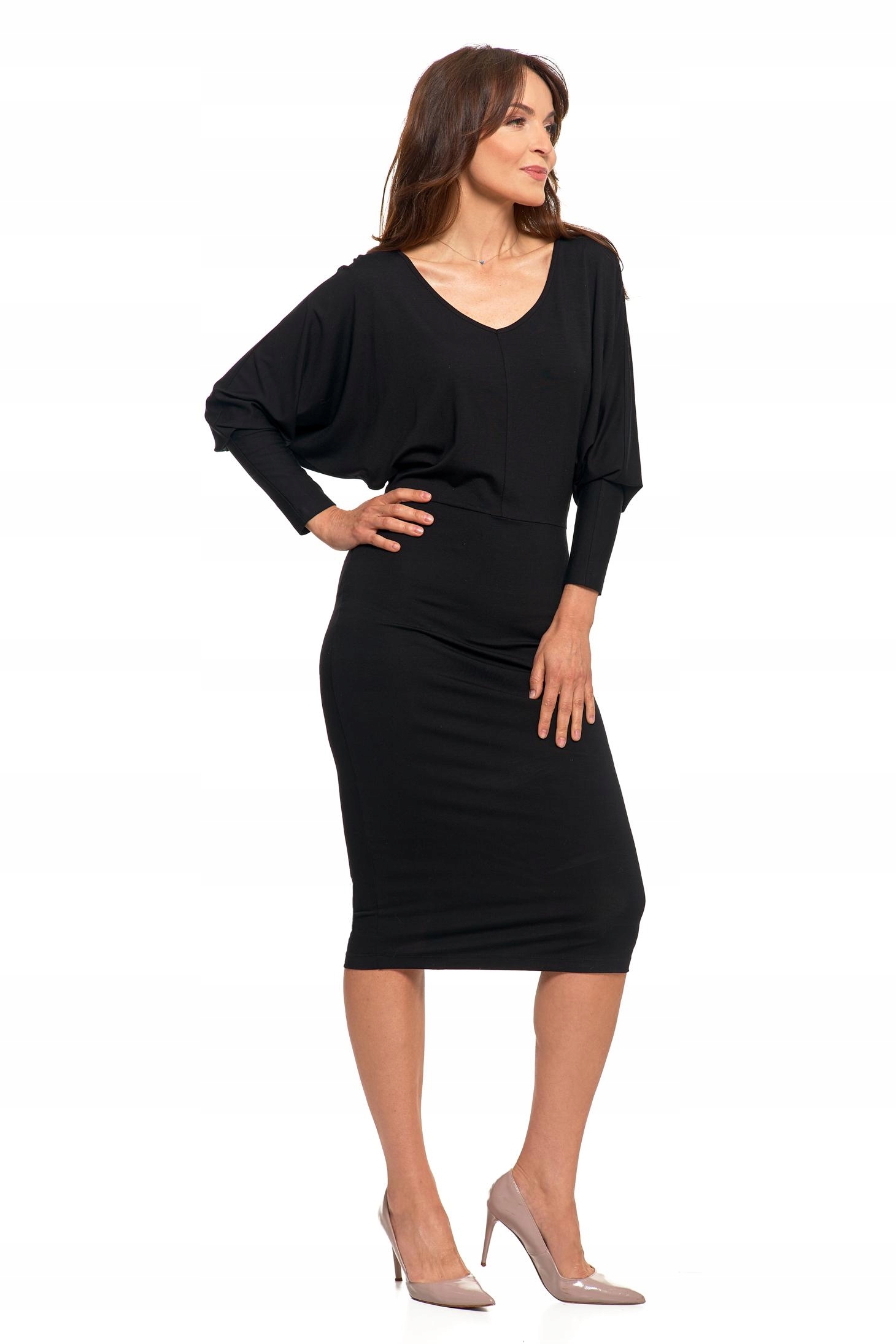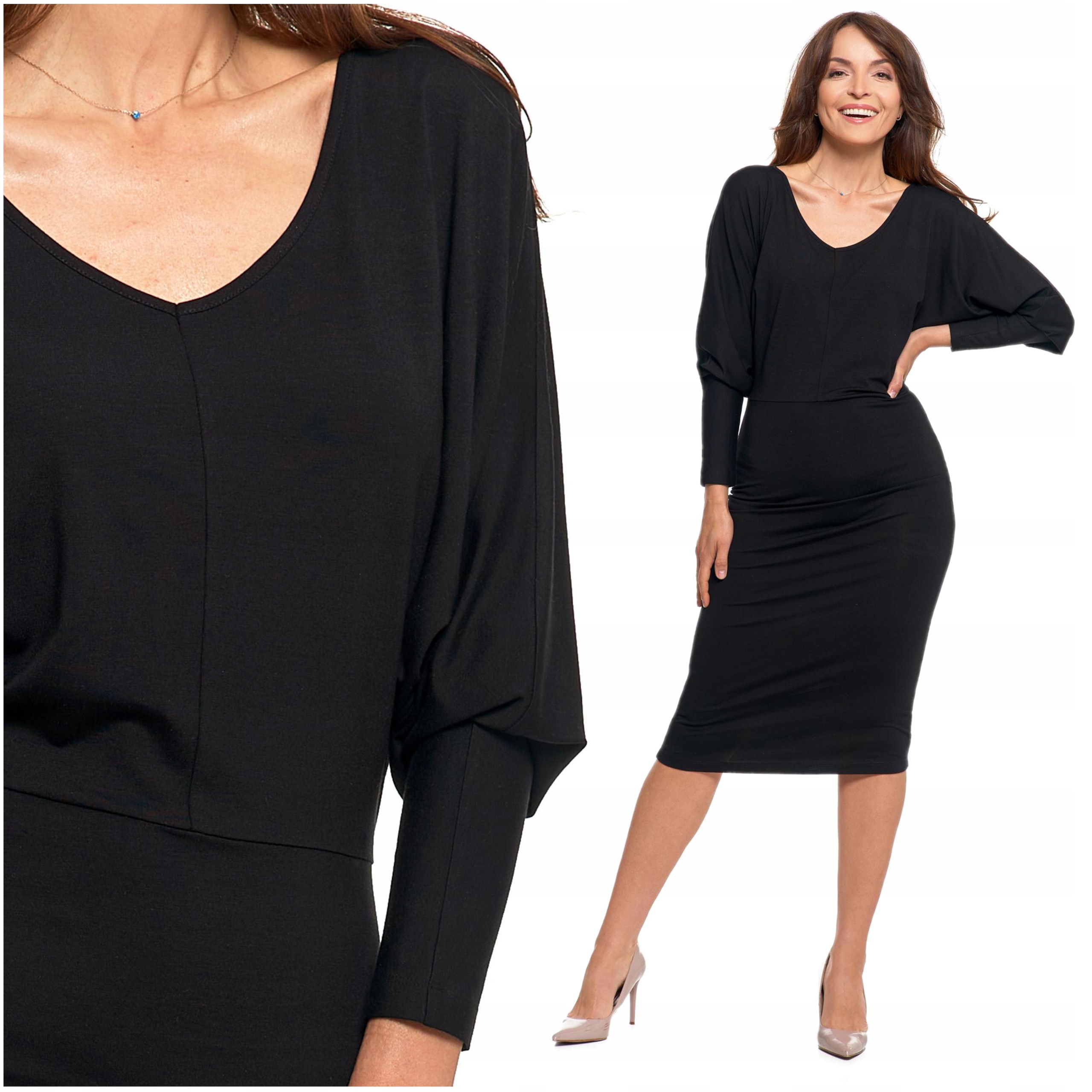 Ołówkowa SUKIENKA Damska Czarna Midi Dopasowana Elegancka Wiskoza MORAJ