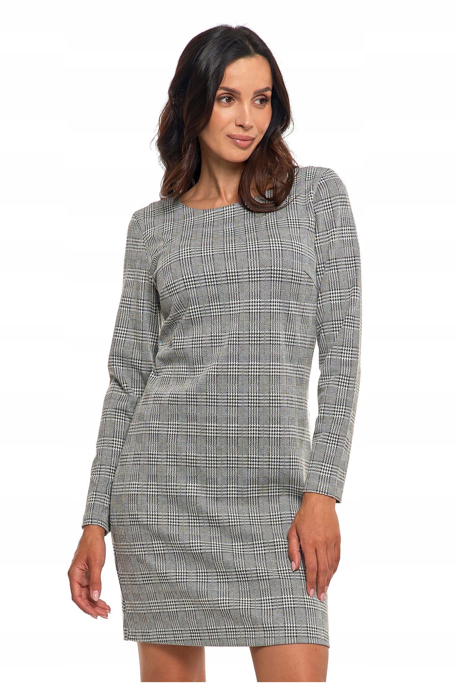 Ołówkowa SUKIENKA Damska Długi Rękaw Wzorzysta Do Kolan na Jesień MORAJ