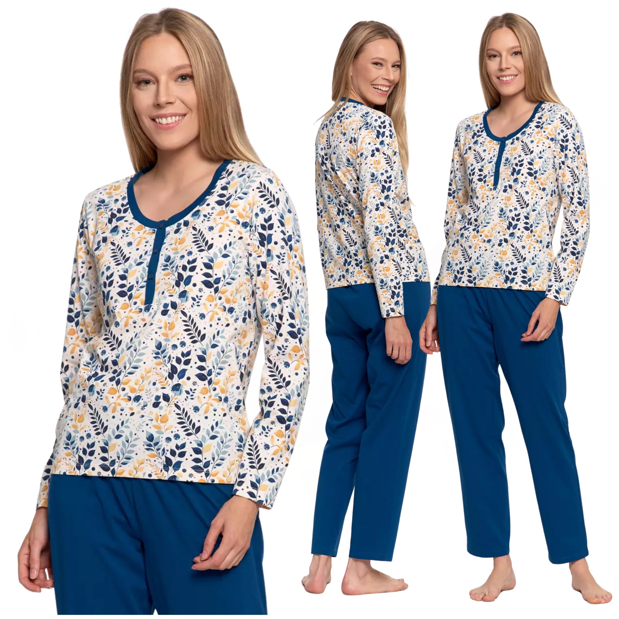 PIŻAMA DAMSKA BAWEŁNIANA DWUCZĘŚCIOWA DŁUGI RĘKAW DŁUGIE SPODNIE MORAJ