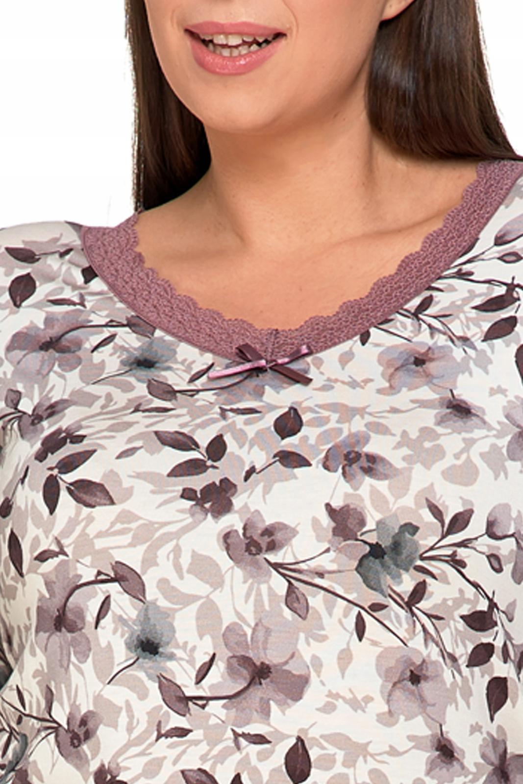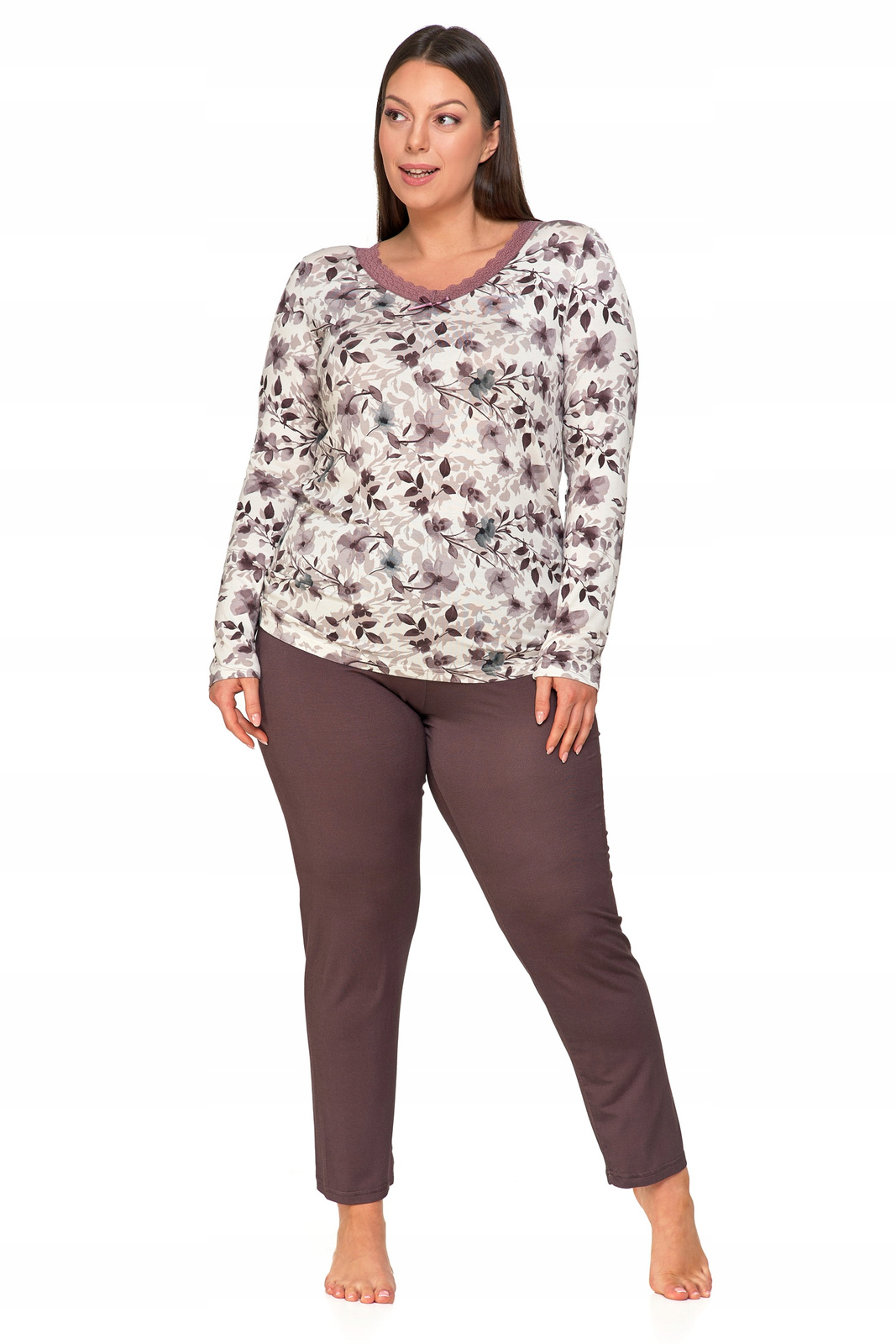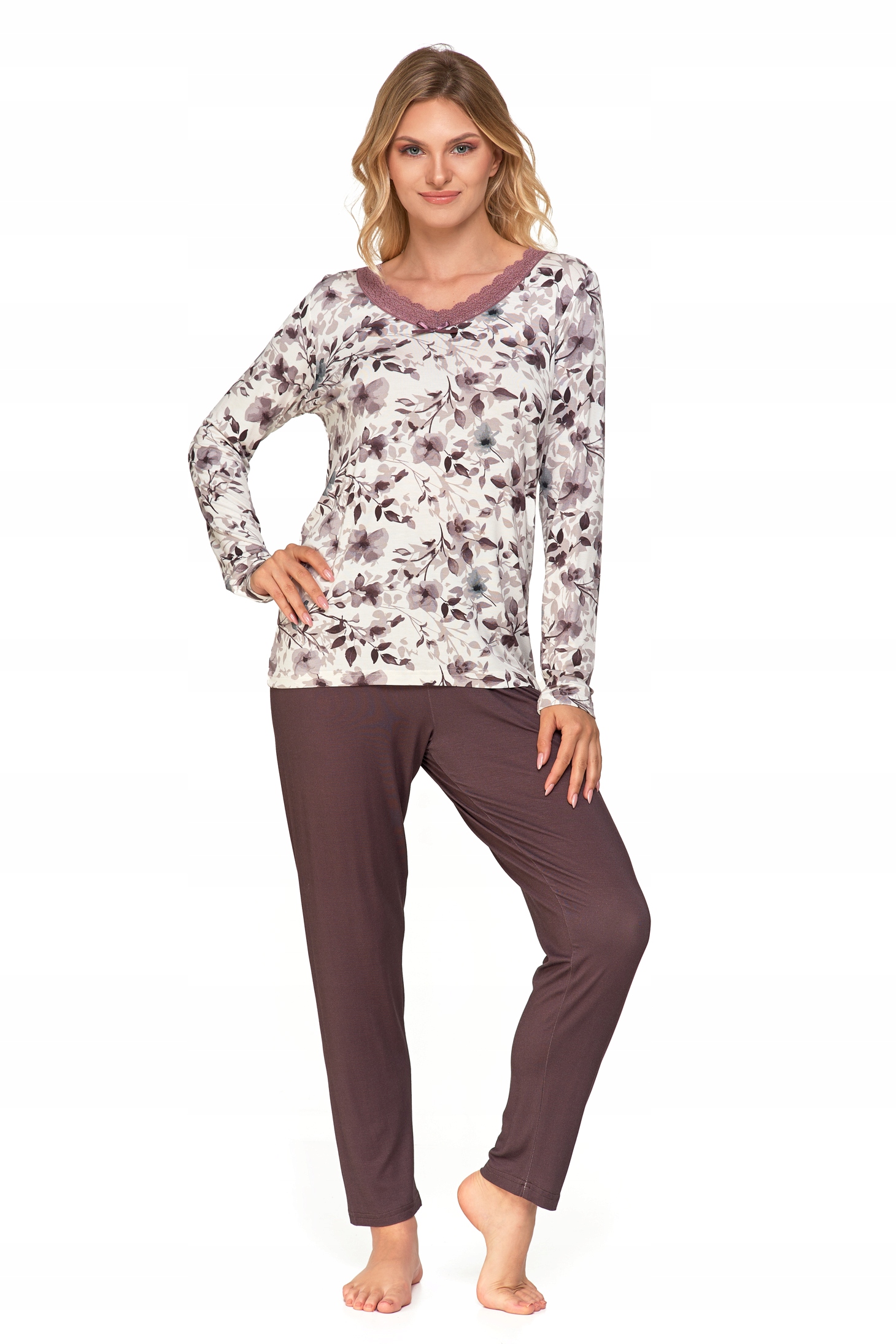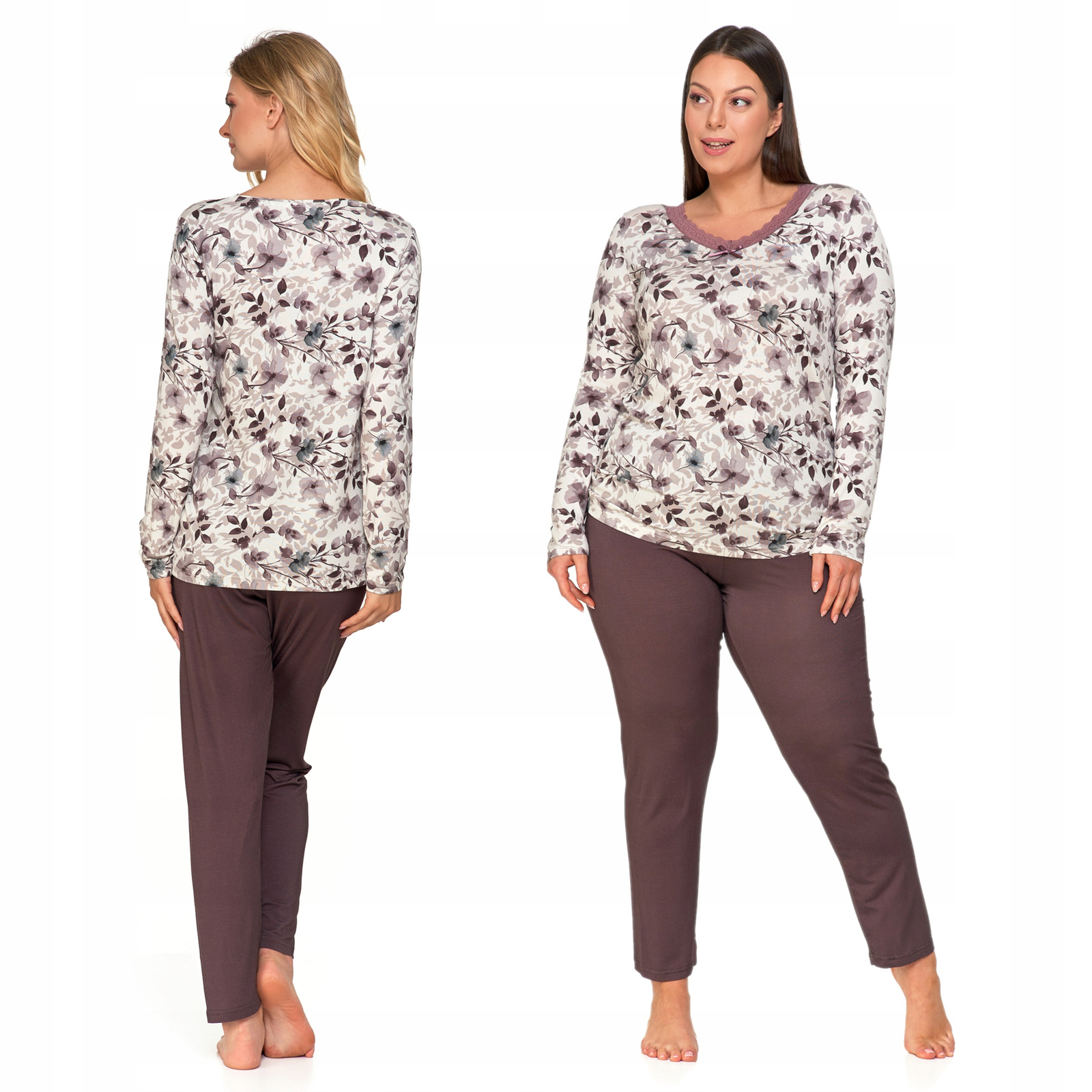 Piżama Damska Delikatna Koronka Kwiaty Wiskoza Długi Rękaw Spodnie MORAJ