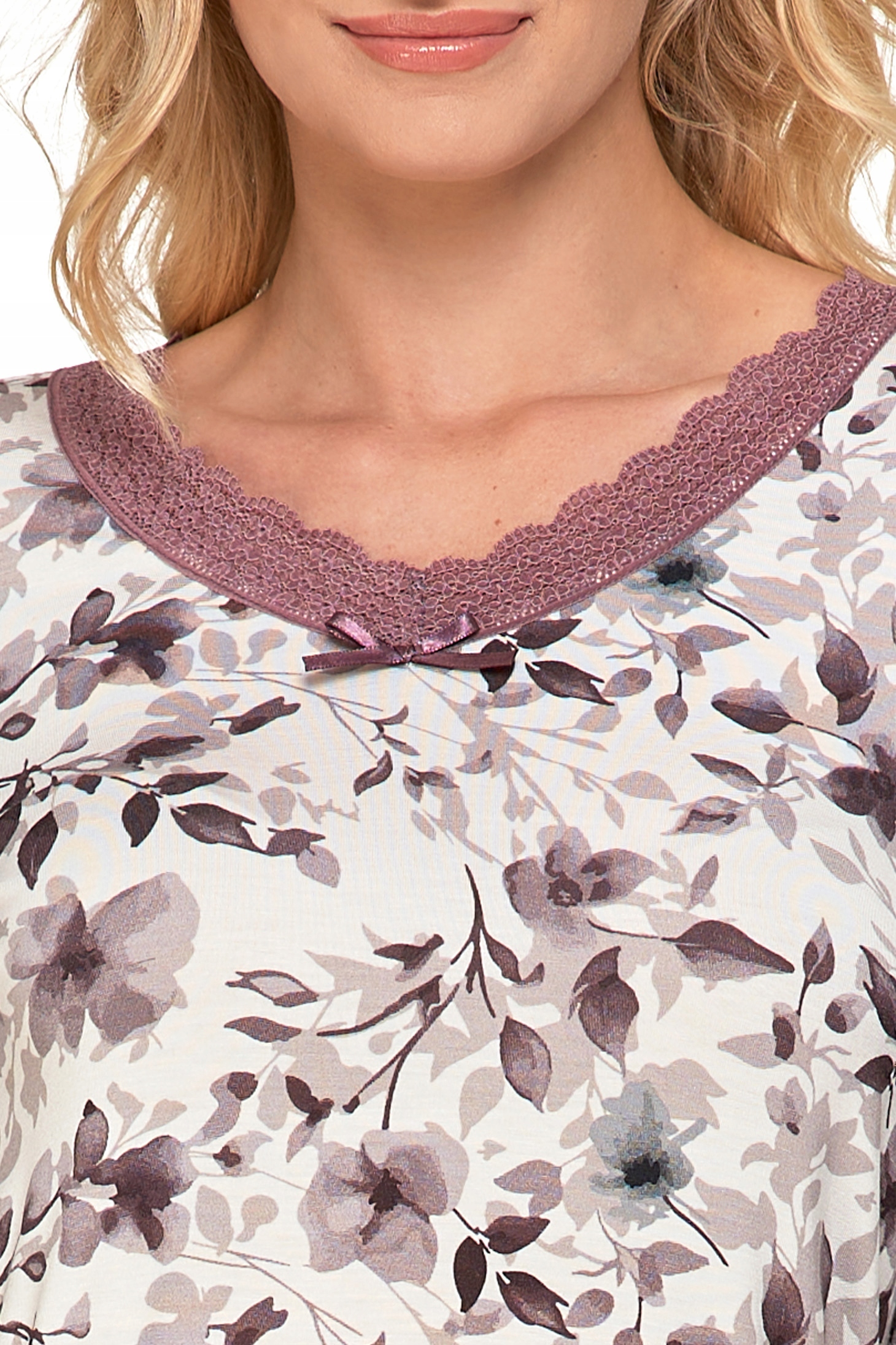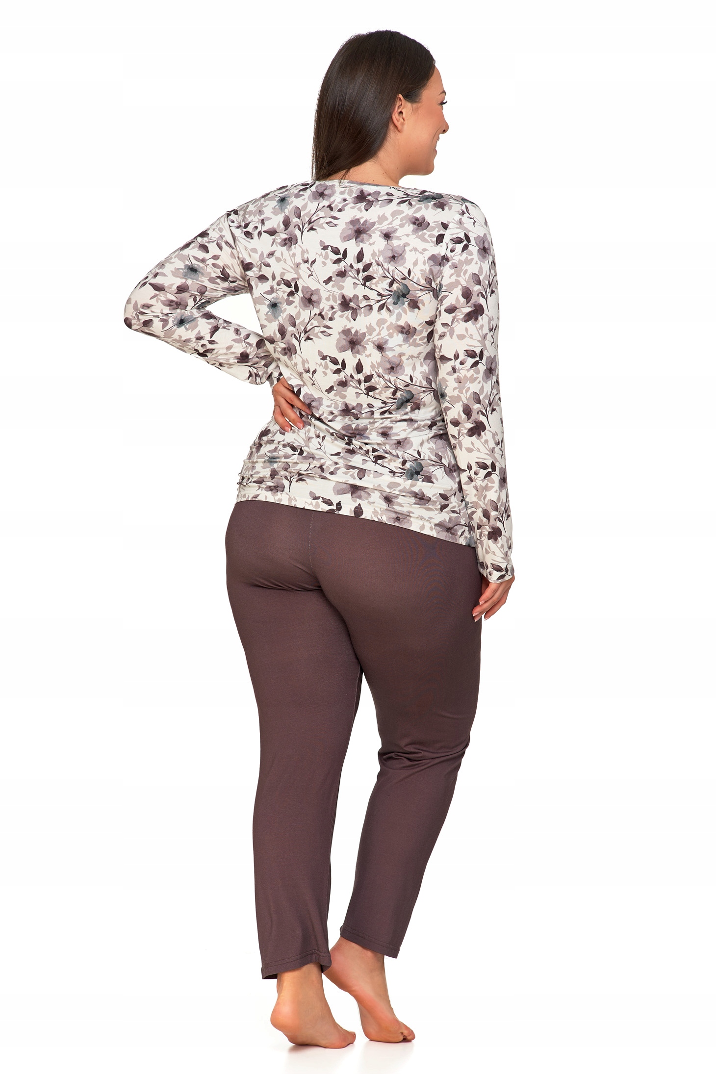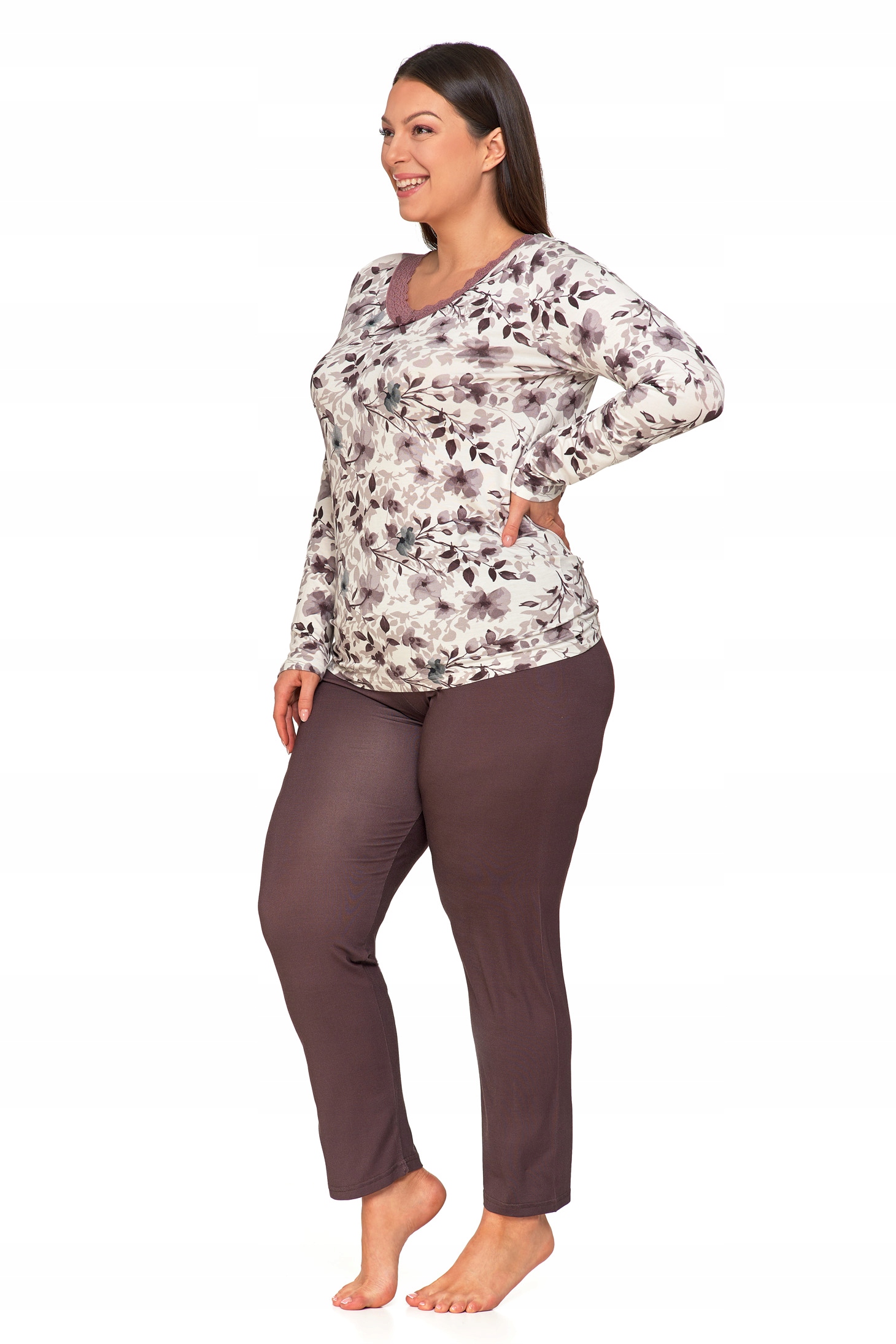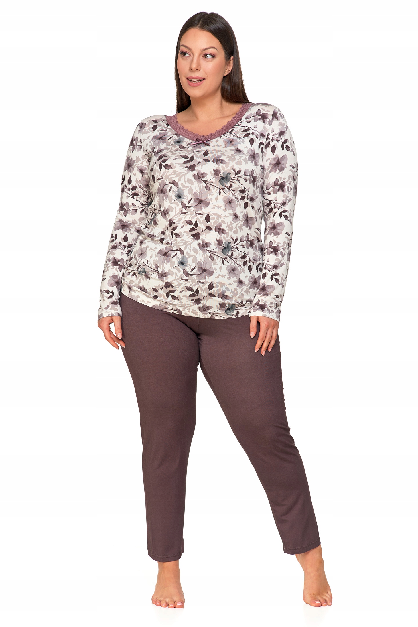 Piżama Damska Delikatna Koronka Kwiaty Wiskoza Długi Rękaw Spodnie MORAJ