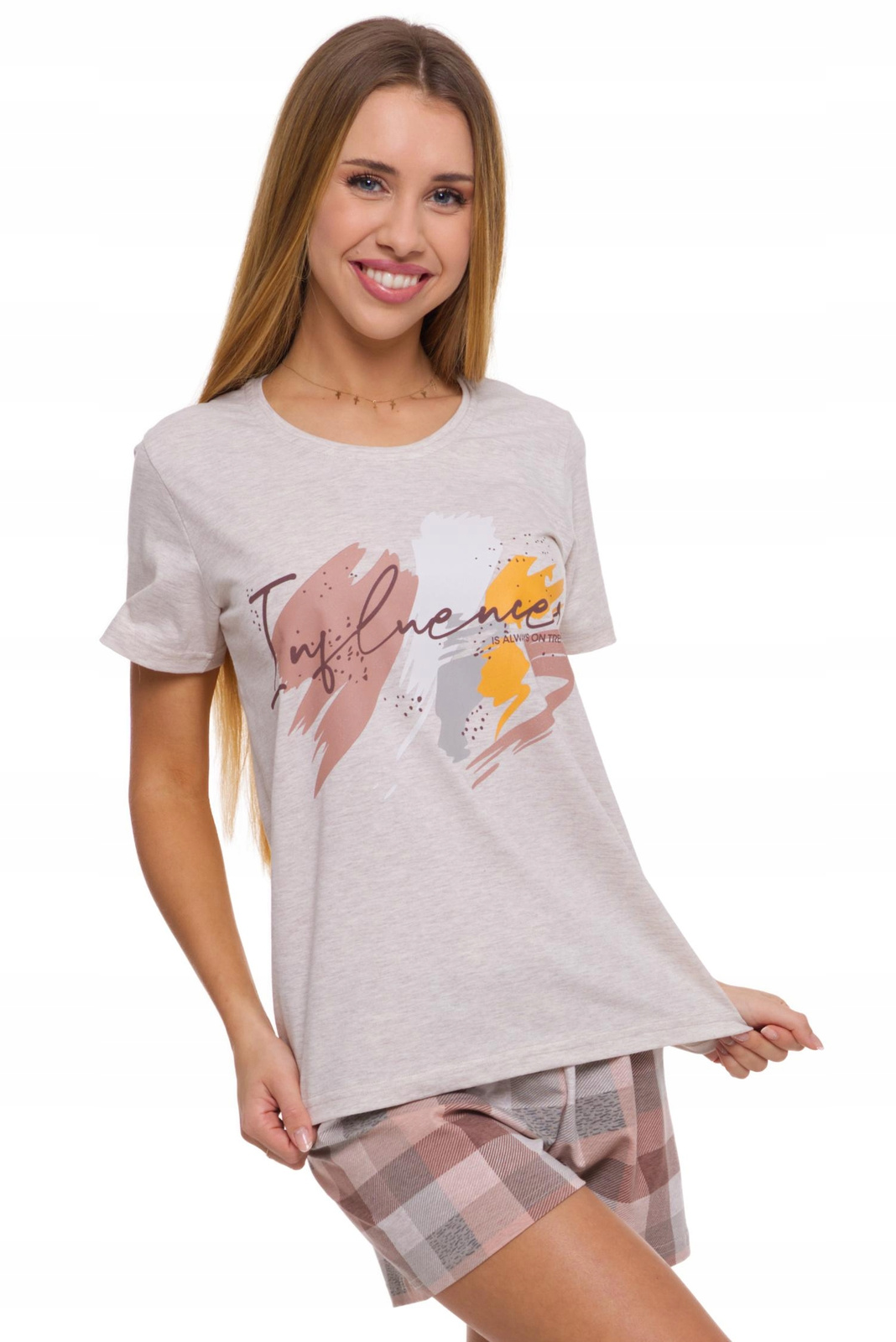 Piżama damska dwuczęściowa z krótkim rękawem beżowa ze szortami w kratkę to propozycja dla kobiet, które cenią sobie wygodę i swobodę ruchów w czasie snu.