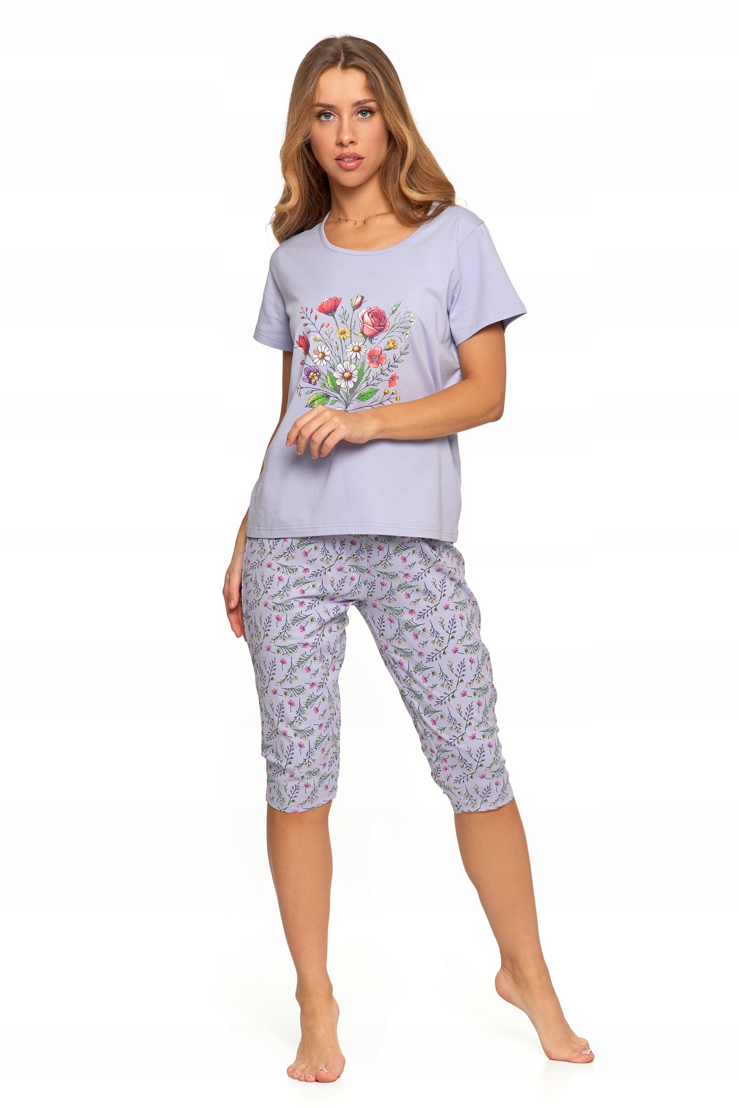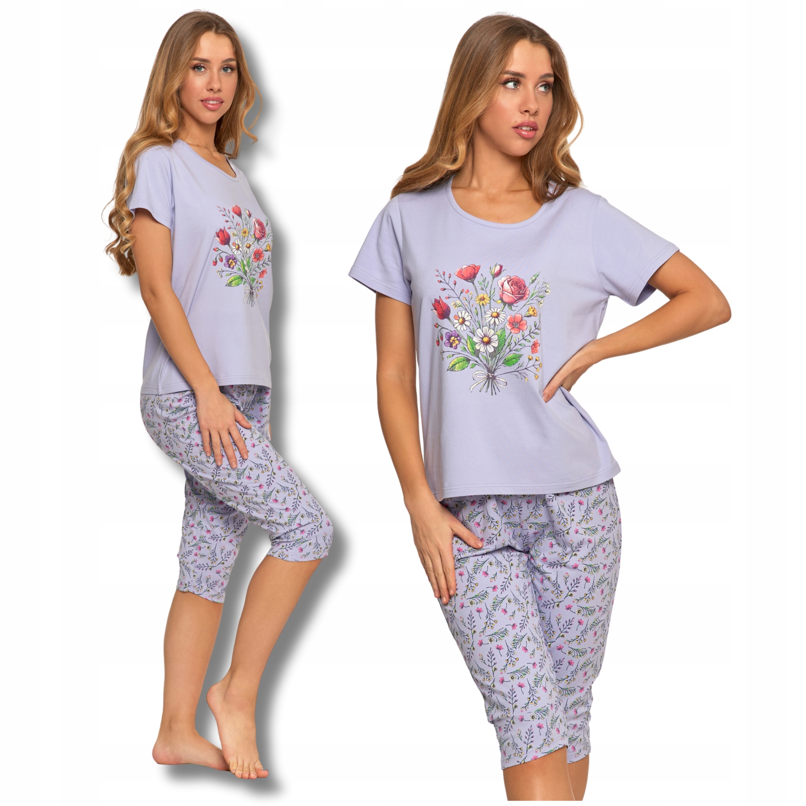 PIŻAMA DAMSKA DWUCZĘŚCIOWA MORAJ KRÓTKI RĘKAW SPODNIE 3/4 KWIATY