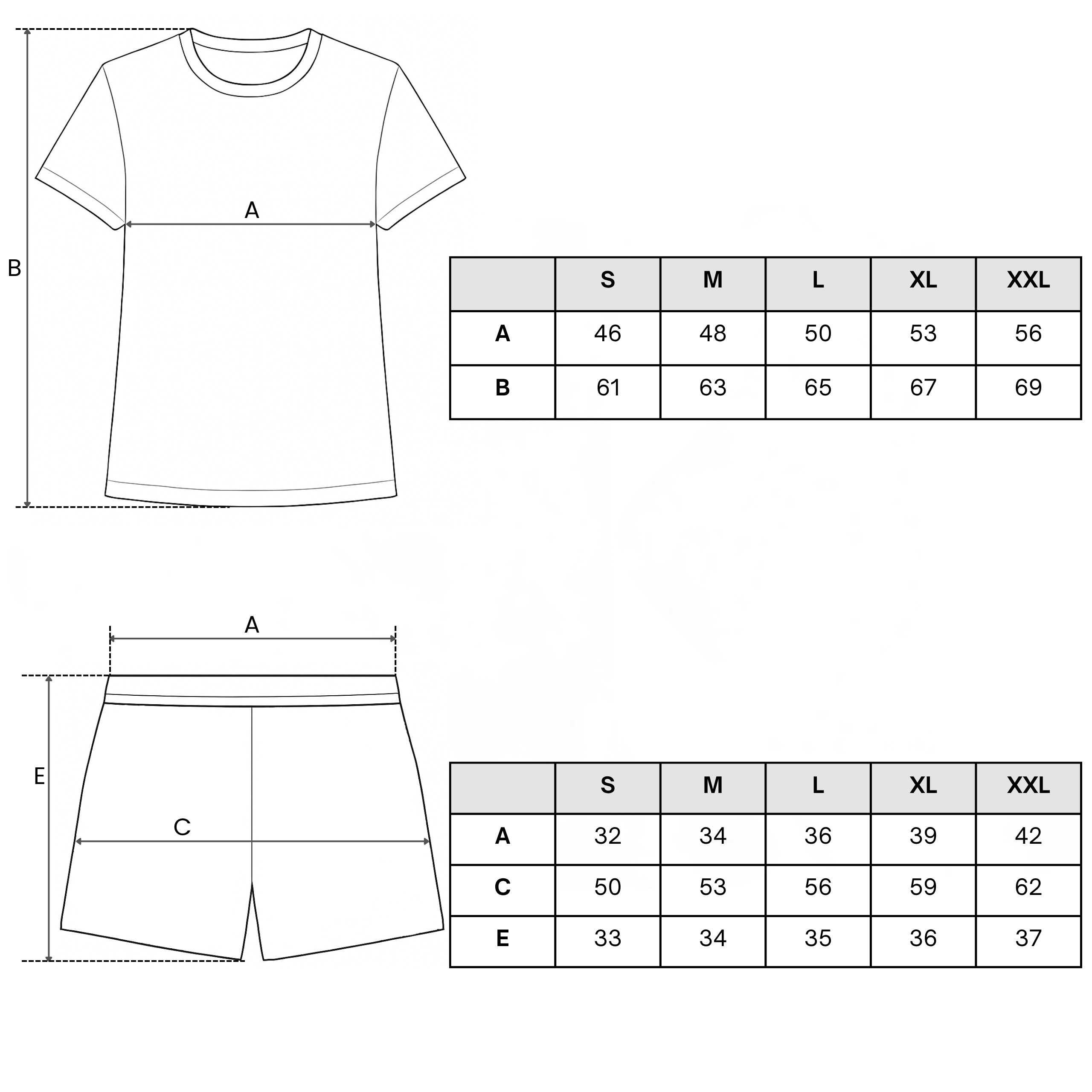 • Dół: Luźne spodenki z elastyczną gumką w pasie gwarantują idealne dopasowanie i pełen komfort noszenia.