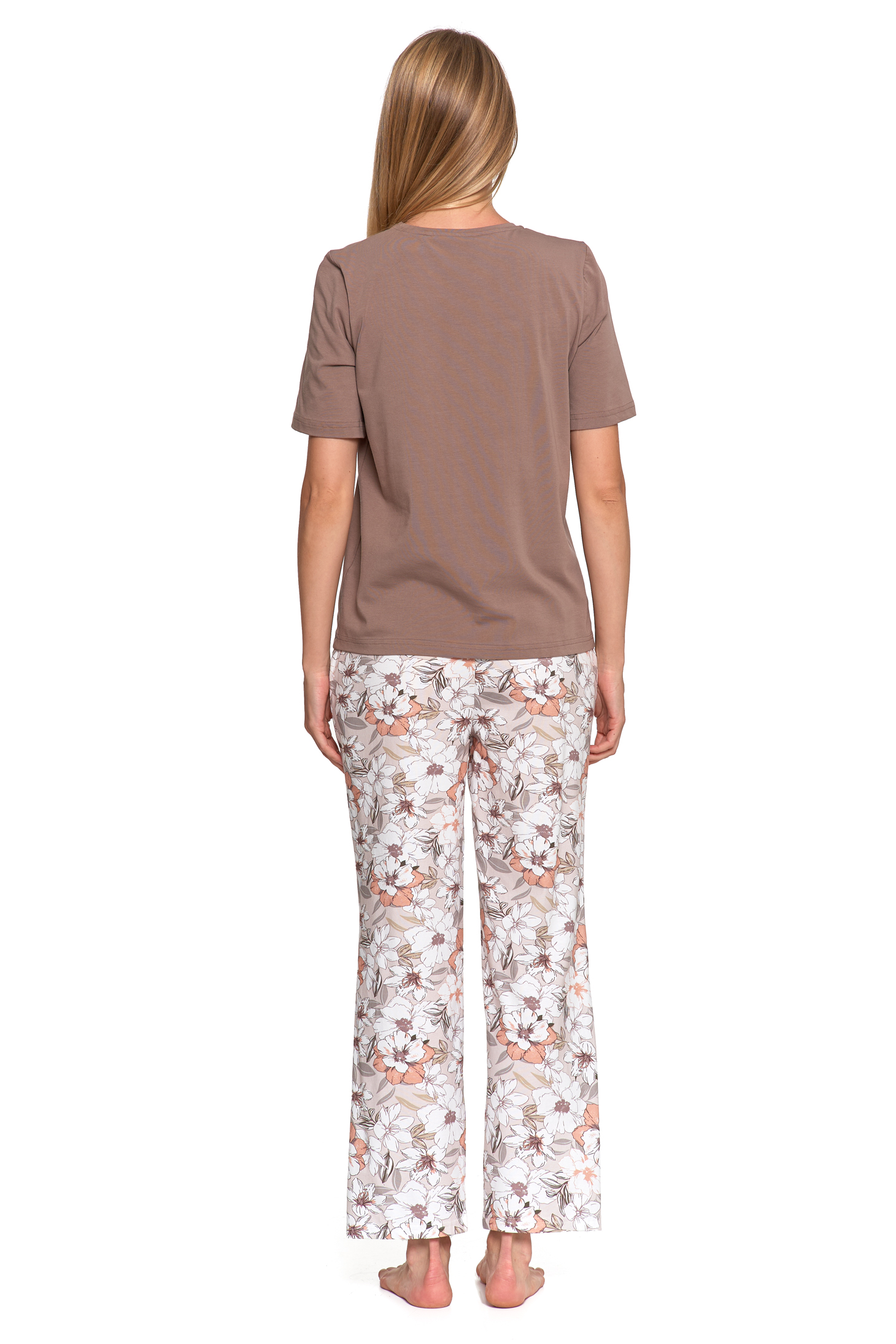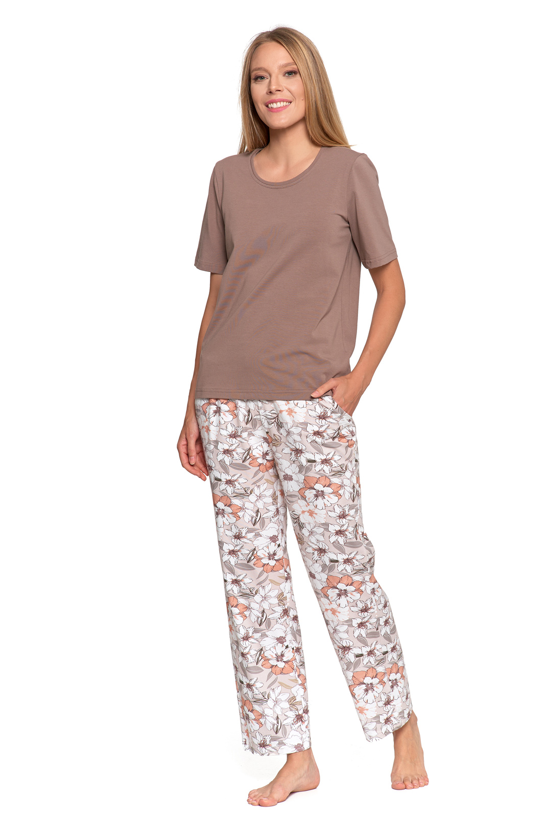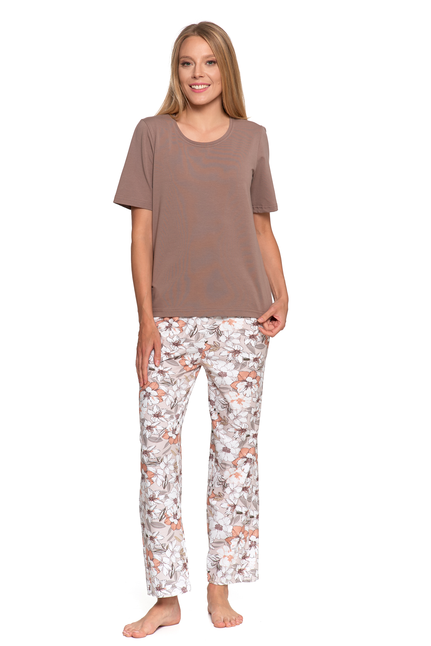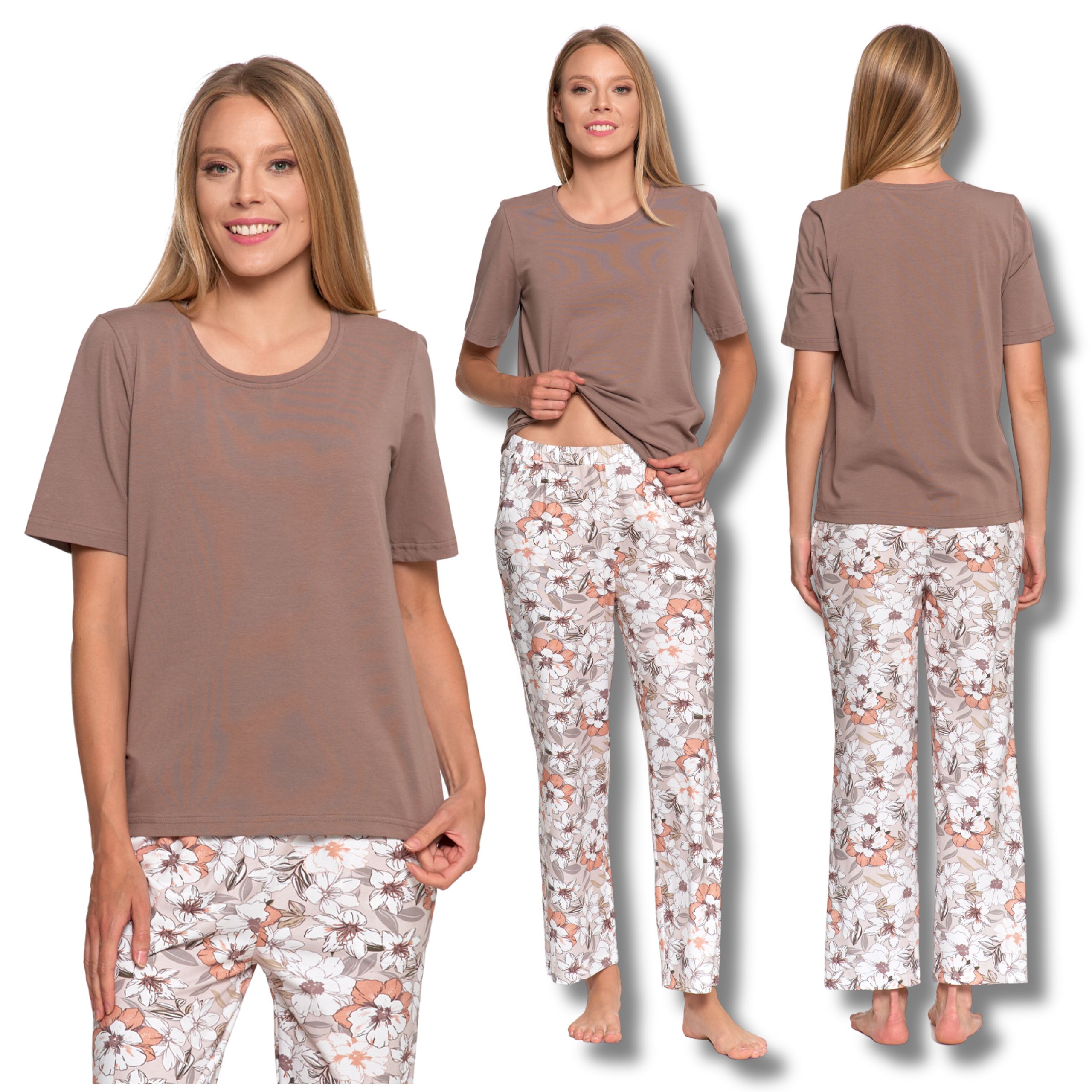 PIŻAMA DAMSKA DWUCZĘŚCIOWA MORAJ KRÓTKI RĘKAW SZEROKIE SPODNIE KWIATKI
