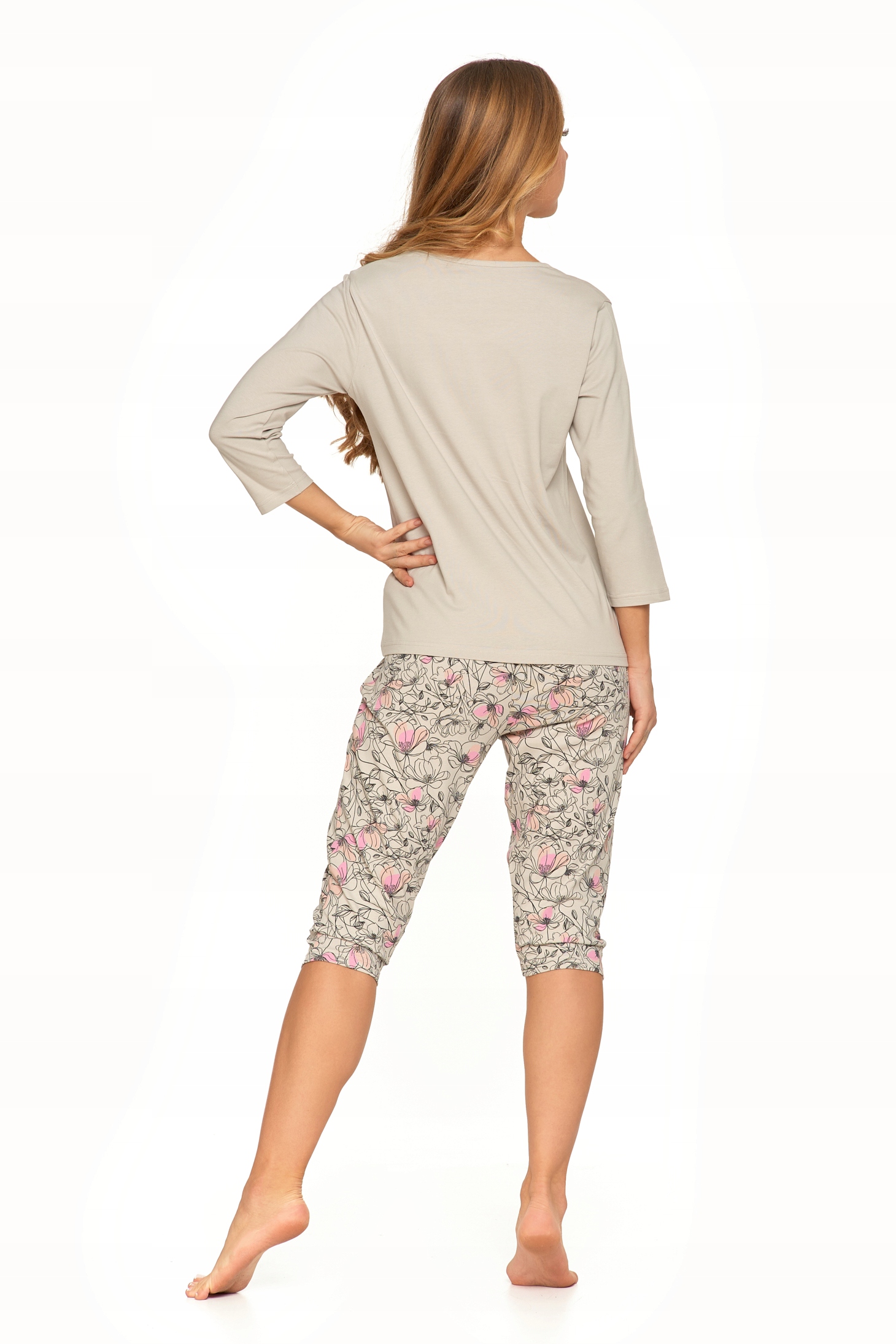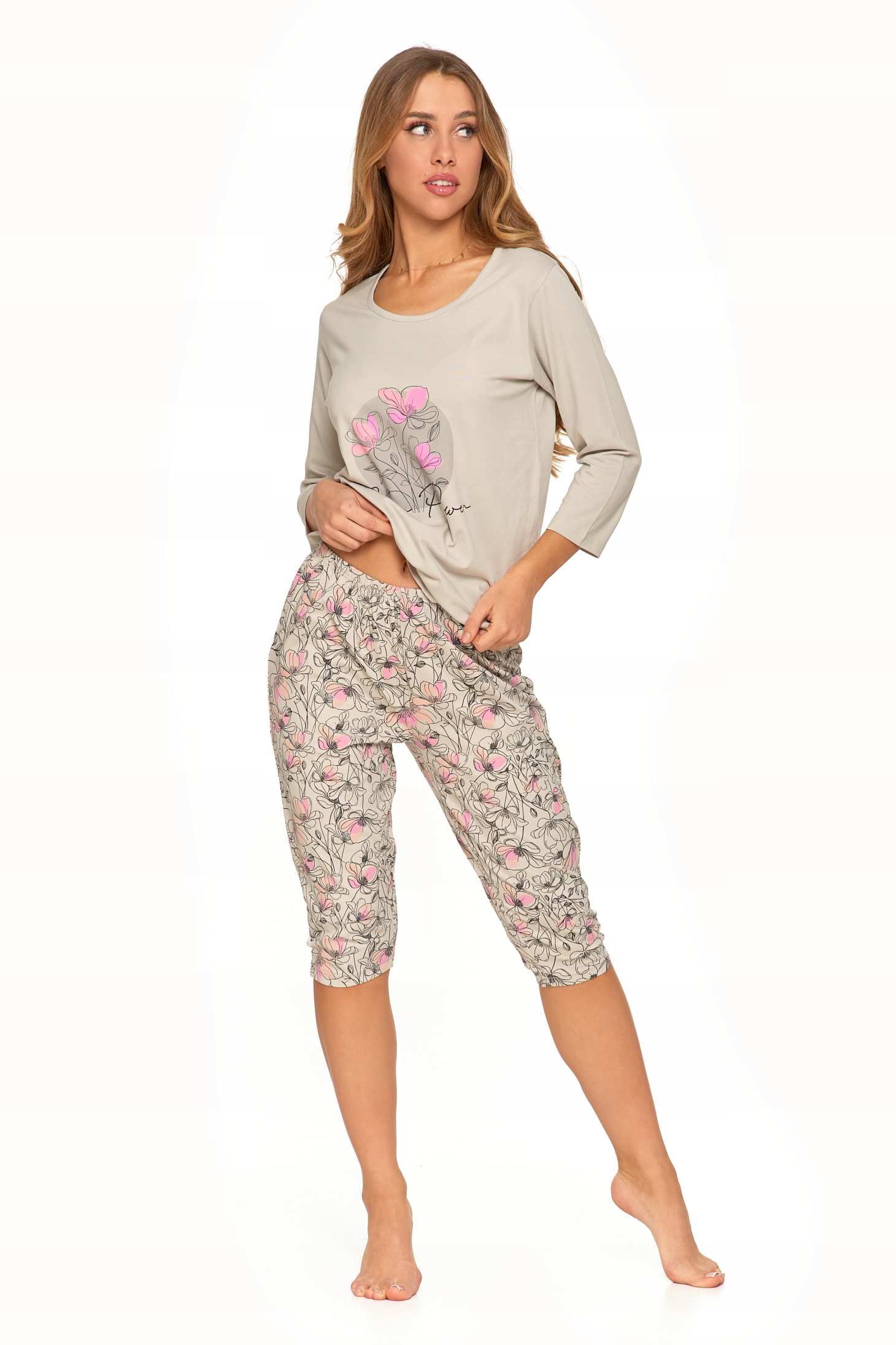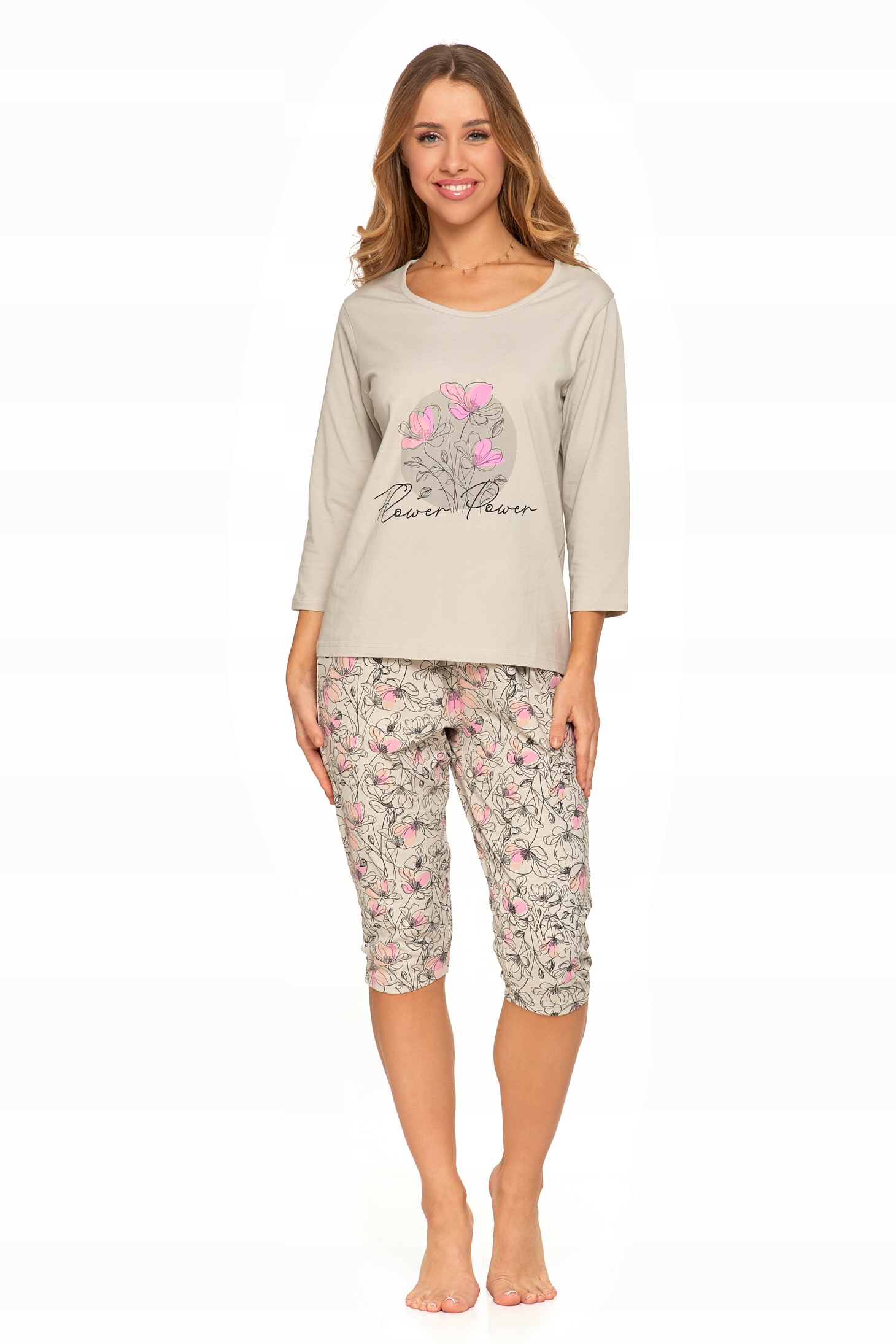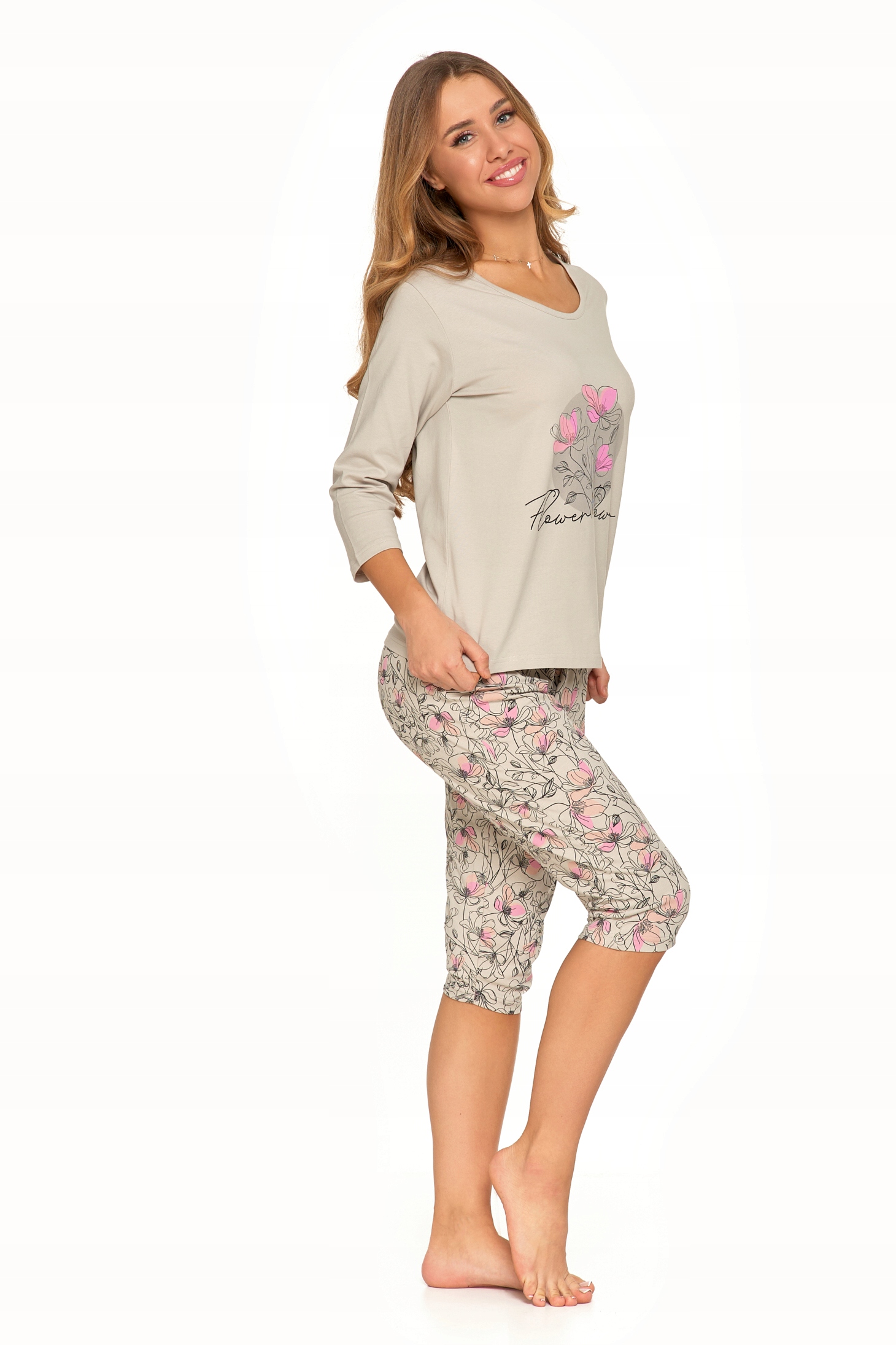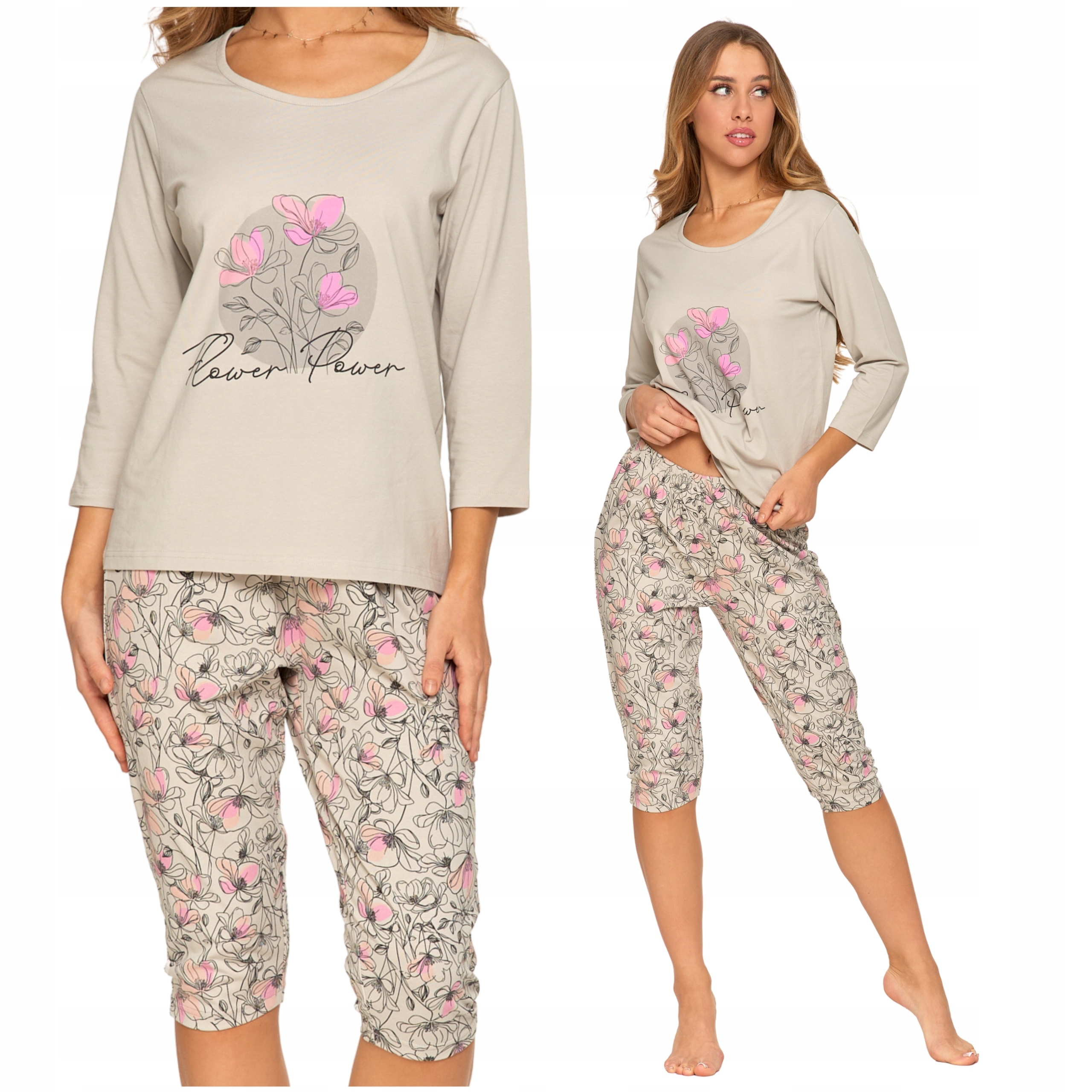 PIŻAMA DAMSKA DWUCZĘŚCIOWA MORAJ W KWIATY RĘKAW I SPODNIE 3/4 KWIATY