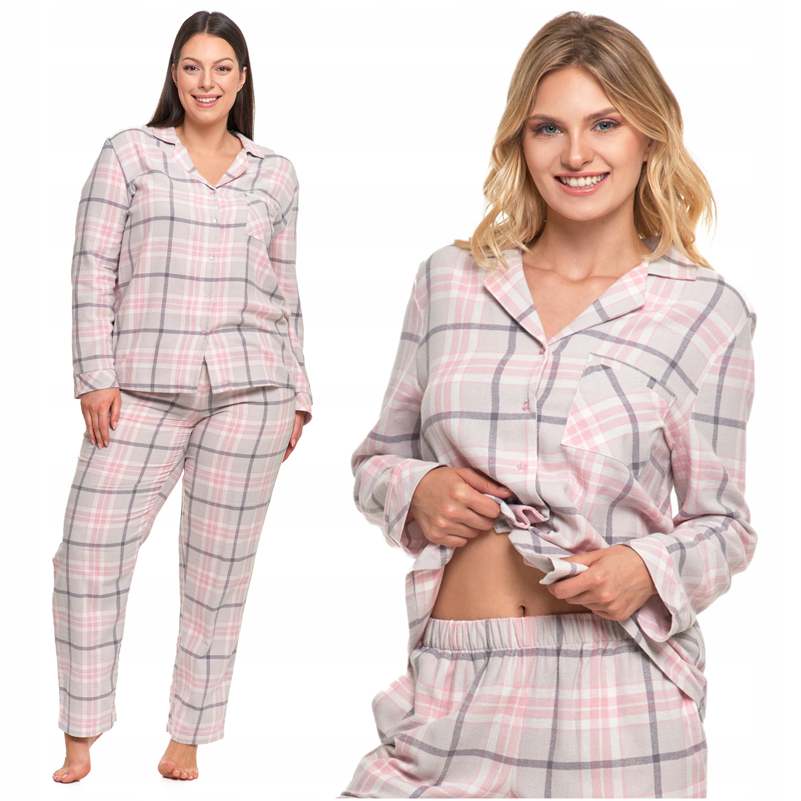 PIŻAMA DAMSKA Dwuczęściowa w Kratę Długi Rękaw Spodnie Wygodna MORAJ