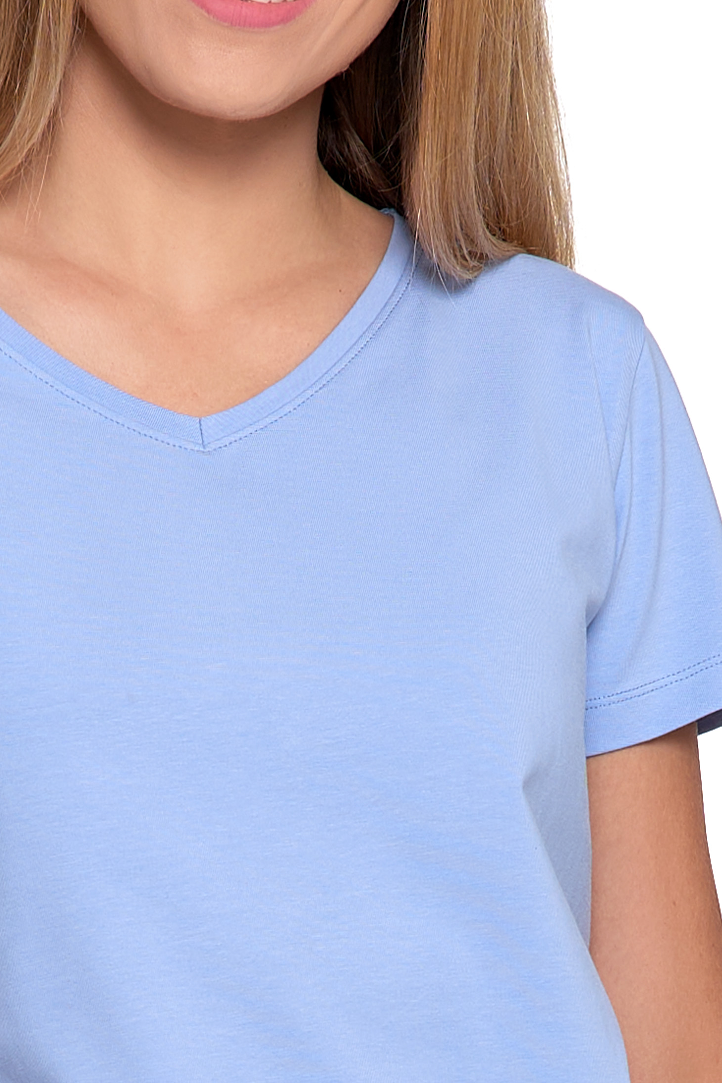 • Góra: Krótki rękaw i klasyczny dekolt w serek zapewniają wygodę i lekkość.