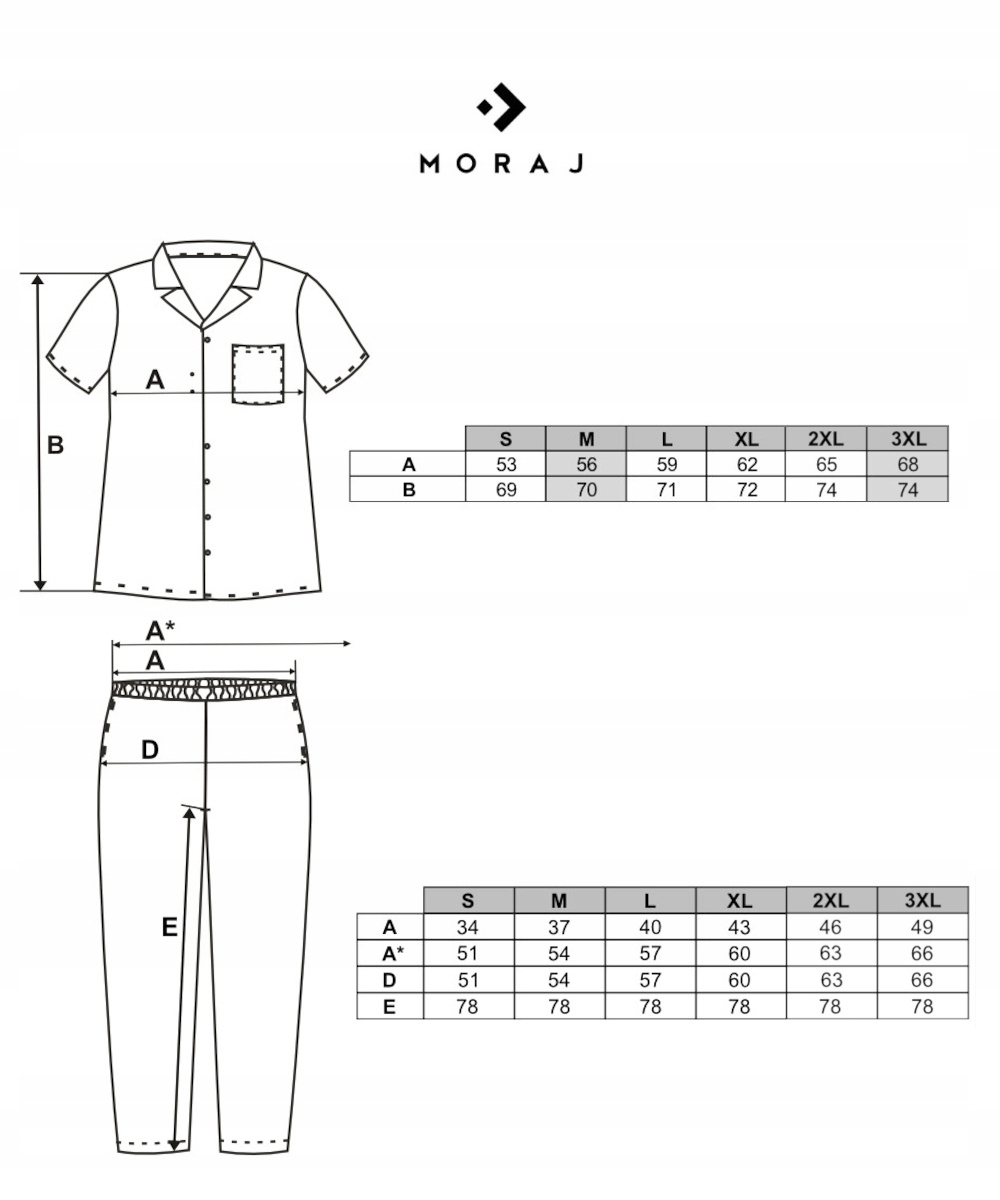 PIŻAMA DAMSKA Dwuczęściowa Wzorzysta Krótki Rękaw Spodnie Wygodna MORAJ