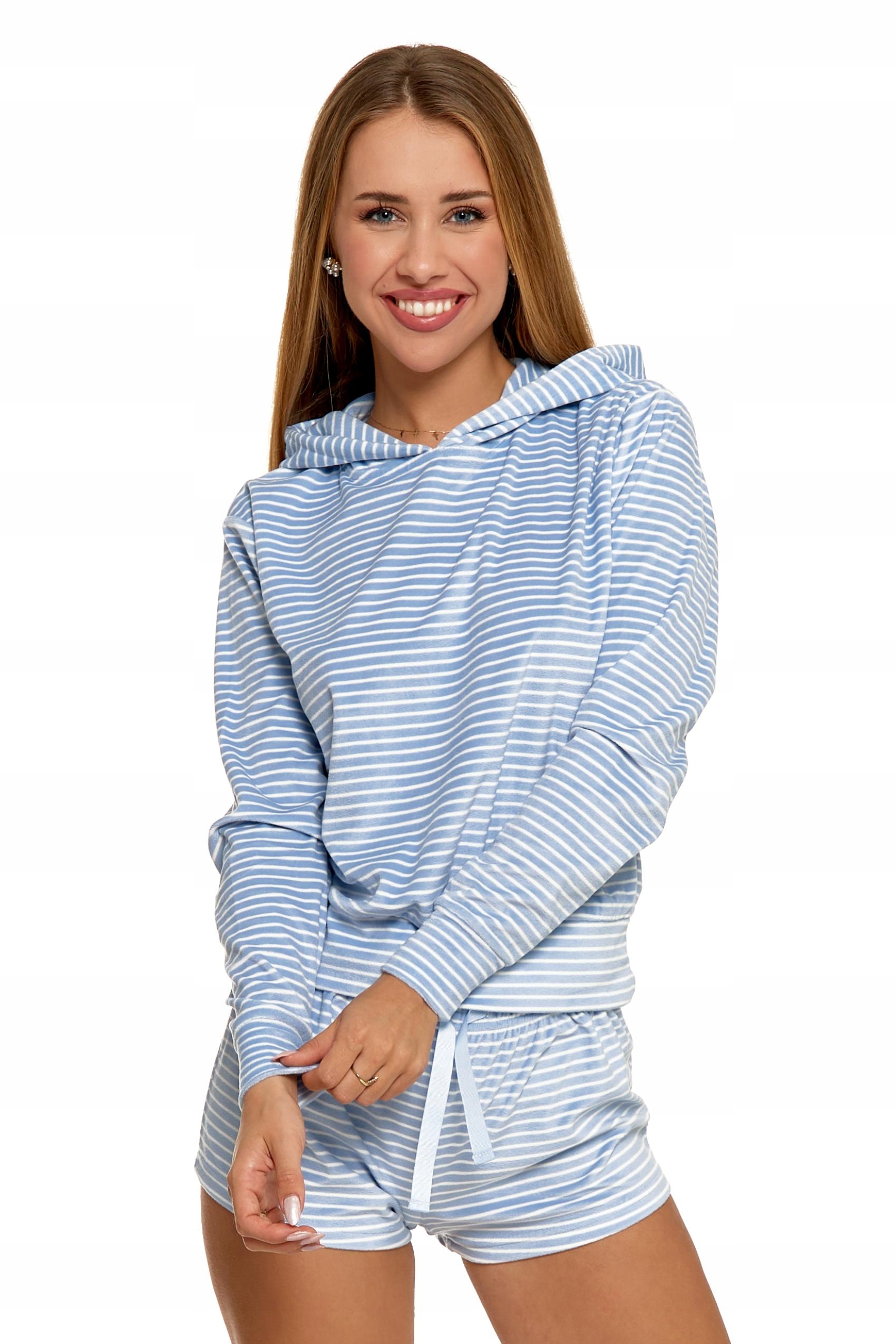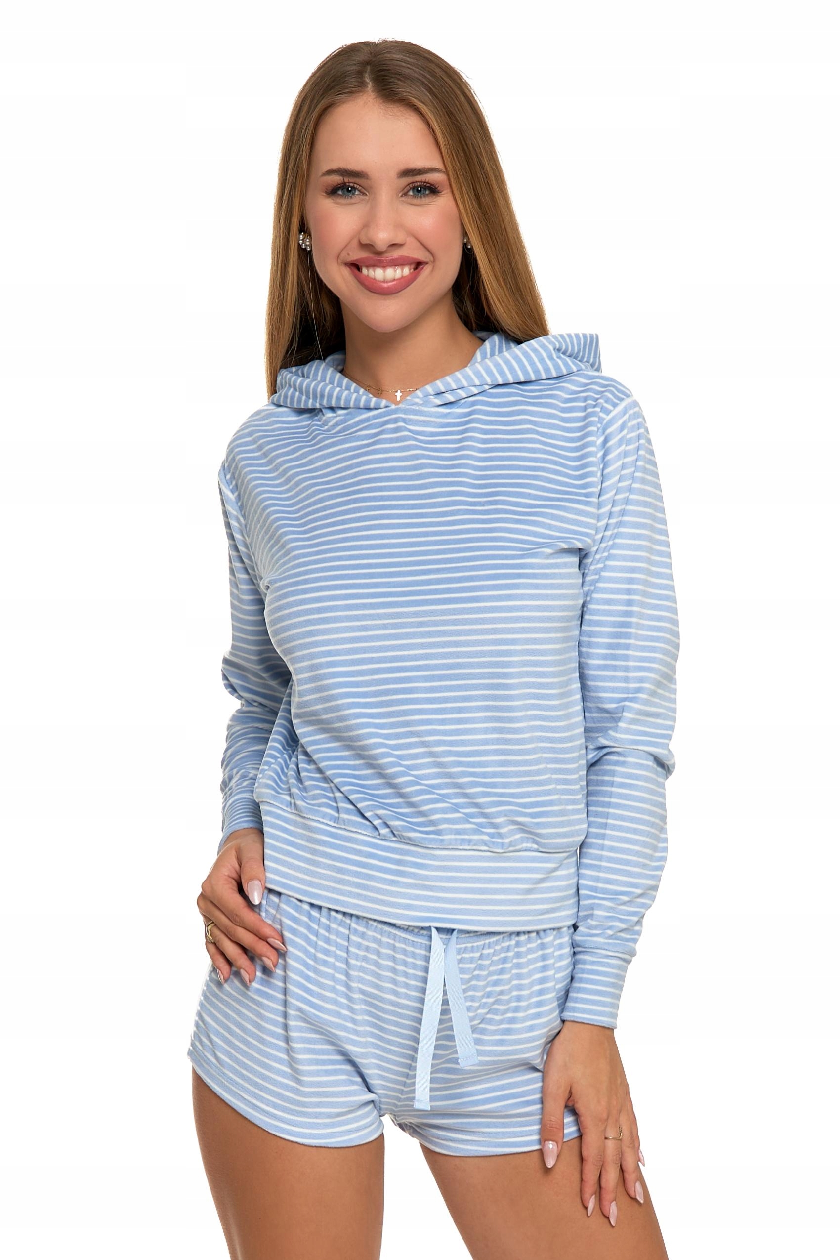 Piżama Damska Dwuczęściowa z Kapturem Welurowa Długi Rękaw Paski MORAJ