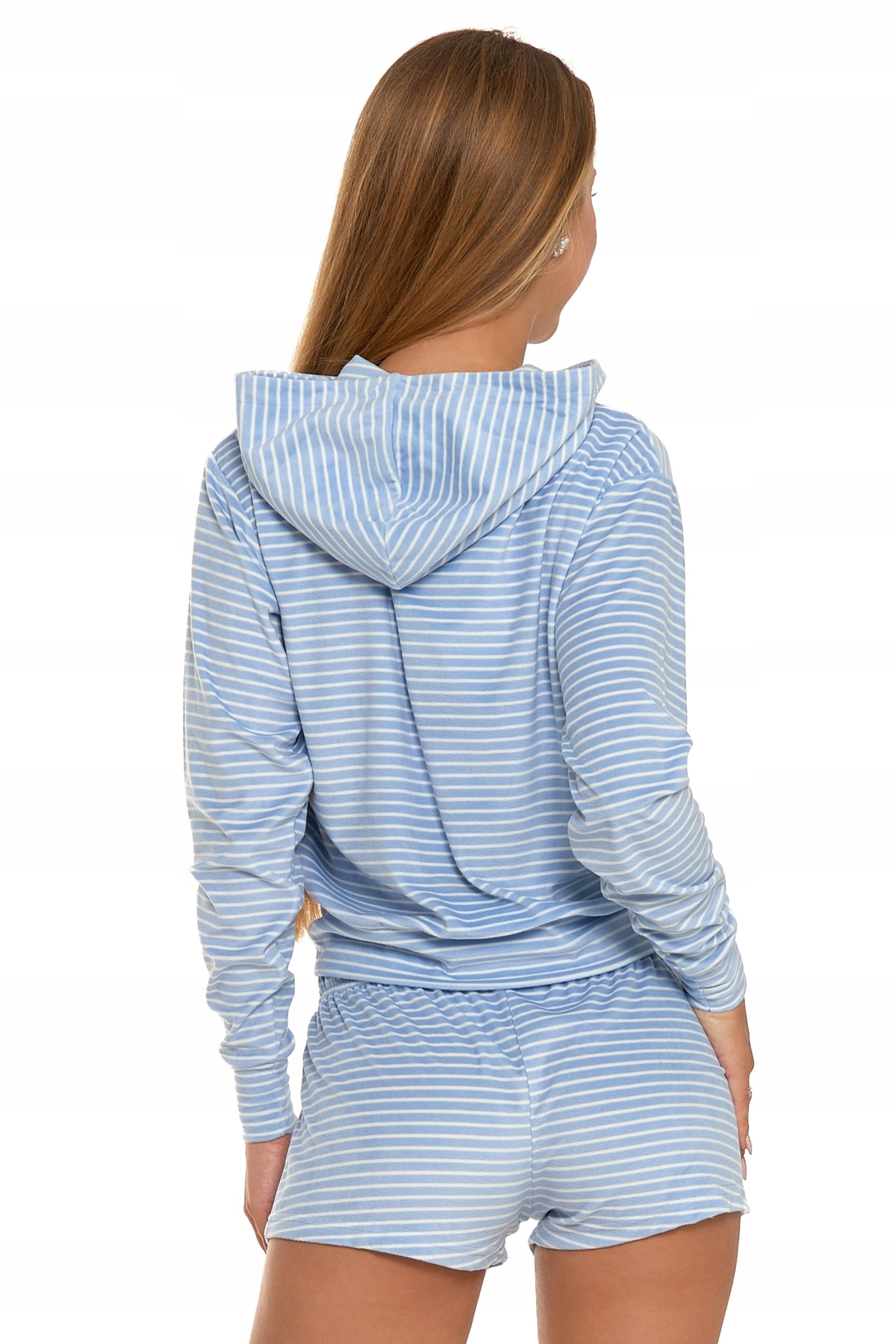 Opinie o Piżama Damska Dwuczęściowa z Kapturem Welurowa Długi Rękaw Paski MORAJ