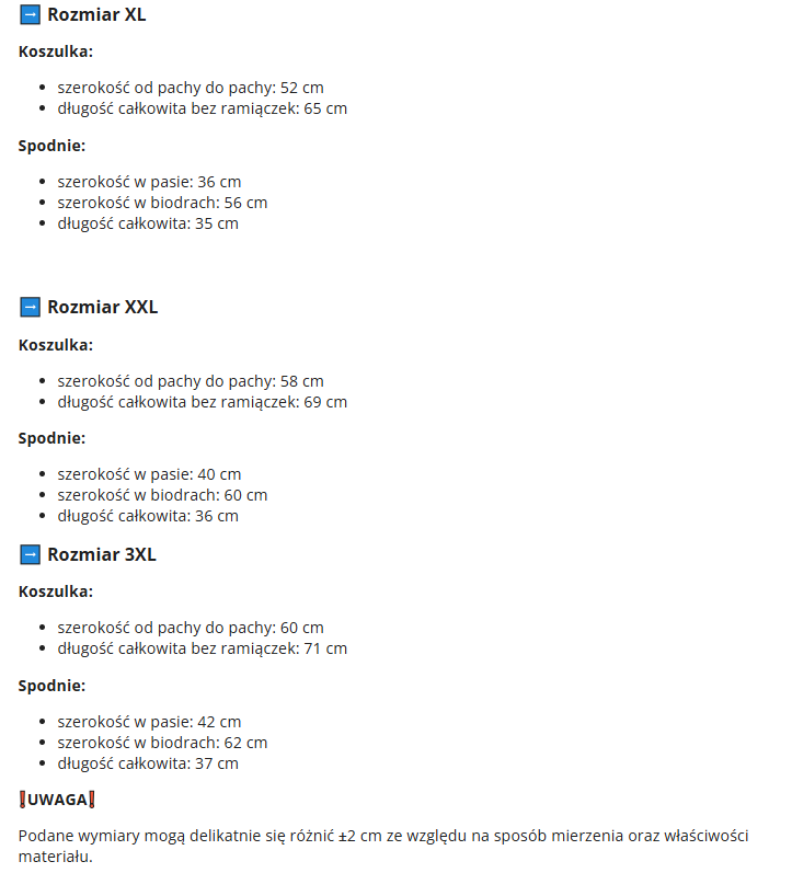 • Wygodny, luźny fason, zapewniający swobodę ruchów.