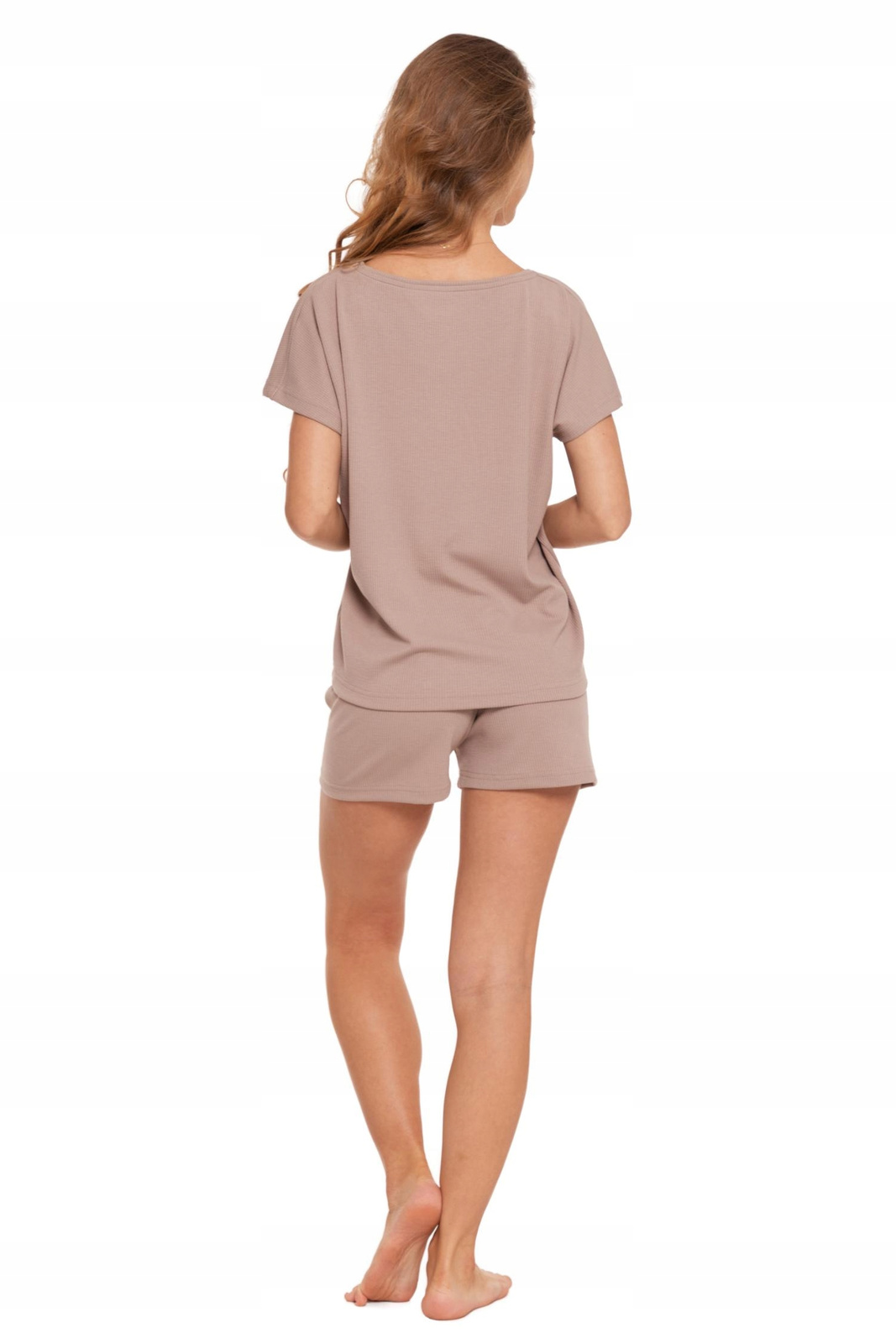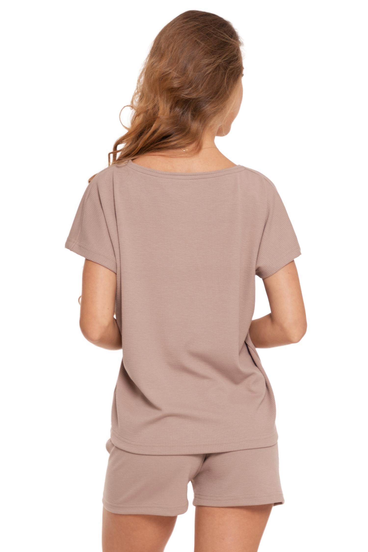 PIŻAMA DAMSKA PRĄŻKOWANA Modna Krótki Rękaw Szorty Beżowa Wiskoza MORAJ