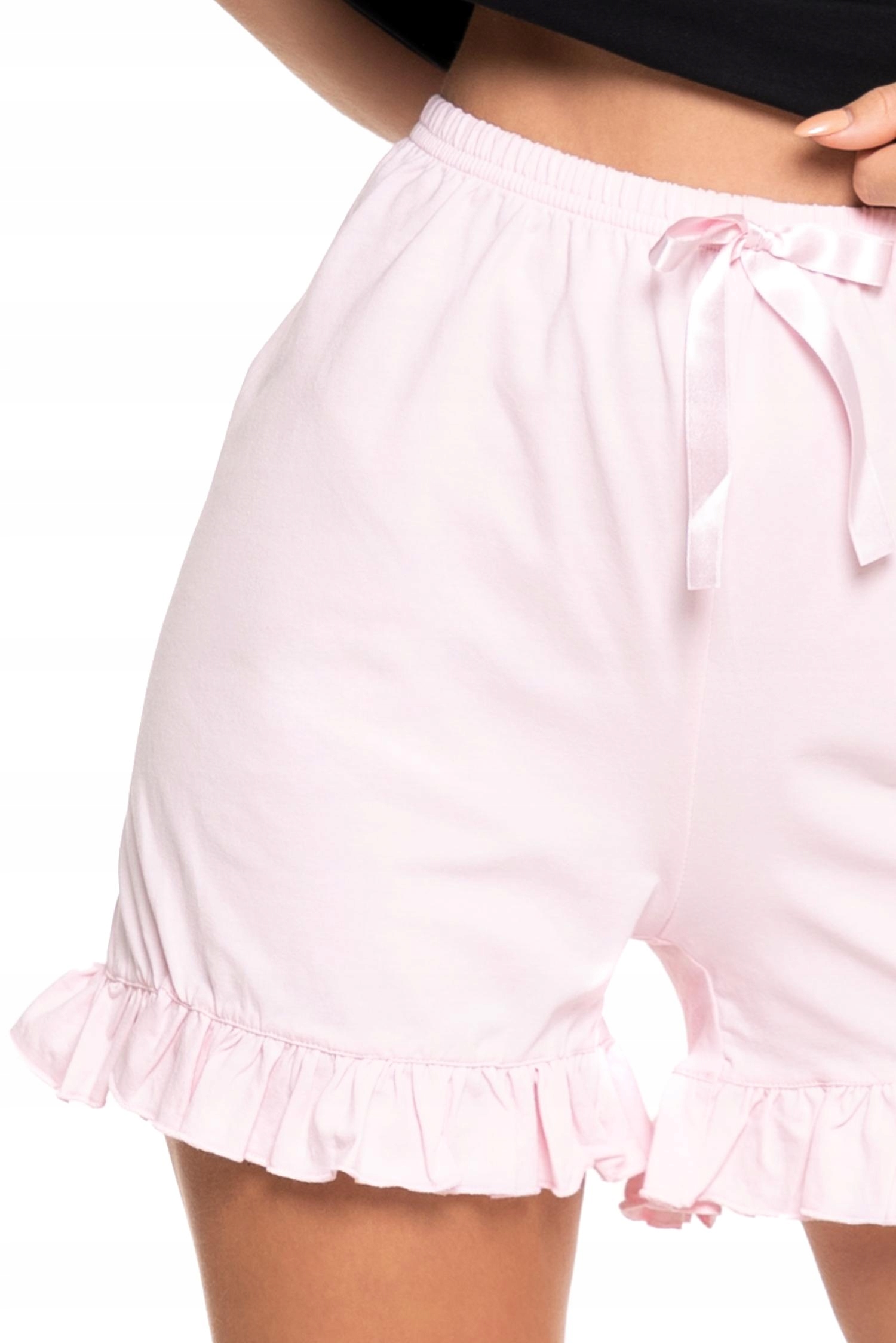 Krótkie spodenki w różowym kolorze z kokardką to nie tylko praktyczny element piżamy, ale również uroczy akcent, który nadaje całości świeżości i zabawy. Kokardka dodaje nutki kobiecego uroku, tworząc kompletny i stylowy look.