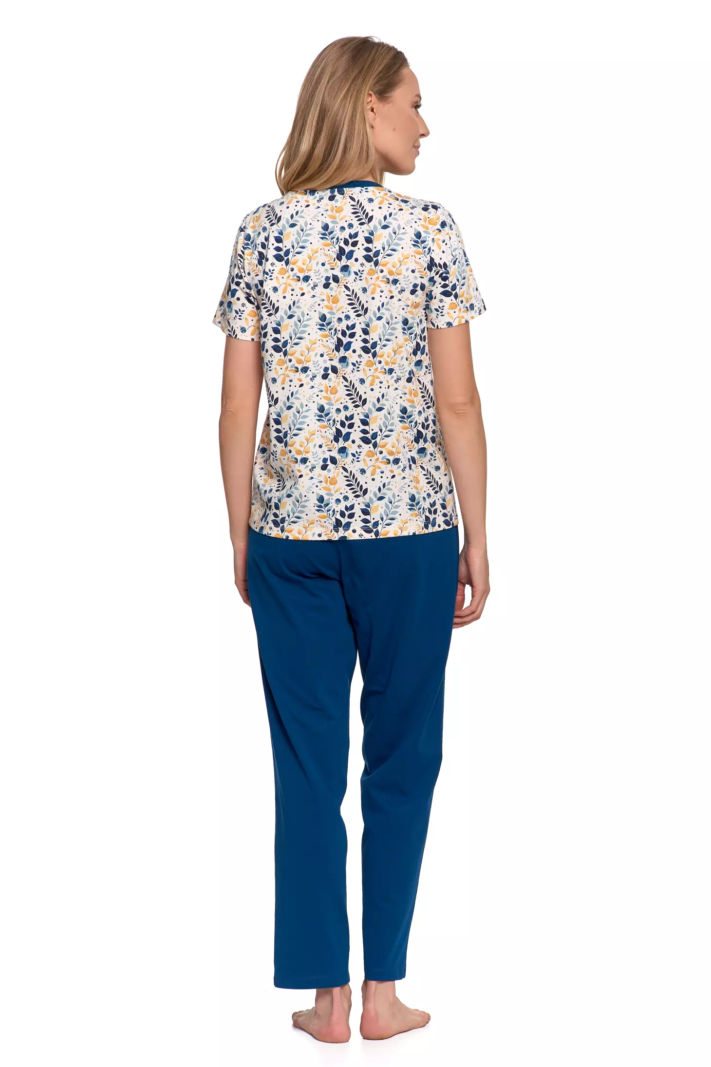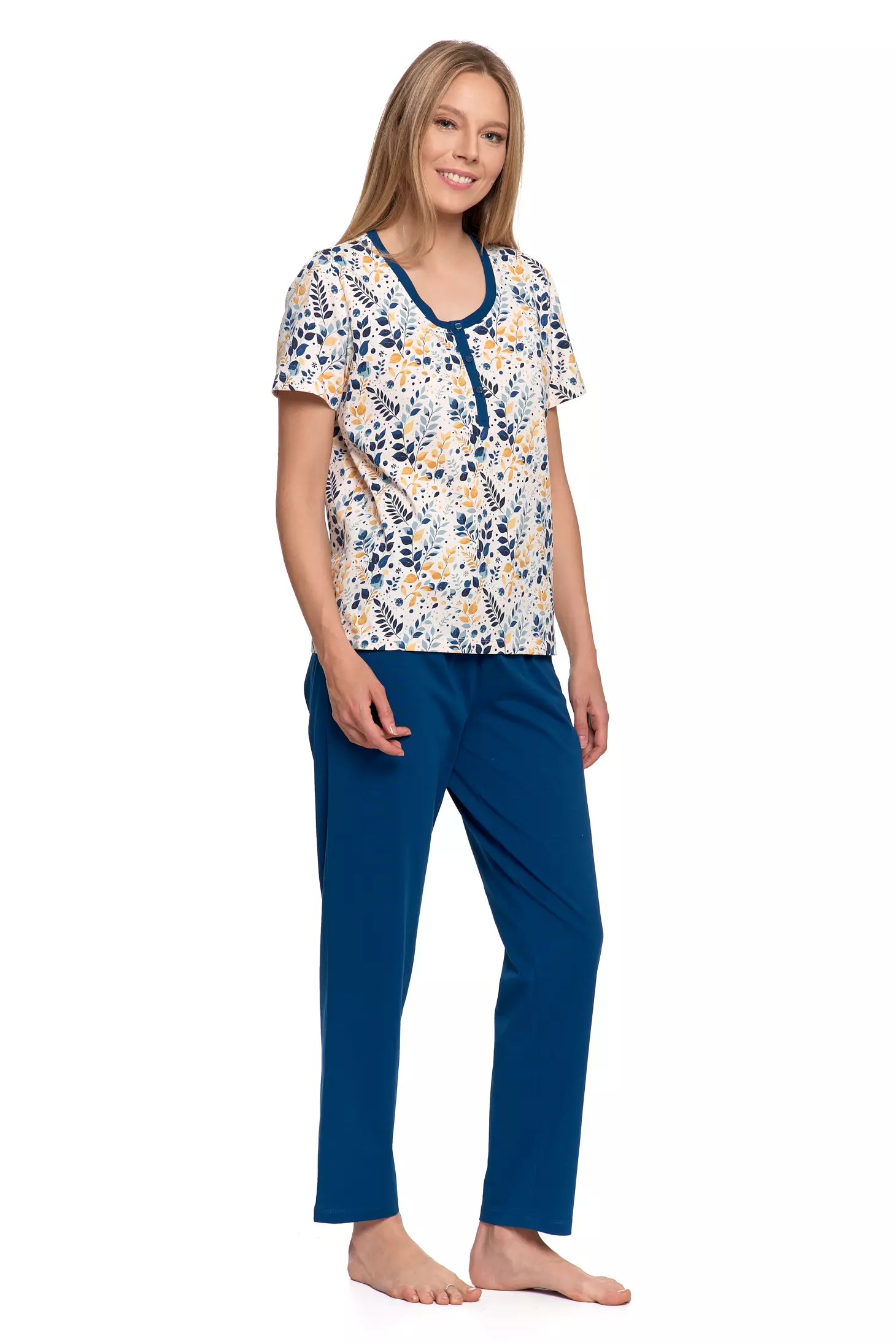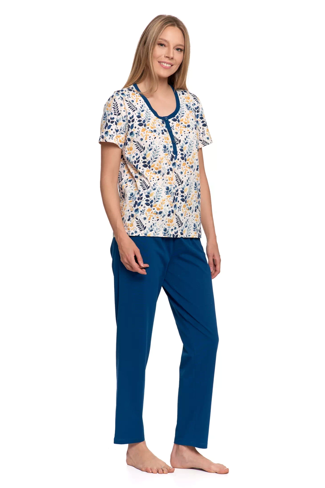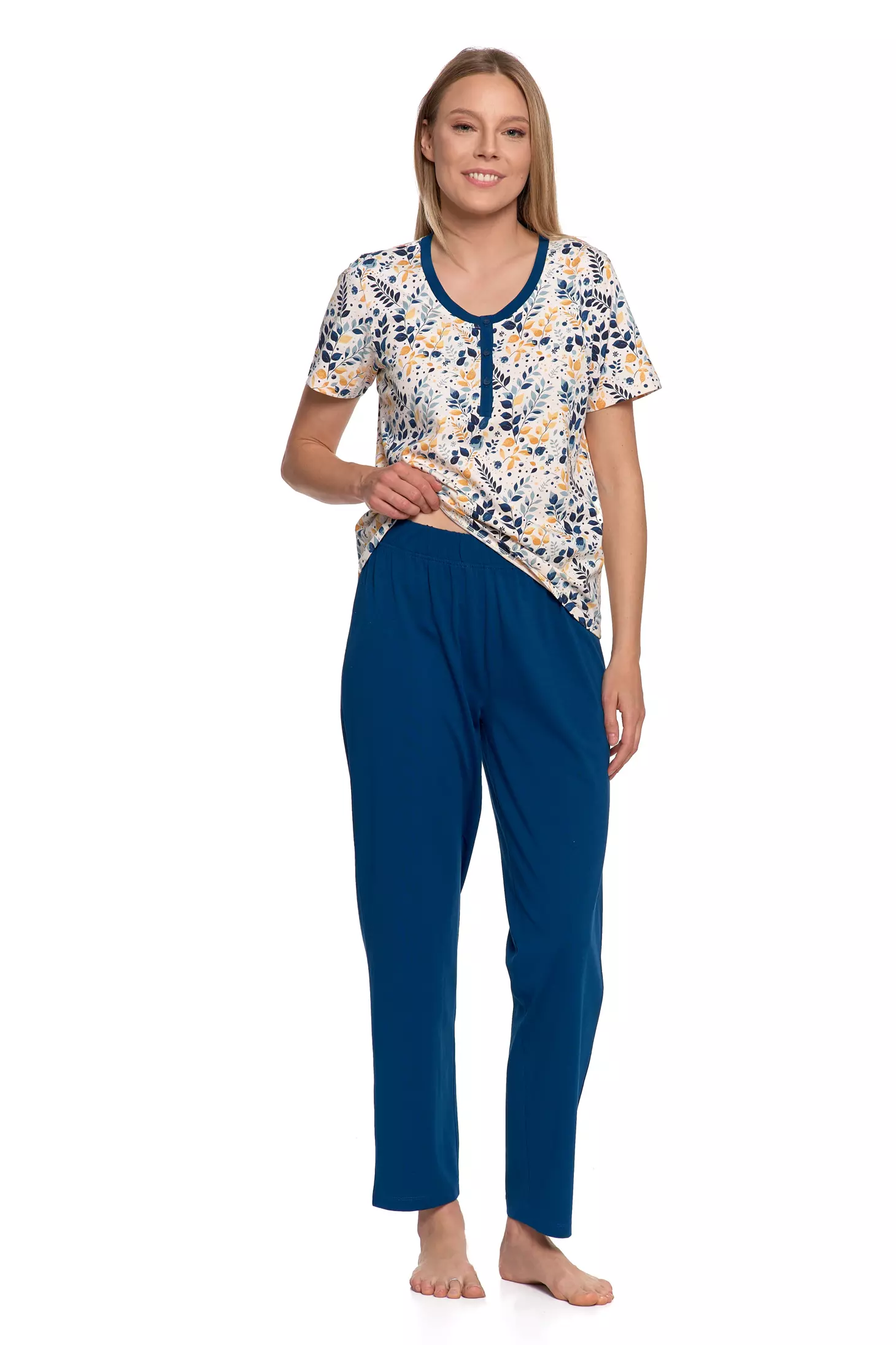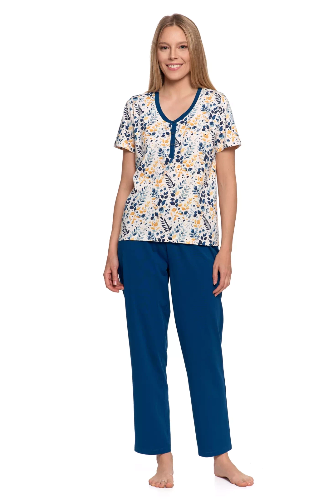 PIŻAMA DAMSKA W KWIATKI DWUCZĘŚCIOWA KRÓTKI RĘKAW DŁUGIE SPODNIE MORAJ