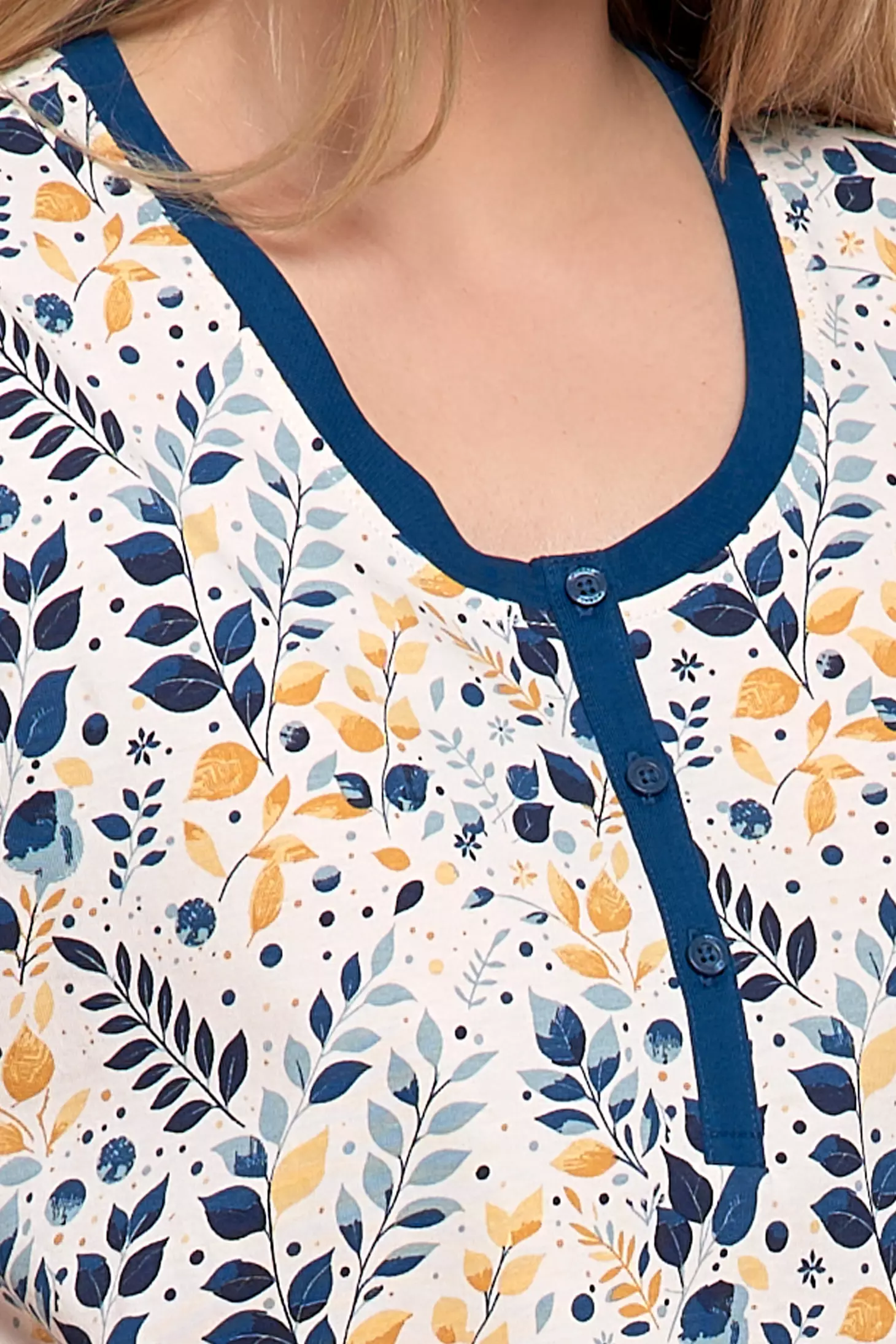 Ta piżama damska to idealne połączenie spokojnego snu i codziennej wygody. Stworzona z myślą o relaksie, zachwyca miękkością naturalnej bawełny i subtelnym, kwiatowym designem.